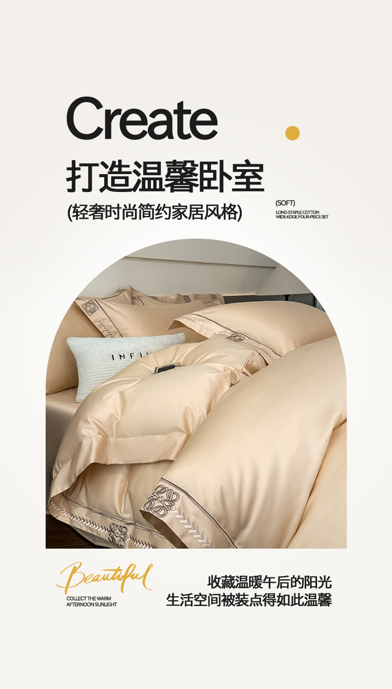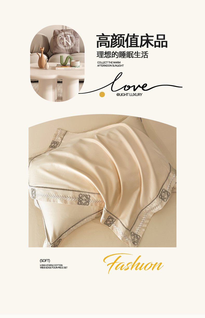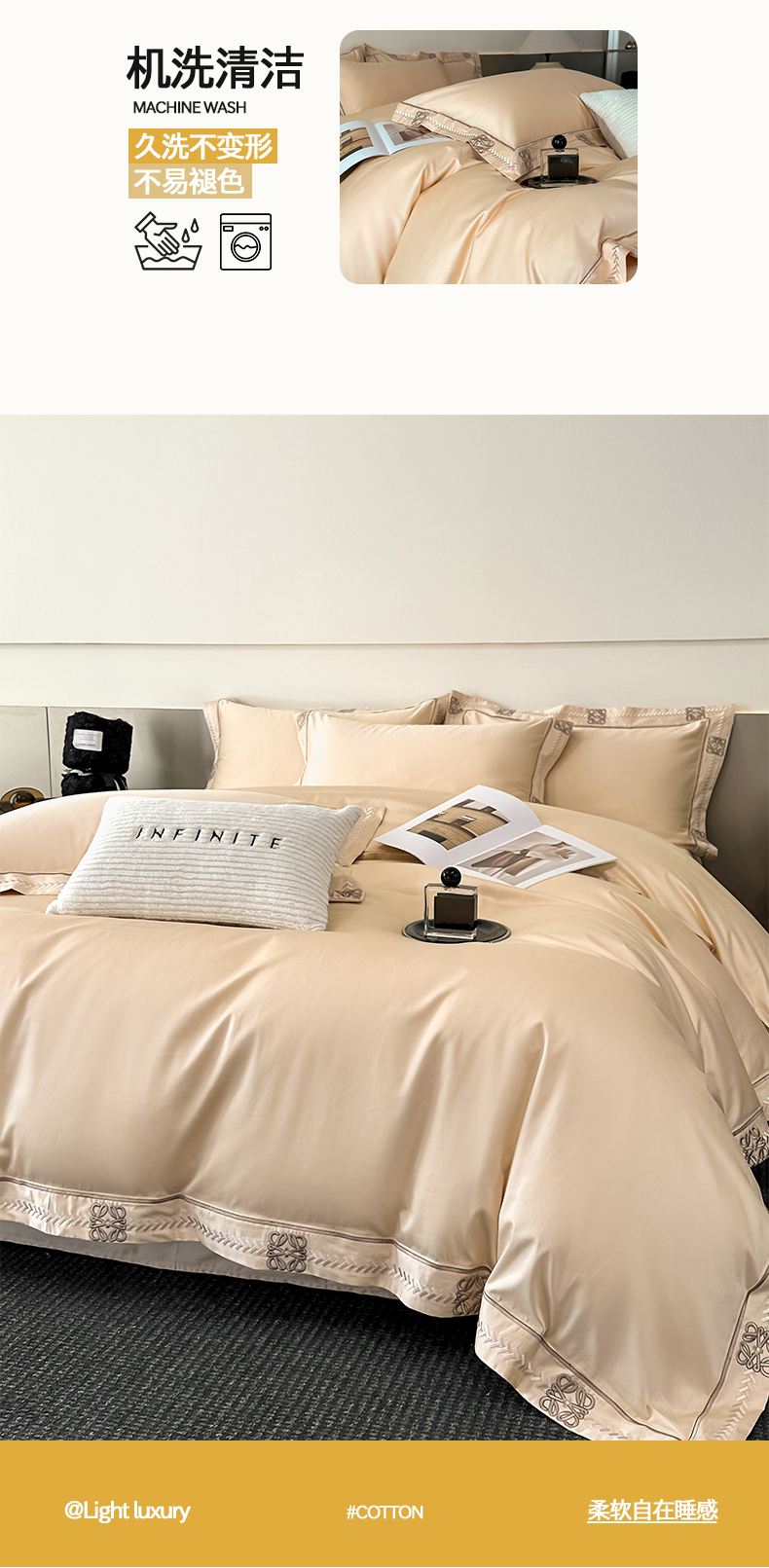当前位置: 91家纺网 > 商品网购 > 床品套件 > 四件套 > 其它四件套 > 置顶家纺 2026春夏新款多伦多系列亲肤刺绣拼角四件套 多伦多-浅香槟