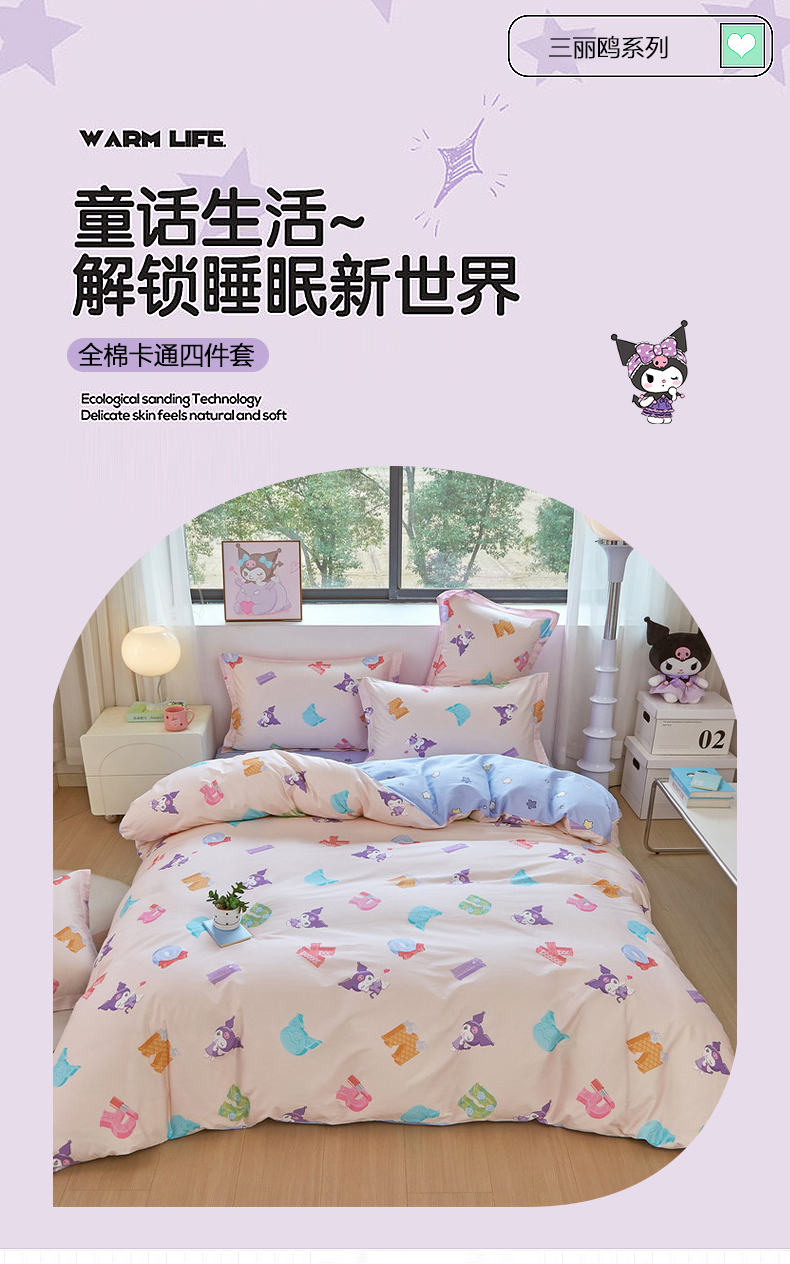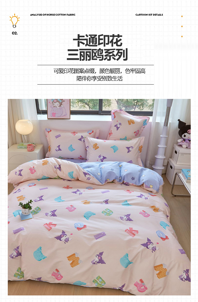 当前位置: 91家纺网 > 商品网购 > 床品套件 > 四件套 > 全棉普通四件套 > 蘭菲家纺 2026新款全棉三丽欧印花卡通四件套 小库儿