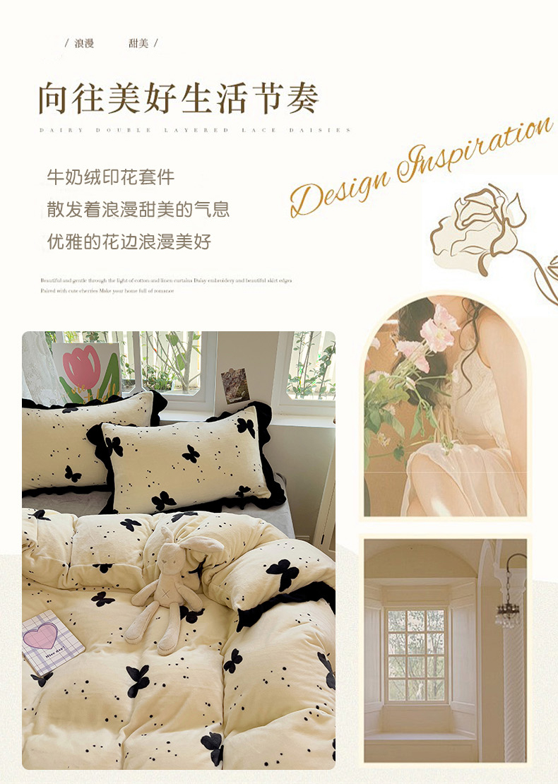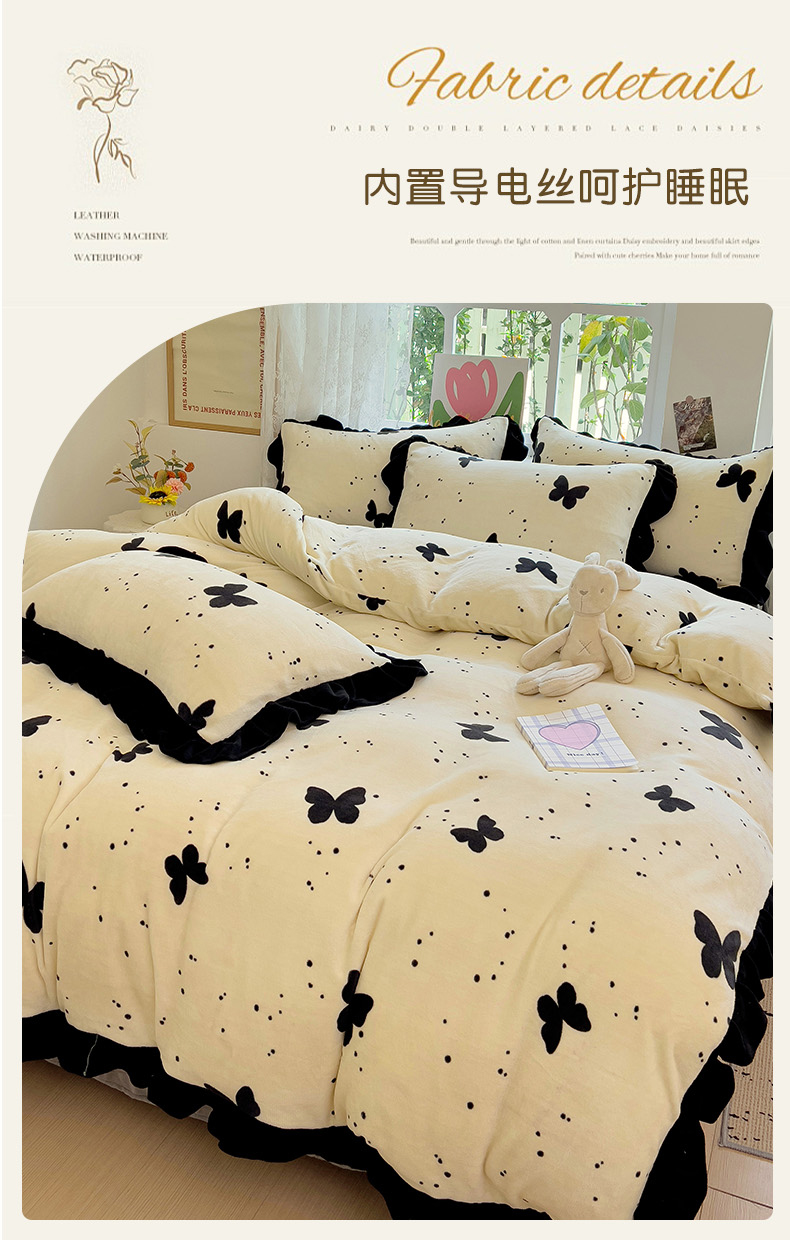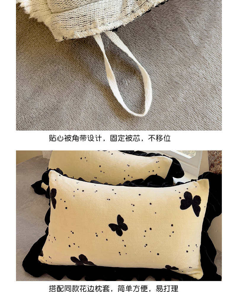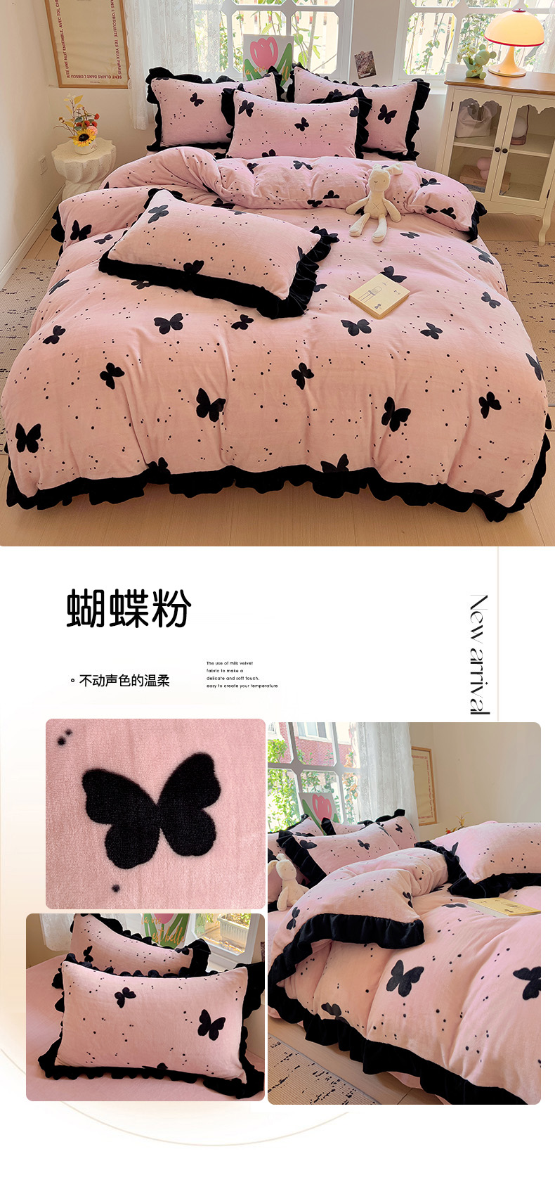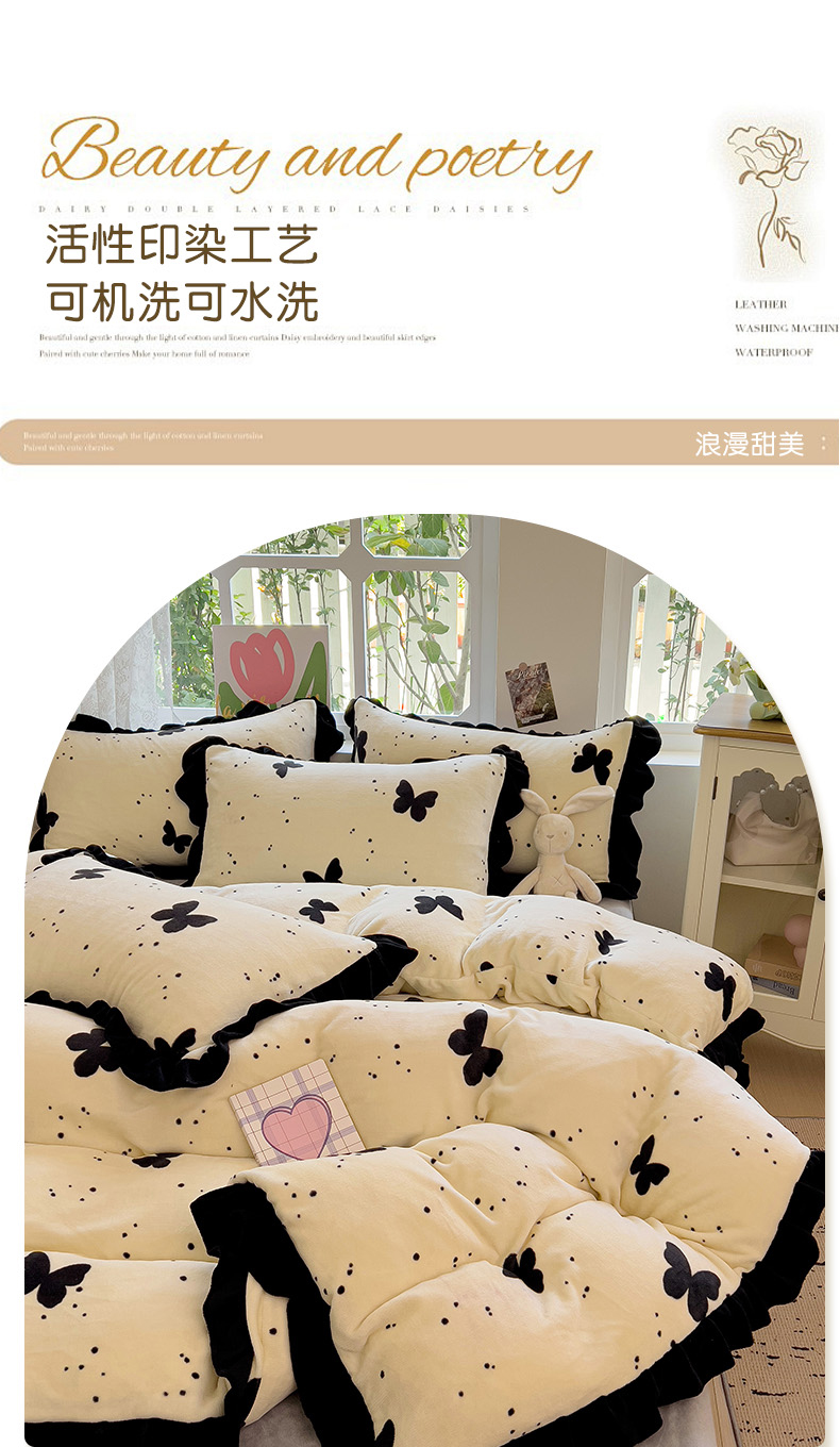 迪梦姿家纺 2025新款牛奶绒印花花边款四件套 蝴蝶白