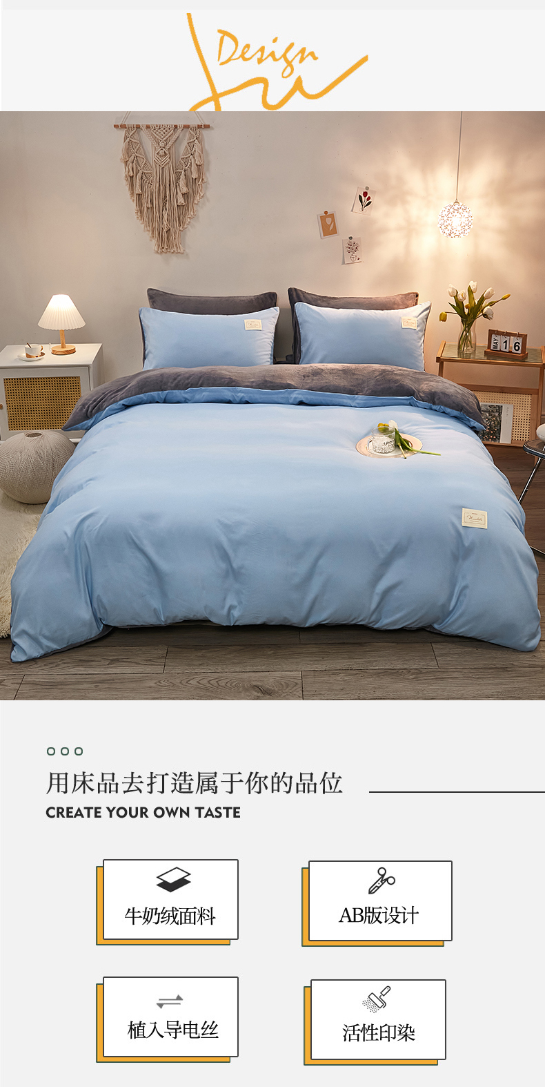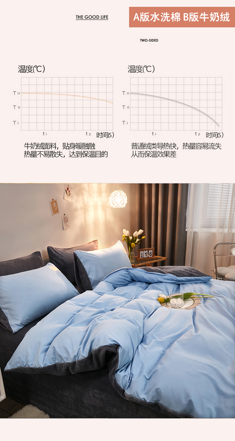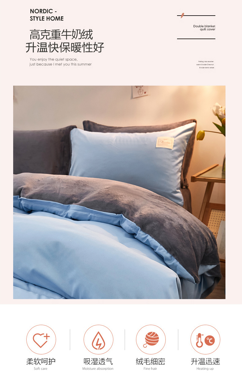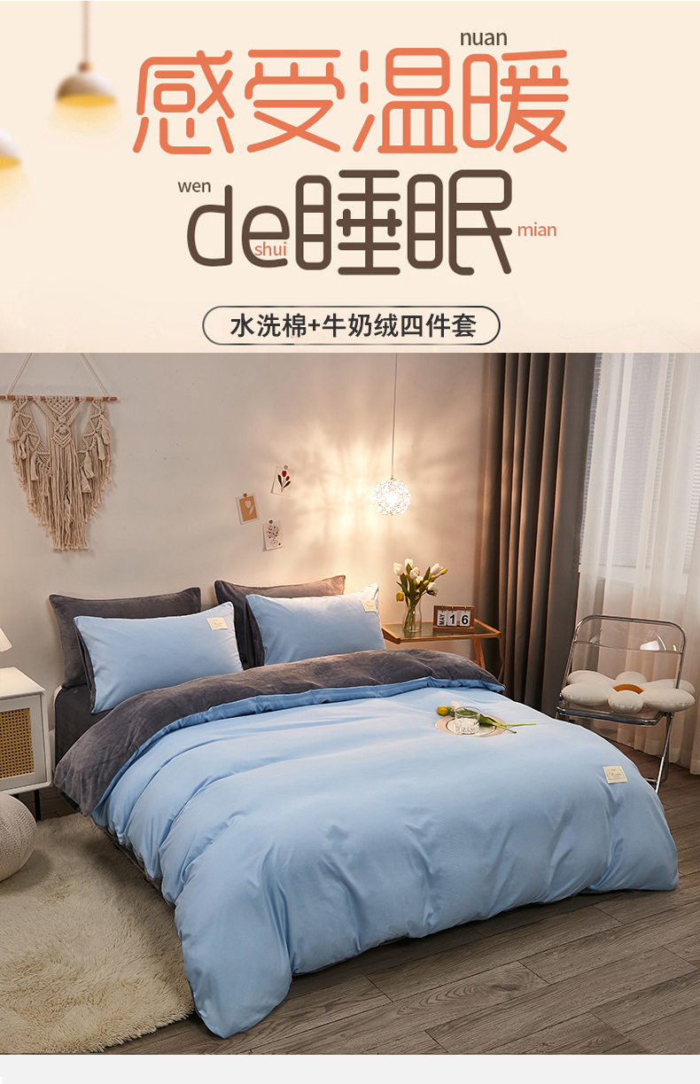 当前位置: 91家纺网 > 商品网购 > 床品套件 > 四件套 > 牛奶绒四件套 > 啊雅家居 2026新款水洗棉牛奶绒三件套四件套 天空兰加牛奶绒