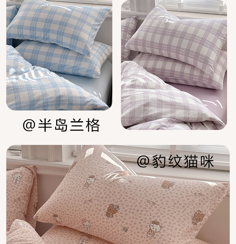 (总)多品家纺 2026新款奶呼呼超柔云感双层纱系列单枕套,白露,半岛兰格,半岛紫格,豹纹猫咪,粉粉小花,福气满满,花田小狗,欢乐时光,开心狗,棉花兔兔,浅浅春意,桃气兔兔,淘气园,汪星人,小橘狗,熊多多,熊熊空间,学院派,樱桃蓝,樱桃紫,组合图