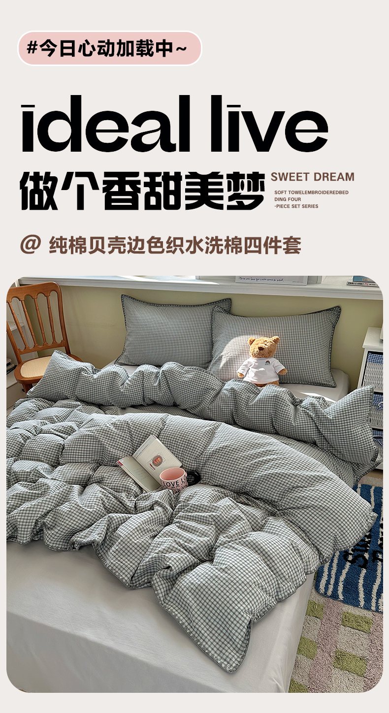 当前位置: 91家纺网 > 商品网购 > 床品套件 > 四件套 > 全棉普通四件套 > XIWEN-希文家纺 2026新款40支全棉色织水洗棉贝壳边四件套 梵舍-绿