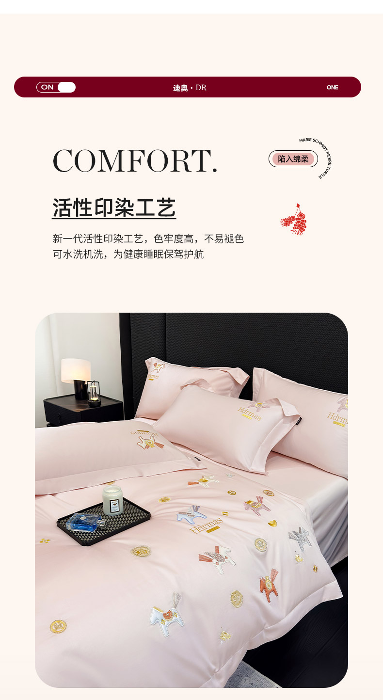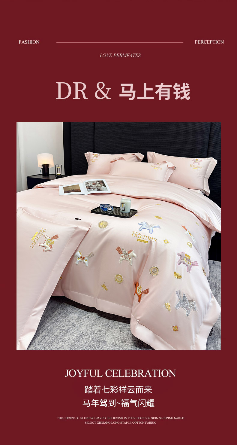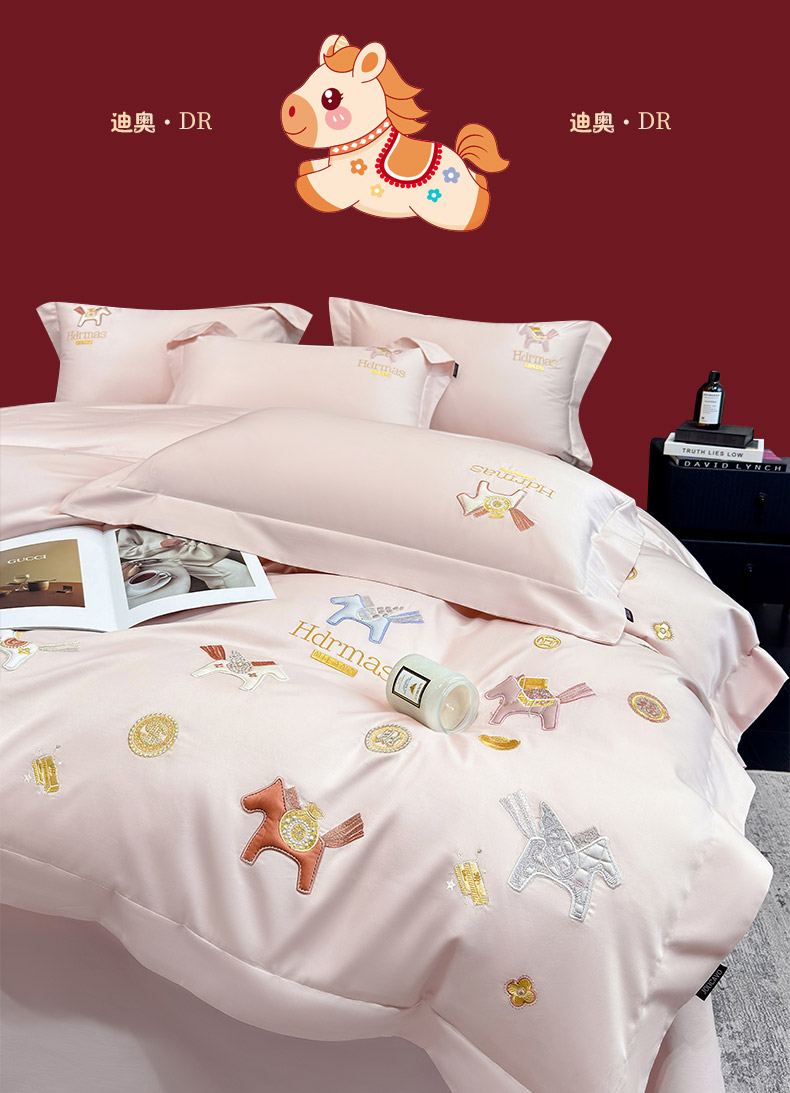 商品名称: 2026新款【迪奥】马年50S双股A类长绒棉纯棉四件套100全棉新年刺绣被套床单 马上有钱-粉