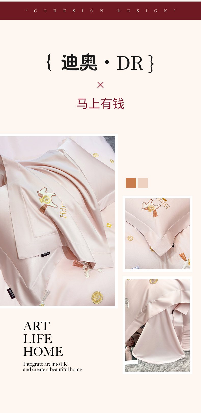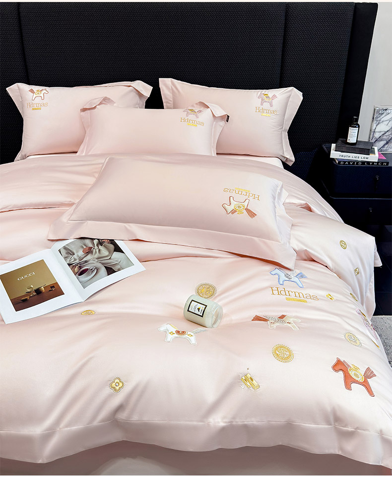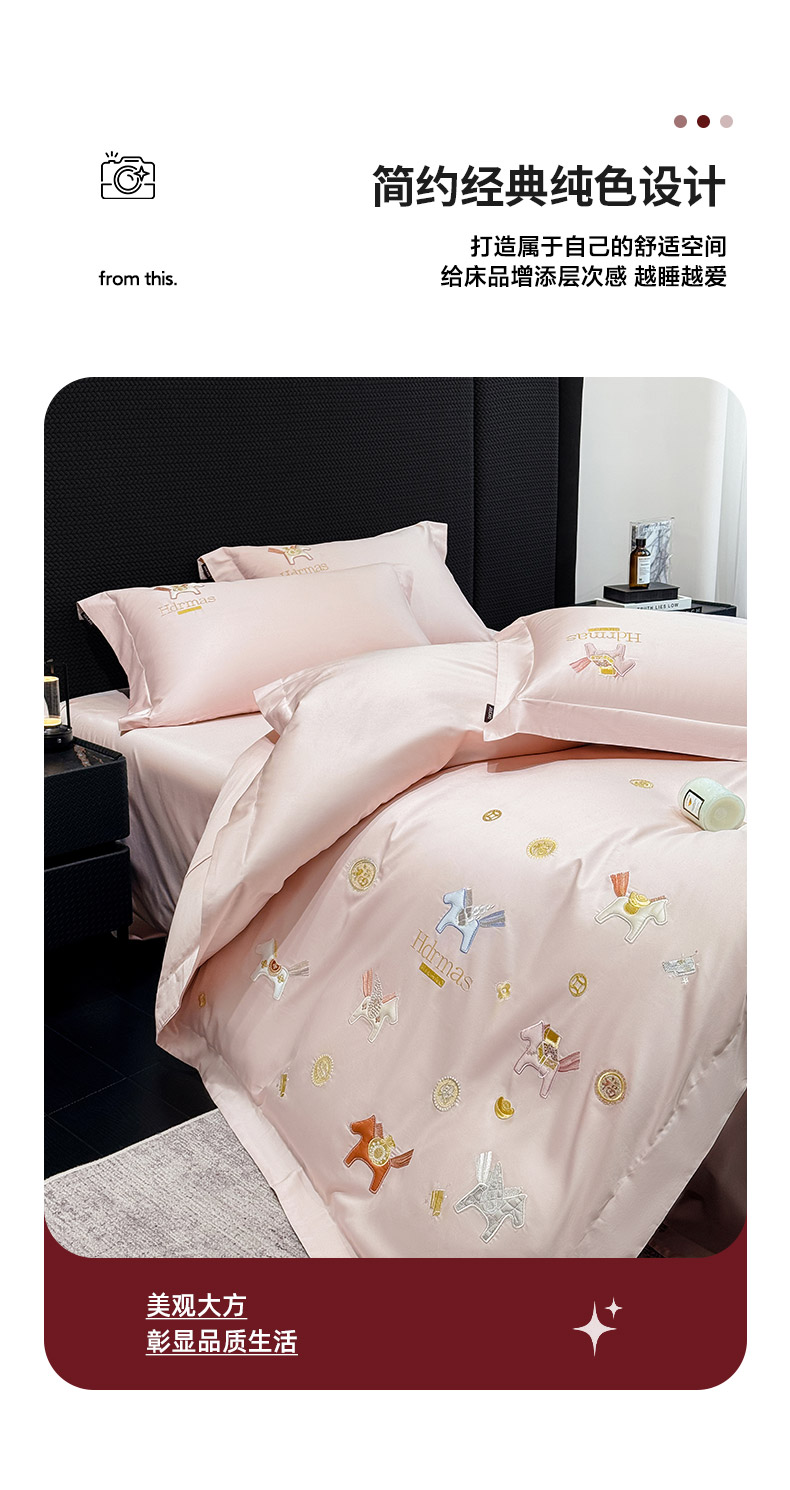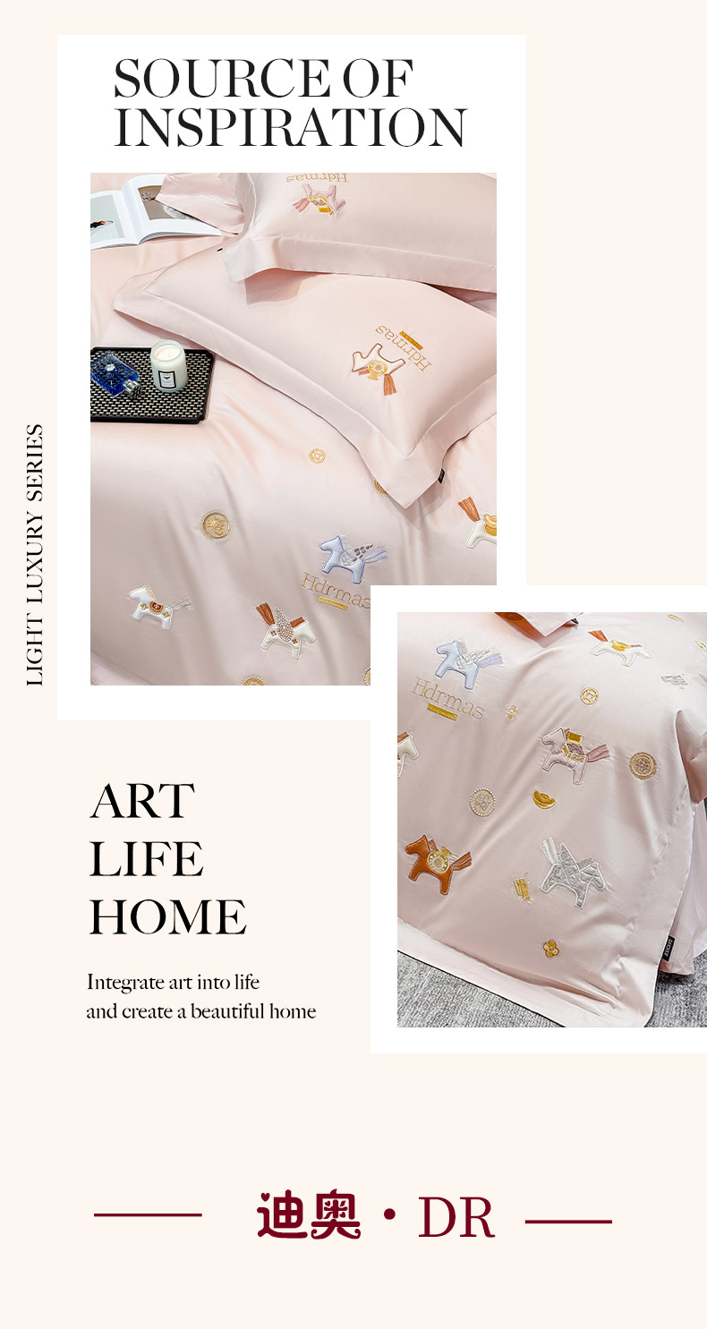 商品名称: 2026新款【迪奥】马年50S双股A类长绒棉纯棉四件套100全棉新年刺绣被套床单 马上有钱-粉