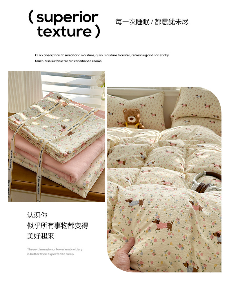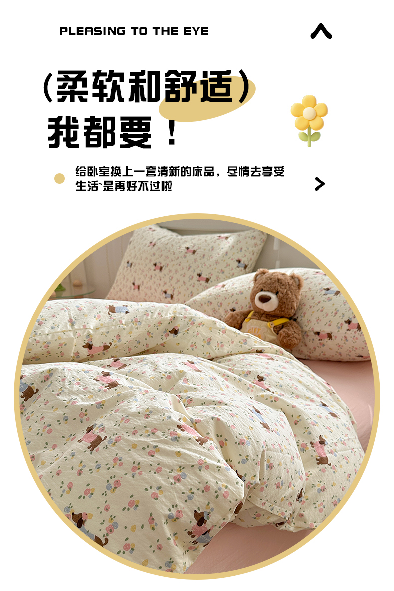 当前位置: 91家纺网 > 商品网购 > 床品套件 > 四件套 > 其它四件套 > 多品家纺 2026新款奶呼呼超柔云感双层纱系列四件套 花田小狗