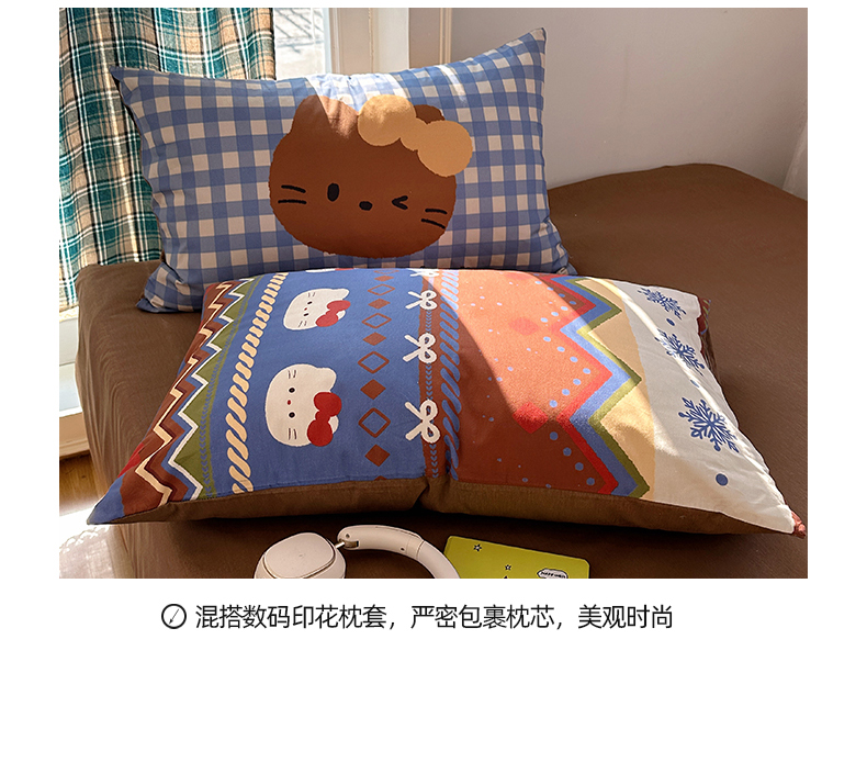 商品名称:桃子家居 2026新款纯棉混搭大版数码印花枕套小清新猫咪可爱系列四件套 棉混搭-甜心软糖猫