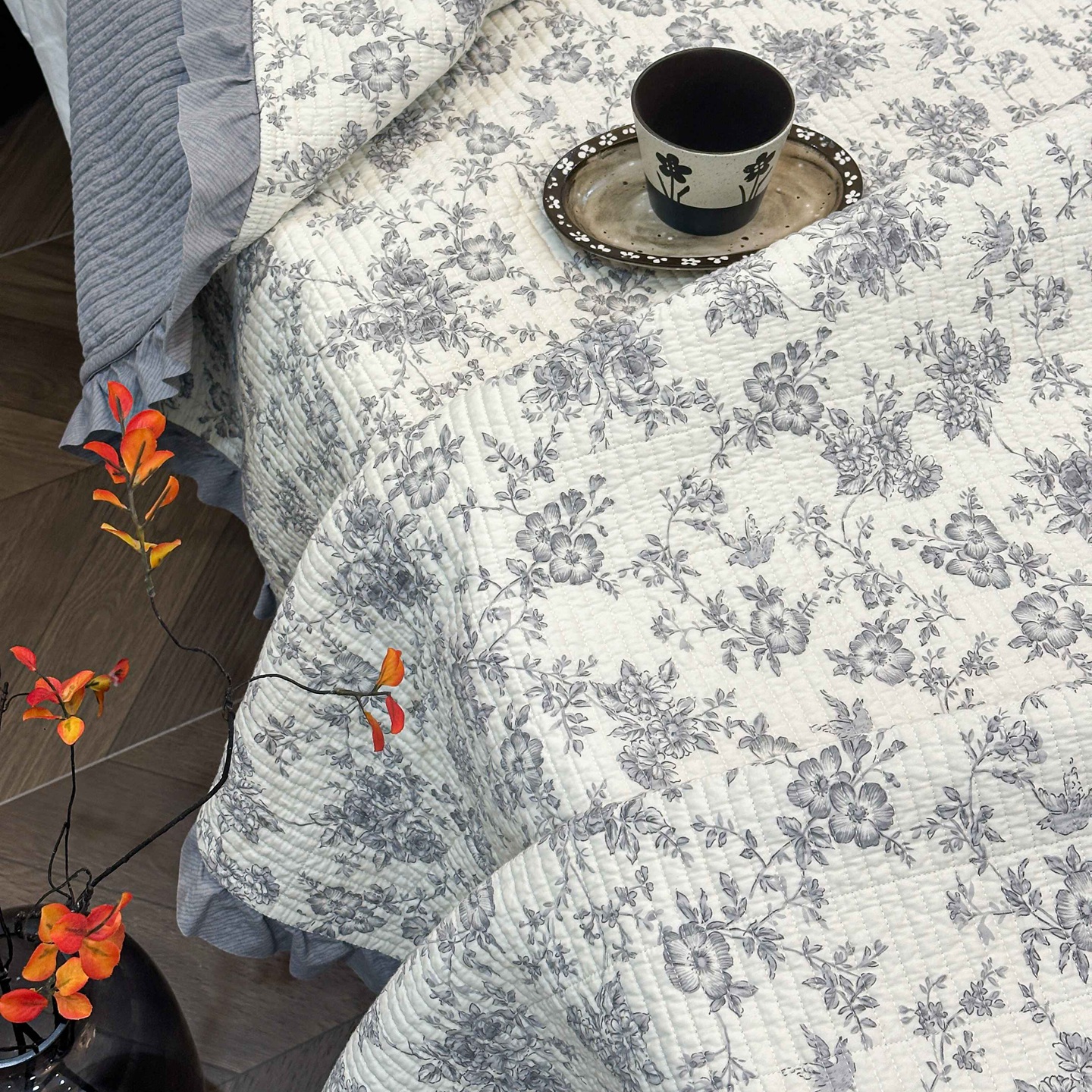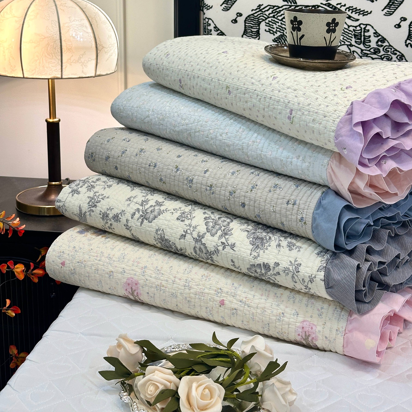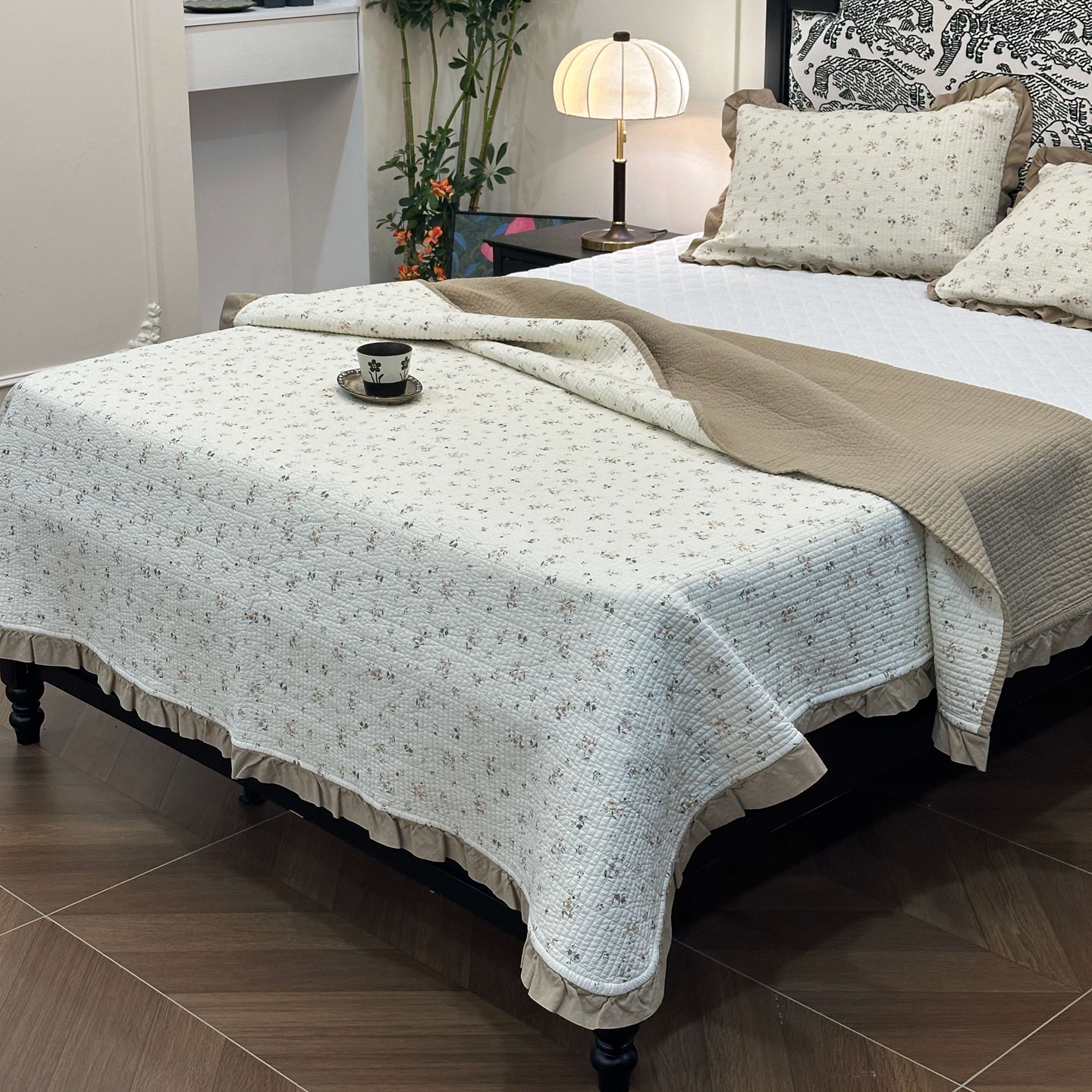 床盖工厂店 2026新款小花边双面全棉填充棉花床盖三件套 花下诗页