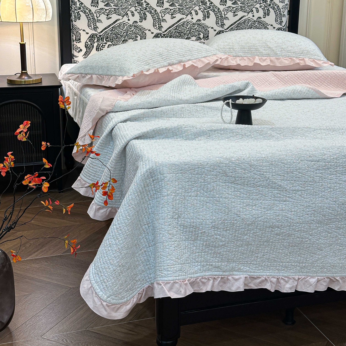 床盖工厂店 2026新款小花边双面全棉填充棉花床盖三件套 温锦织(米)