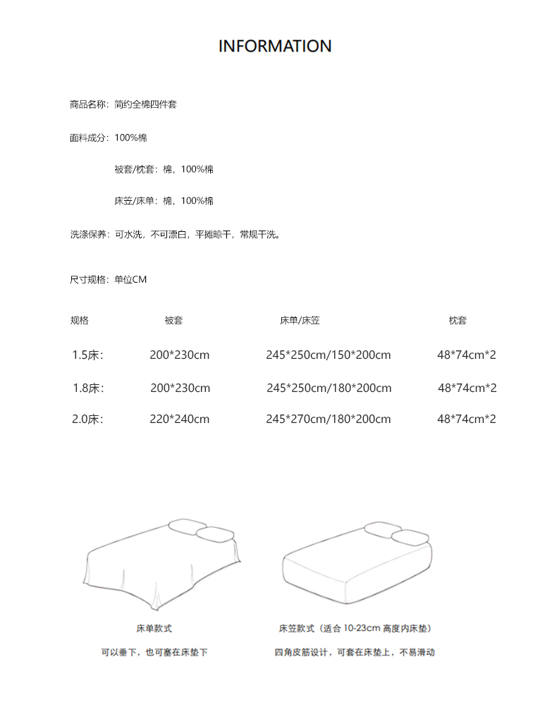 1.5m床笠款四件套被套200*230 | ¥298.00 |