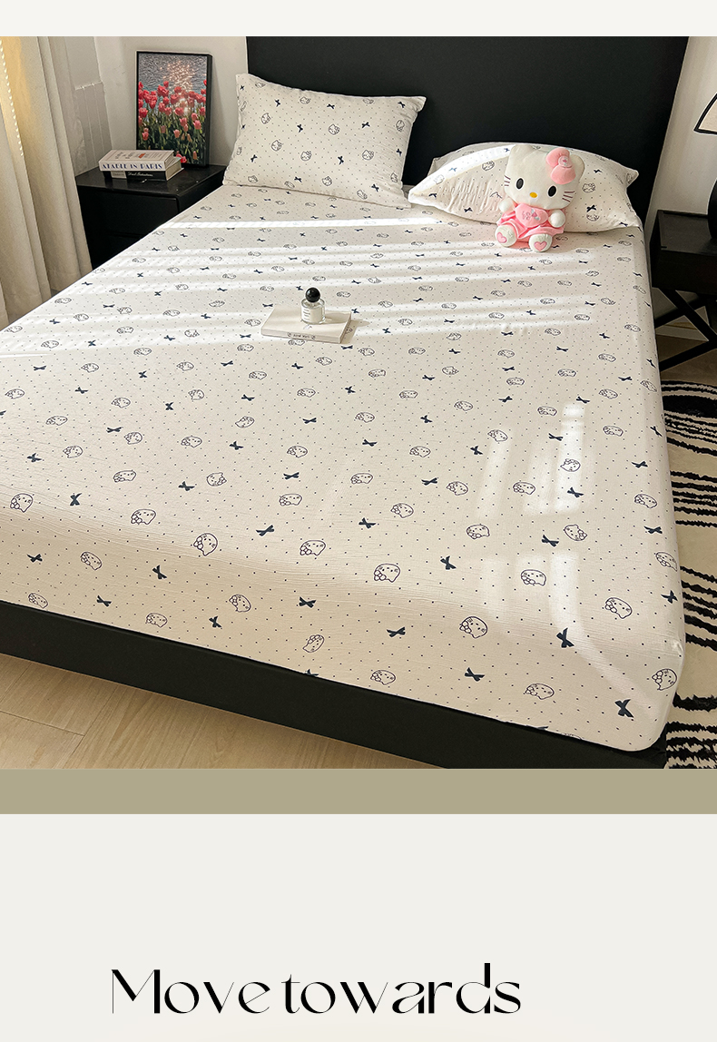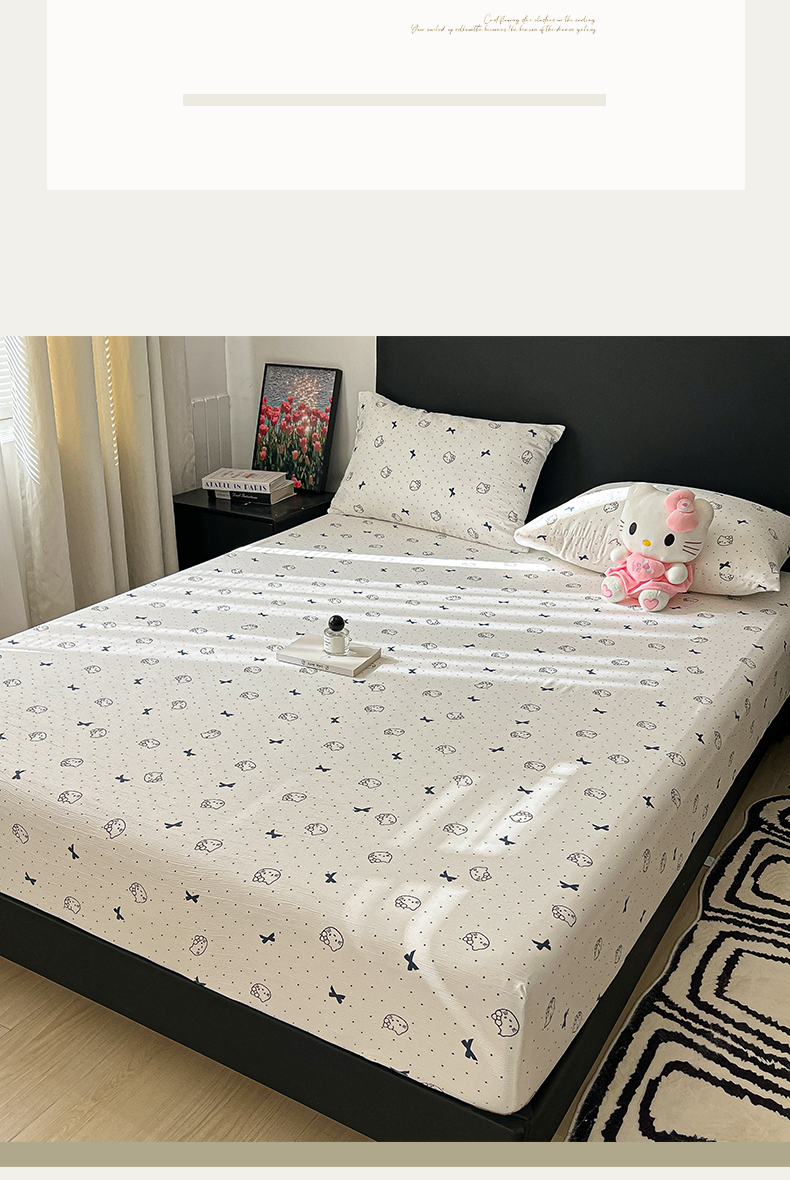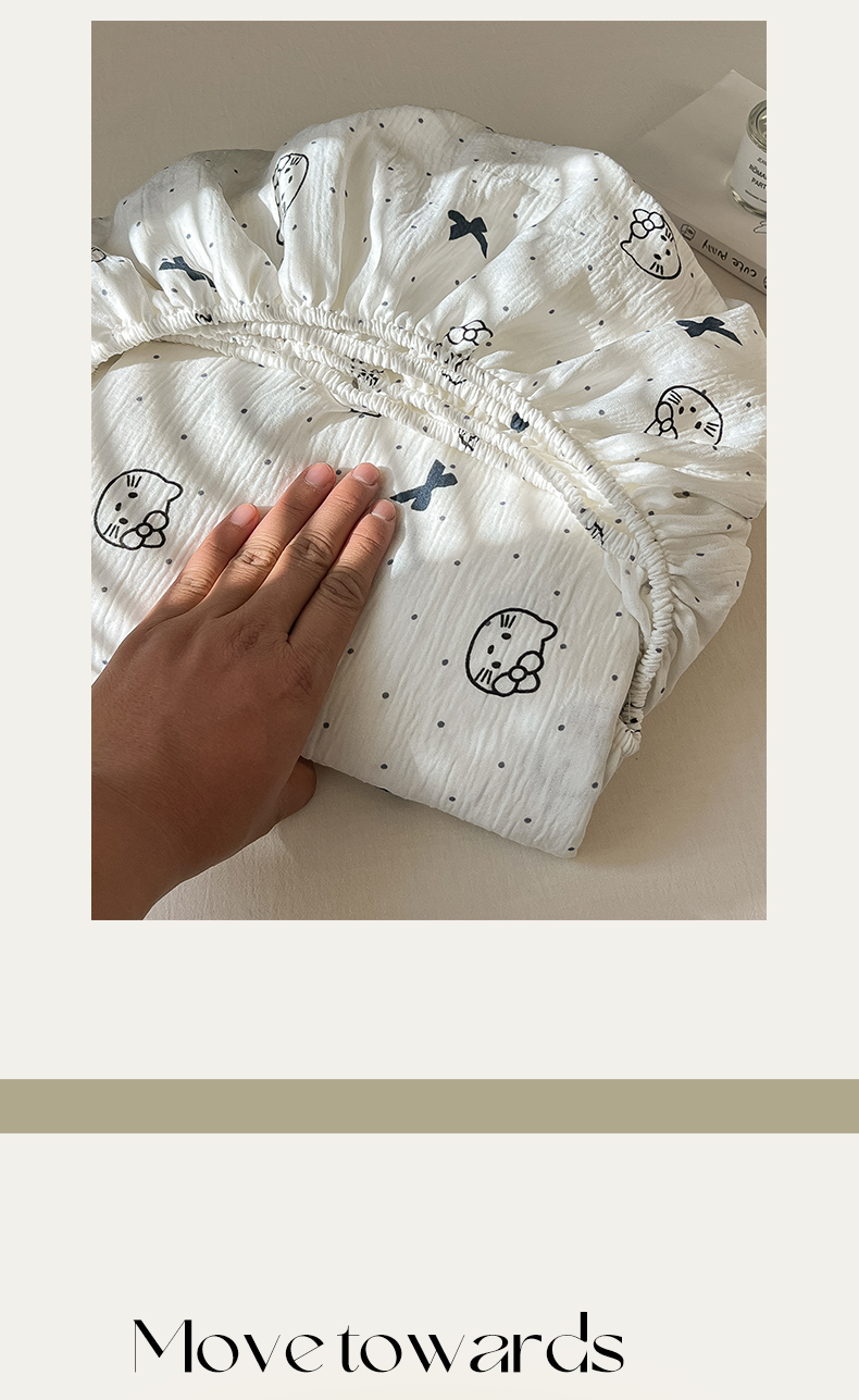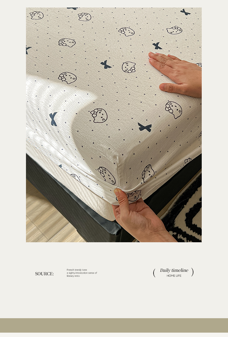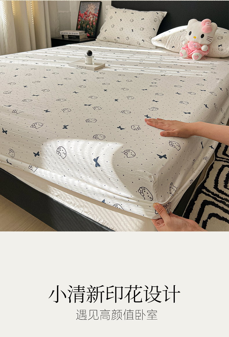 韩巢家纺 2026新款三层纱单床笠热销款防滑床笠单件 蓝莓小猫