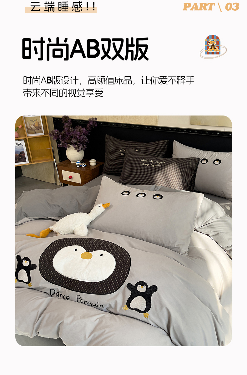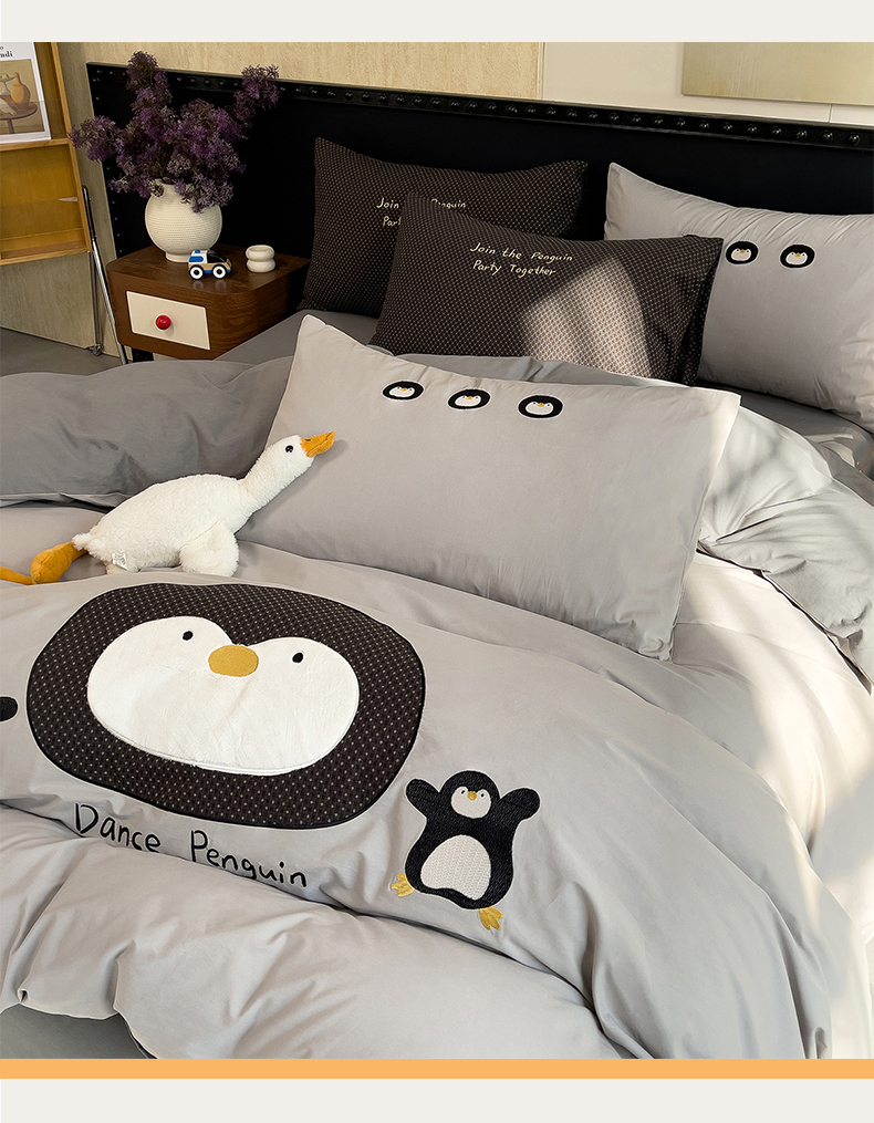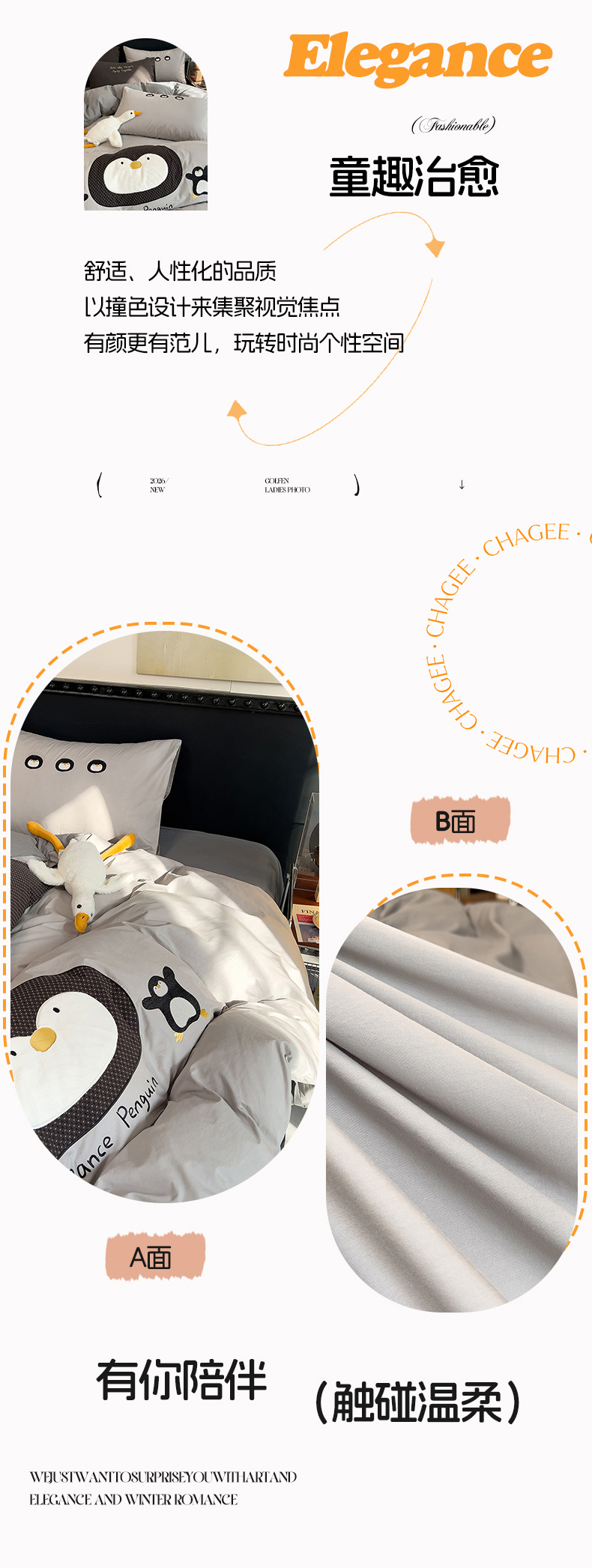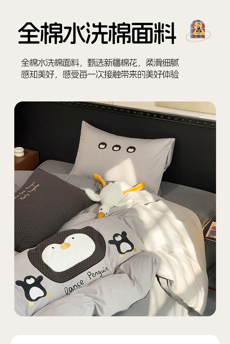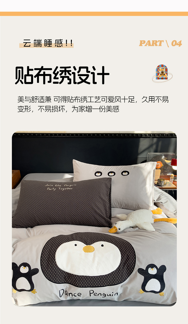 商品名称:(总)炫拼家纺 2026春夏新款A类全棉纯棉40支水洗棉卡通贴布绣刺绣纯棉四件套-卡哇系列
