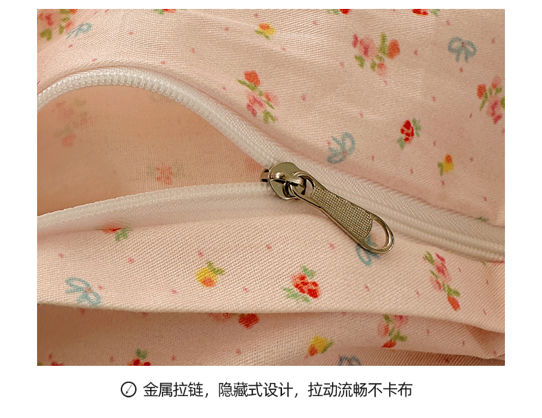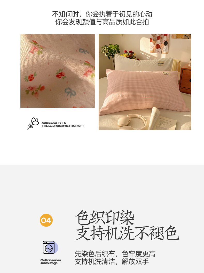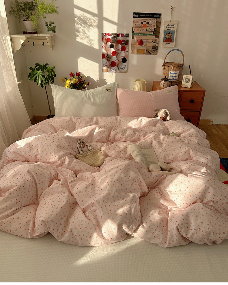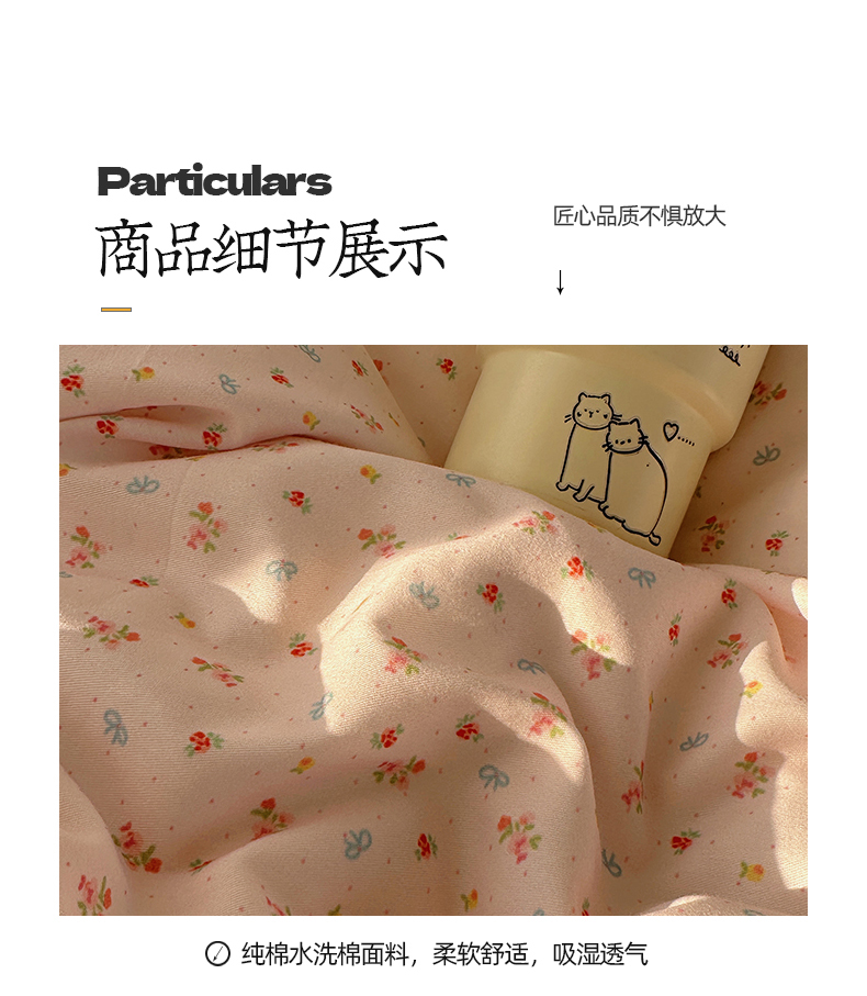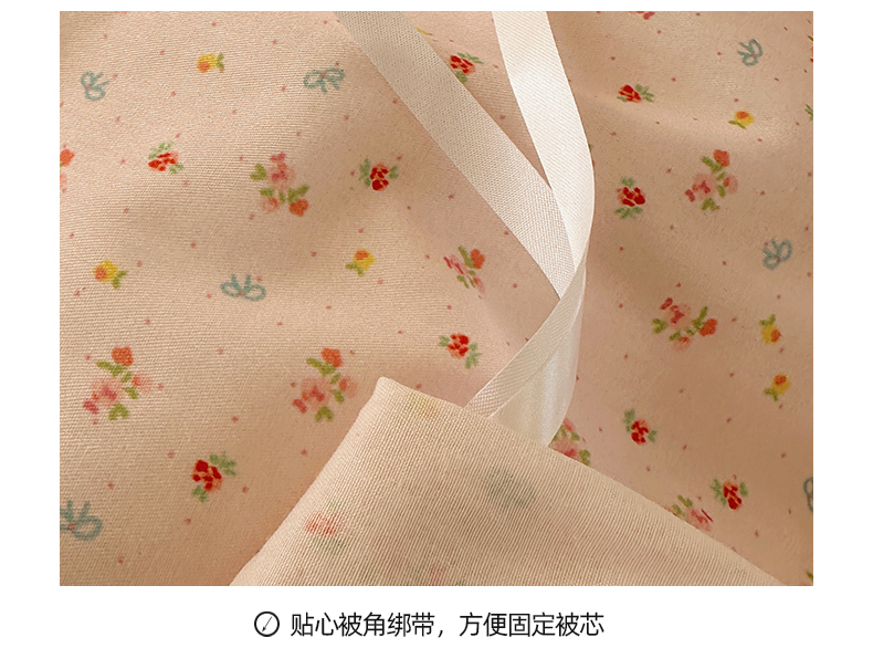 商品名称:桃子家居 2026新款A类纯棉水洗棉ins韩系小清新碎花混搭织标工艺色织水洗棉四件套系列 水洗棉-桃雾花甜