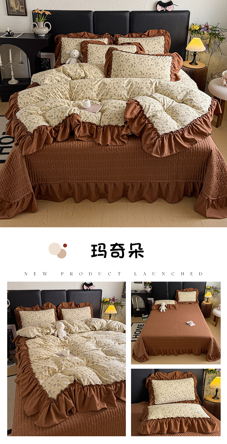 富米莱(原臻工厂) 2026新款韩系古法韩国水洗棉云棉大布袋法式浪漫大花边床盖夏凉被床盖四件套 砚余墨