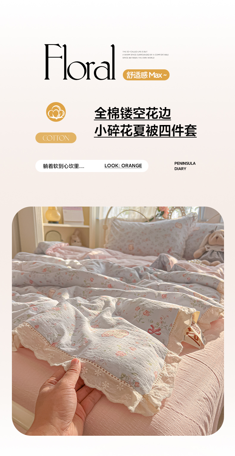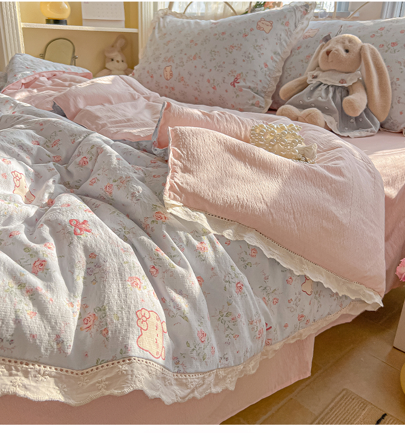 (总)罗亿家纺 2026新款全棉镂空花边云感双层纱夏被四件套,春日限定,点点小狗,海盐甜心,韩范小猫,赫本小姐,花花腊肠狗,花漾kitty,花与兔,简夏,蓝蓝小奶狗,蓝萱,蔷薇絮,萄气满满,小粉兔,小猫数星星,星星兔,薰衣草,枝蔓,kitty甜梦窝,组合图仅展示