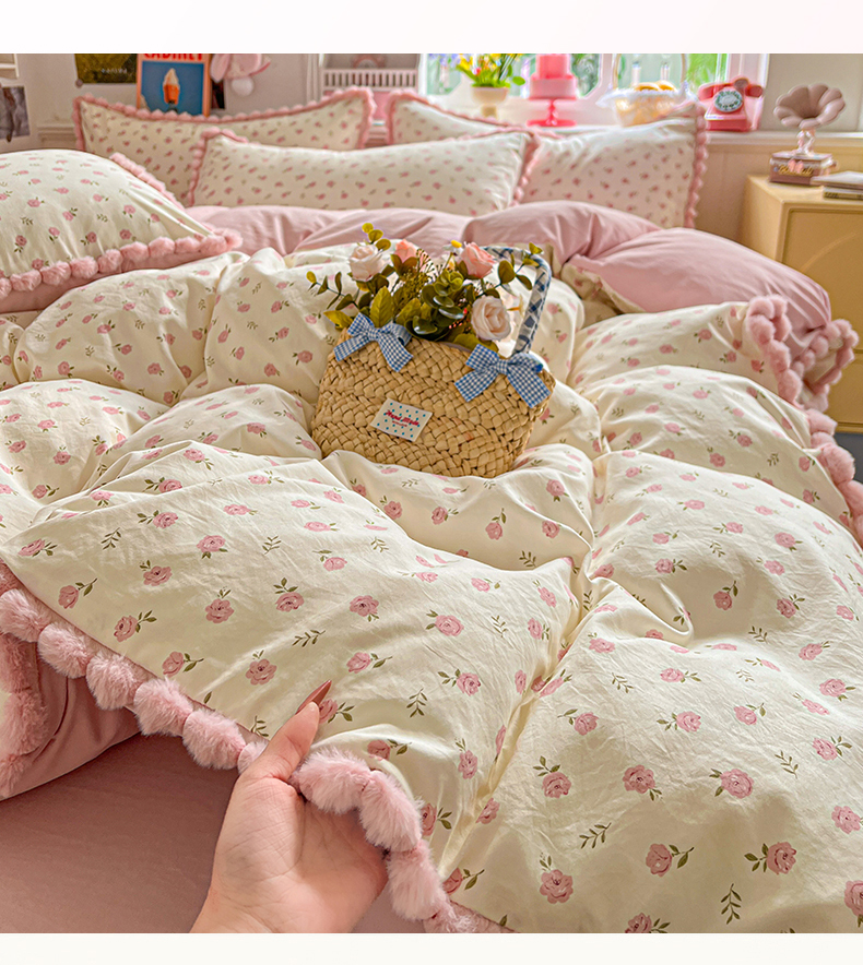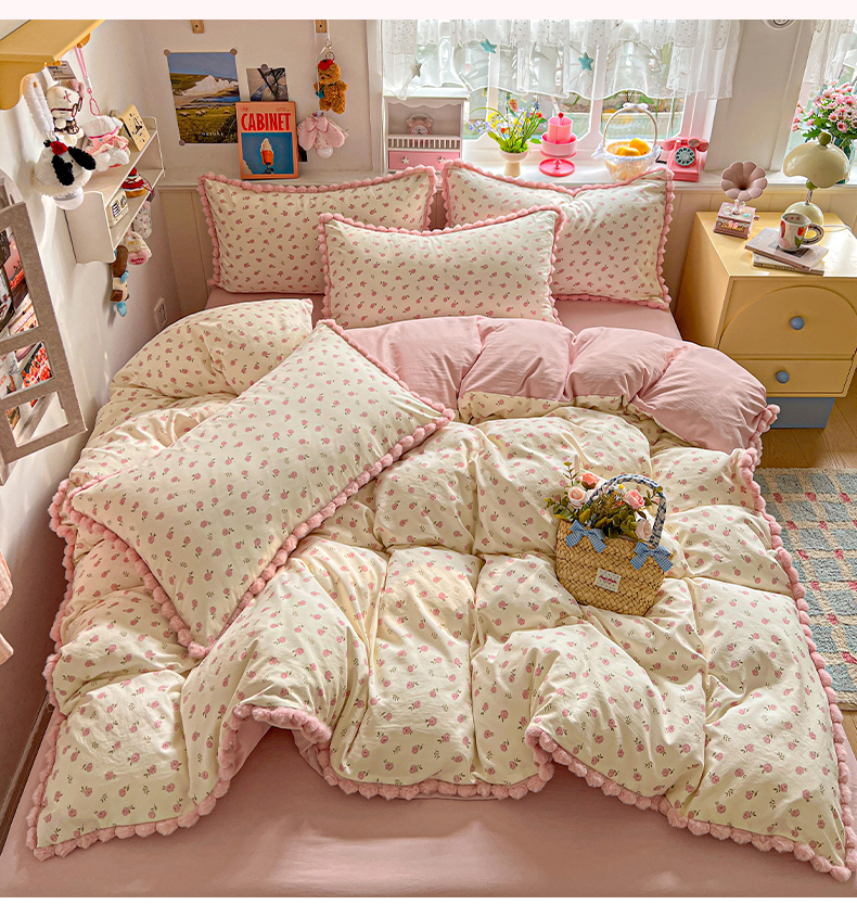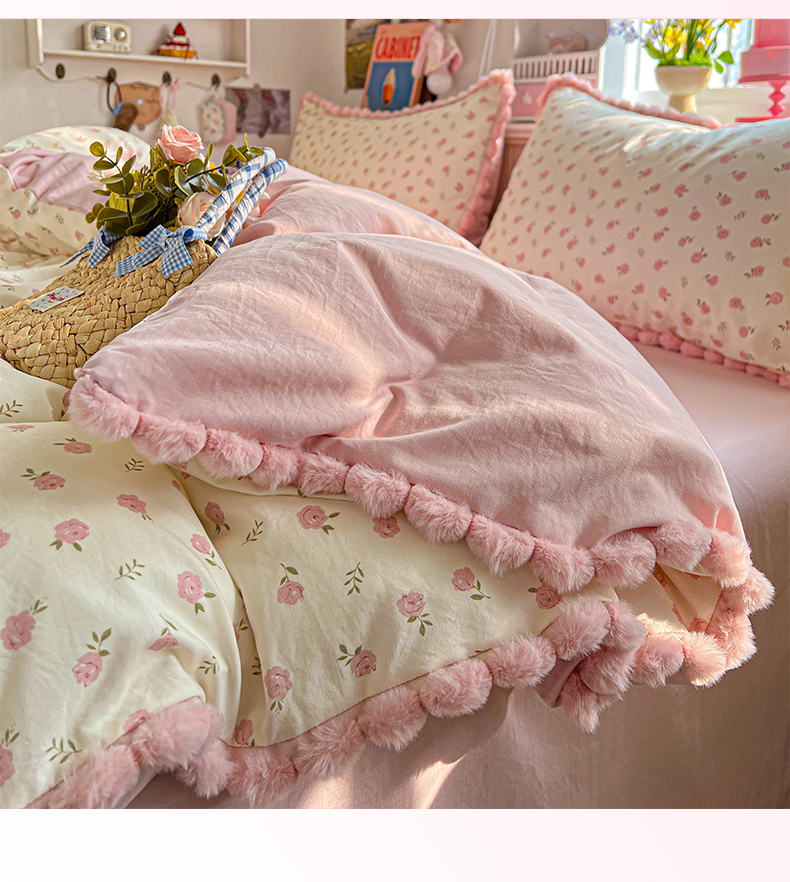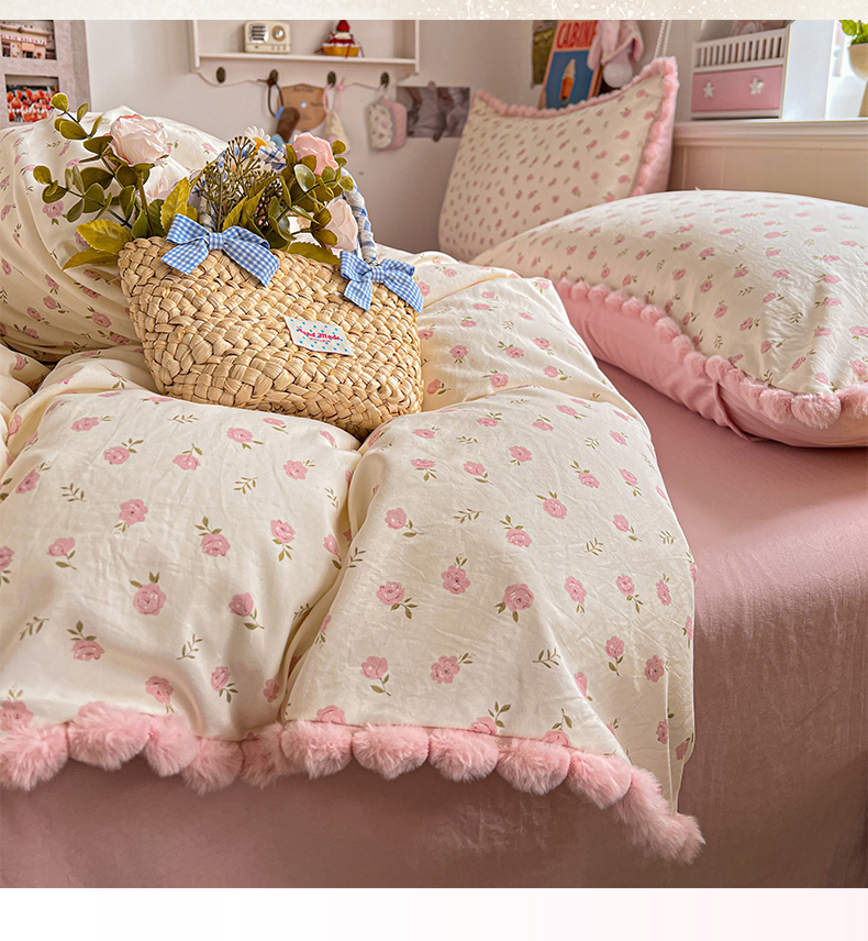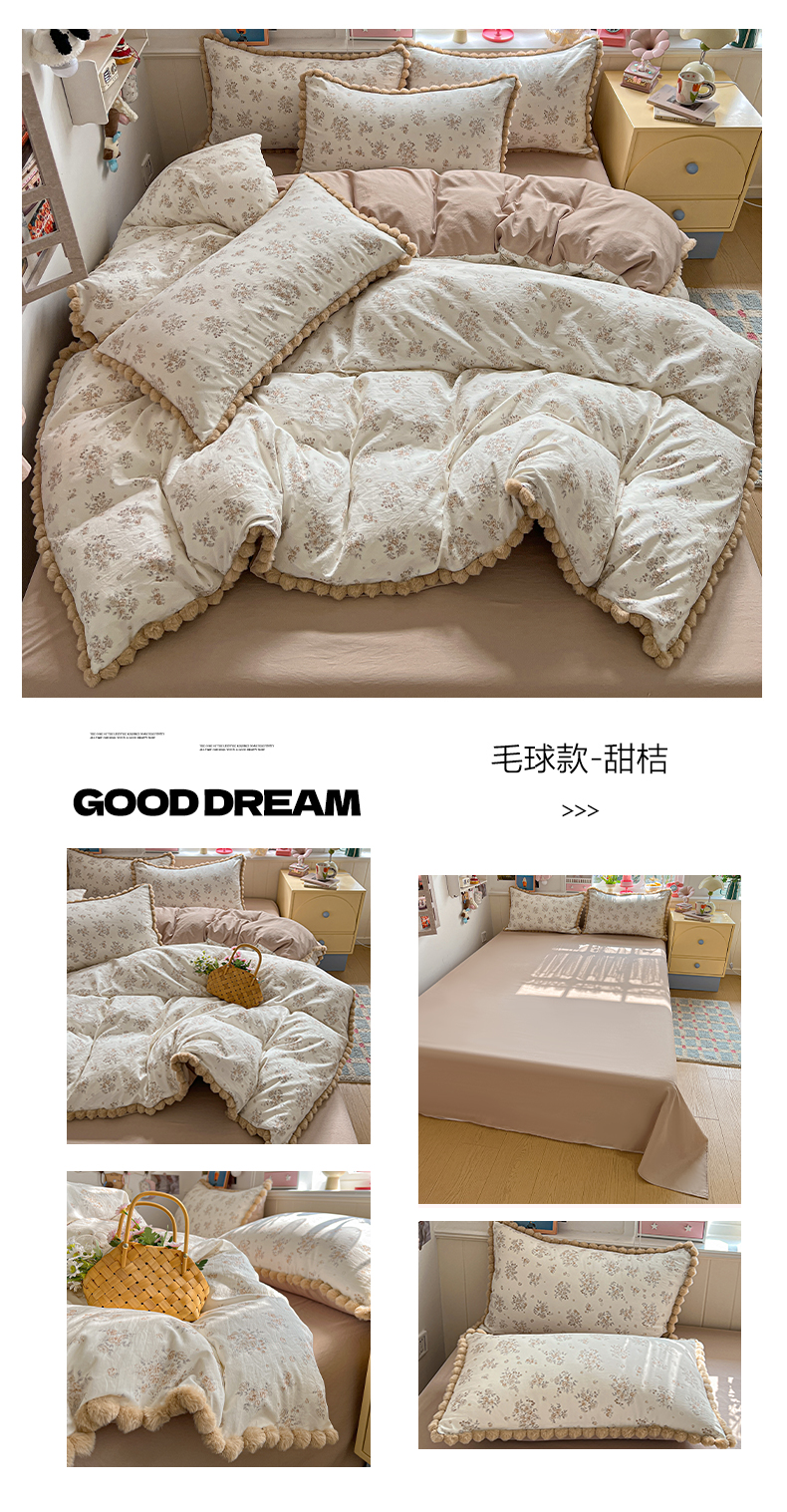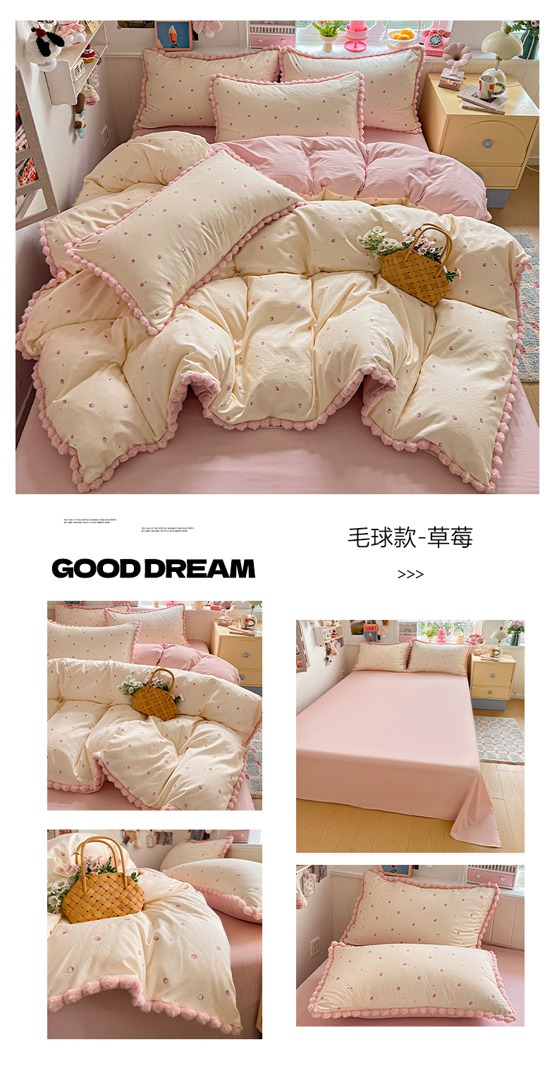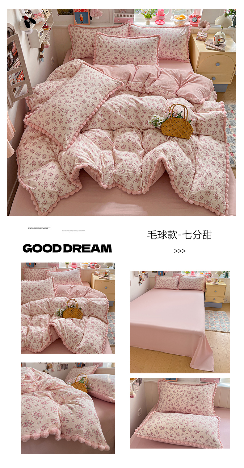 (总)鑫利来家纺 2026新款毛球款四件套古法水洗棉韩式法式花边四件套被套学生床单三件套,毛球款-小玫瑰,毛球款-草莓,毛球款-花间谣,毛球款-花间小兔,毛球款-七分甜,毛球款-甜桔,毛球款-唯美