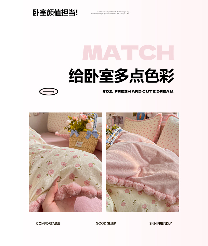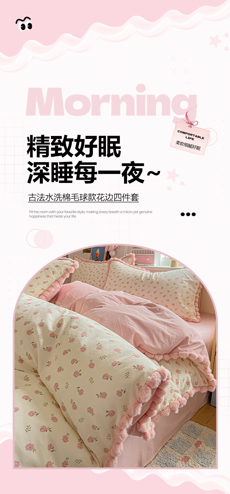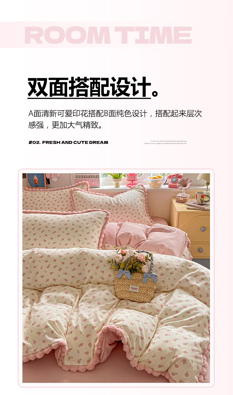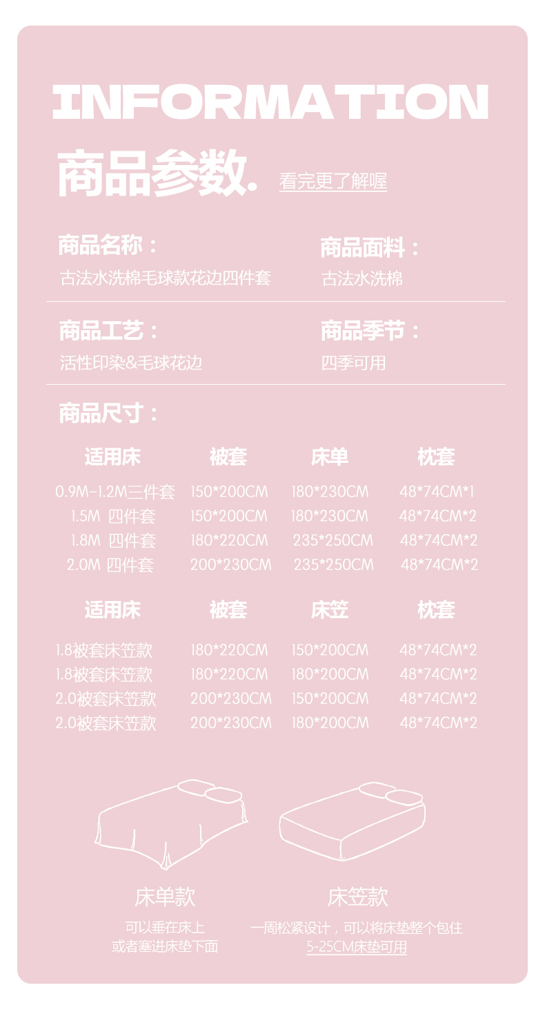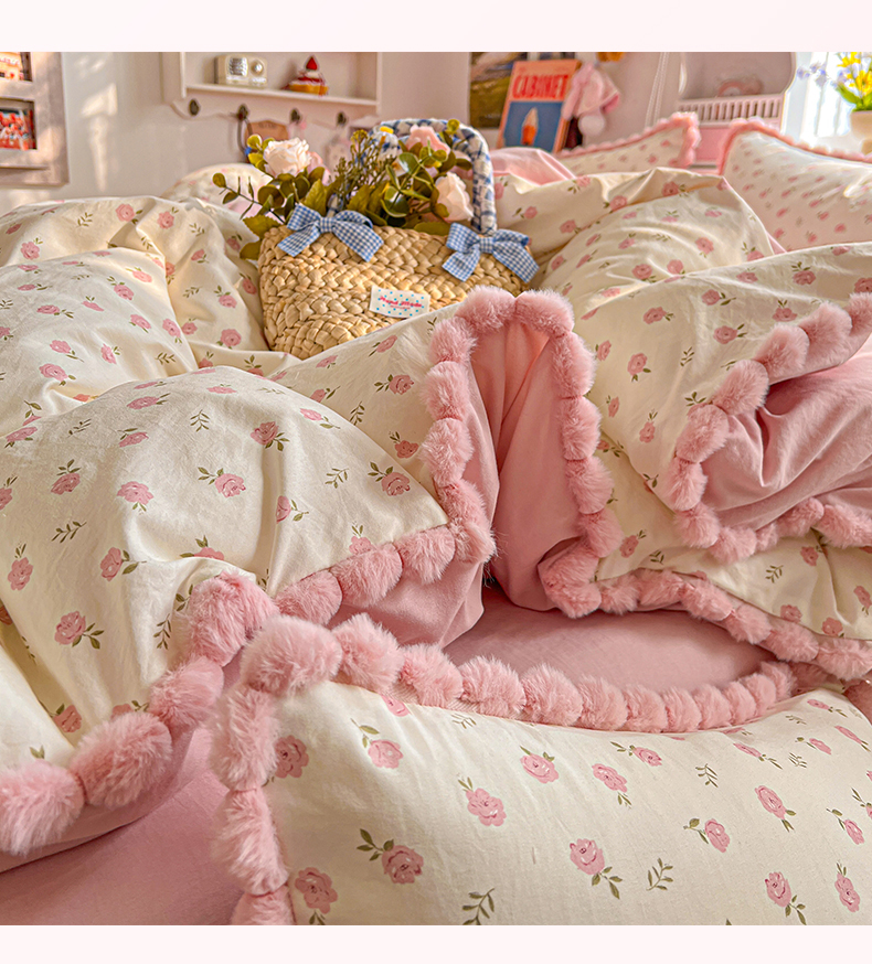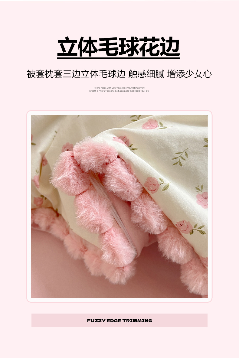 (总)鑫利来家纺 2026新款毛球款四件套古法水洗棉韩式法式花边四件套被套学生床单三件套,毛球款-小玫瑰,毛球款-草莓,毛球款-花间谣,毛球款-花间小兔,毛球款-七分甜,毛球款-甜桔,毛球款-唯美