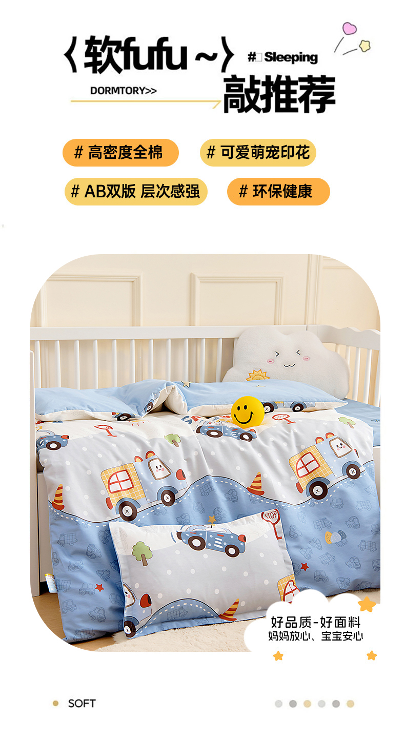 当前位置: 91家纺网 > 商品网购 > 床品套件 > 四件套 > 其它四件套 > 芭伯妮 2026新款全棉AB版幼儿园三件套宝宝午睡被子六件套儿童被套多件套(第一批)车车环游记