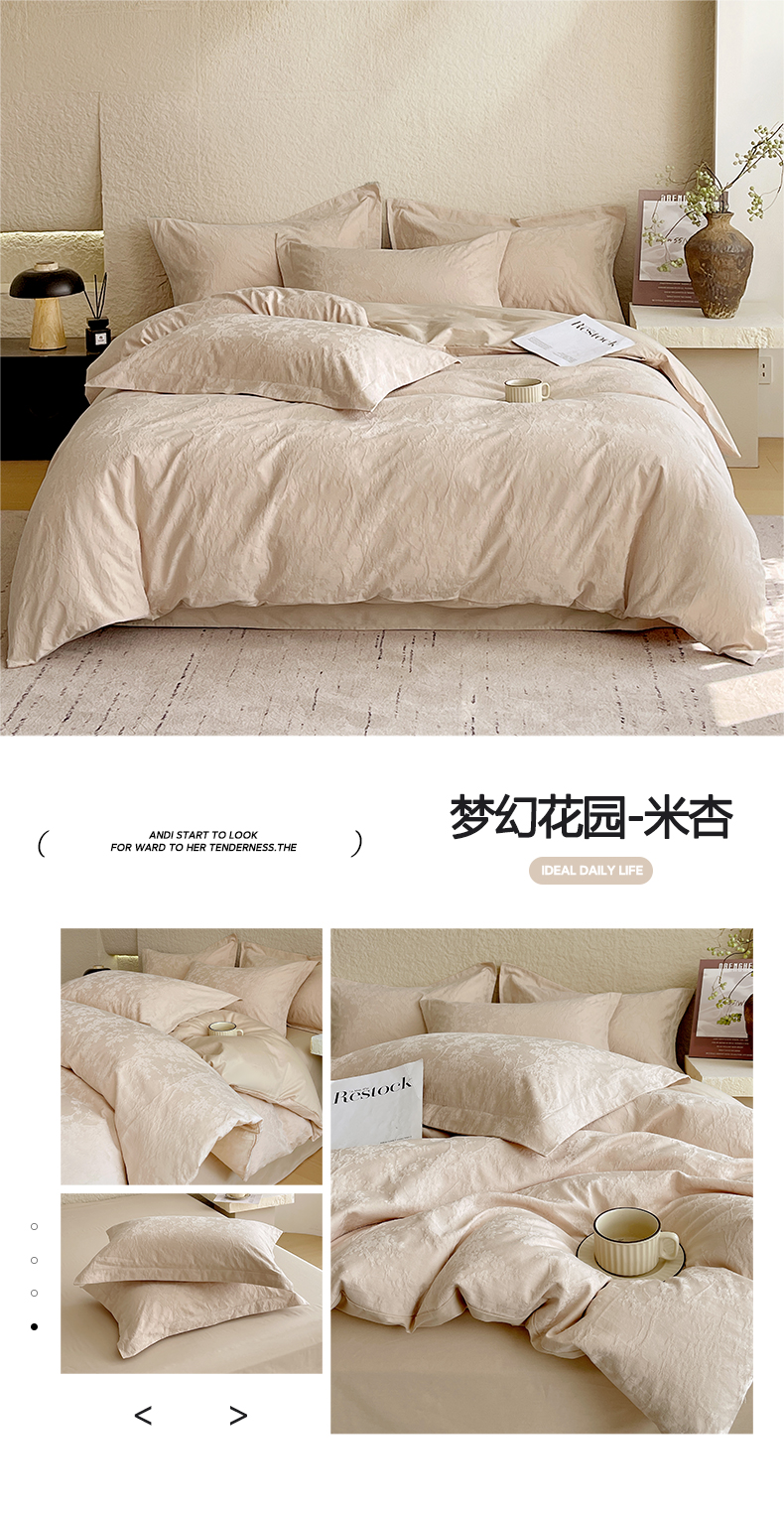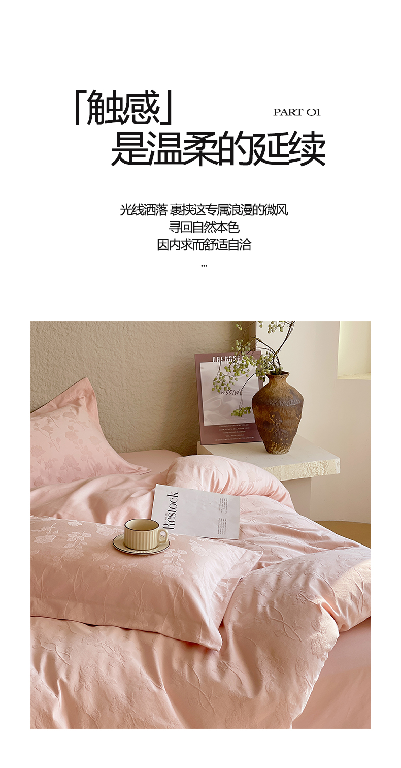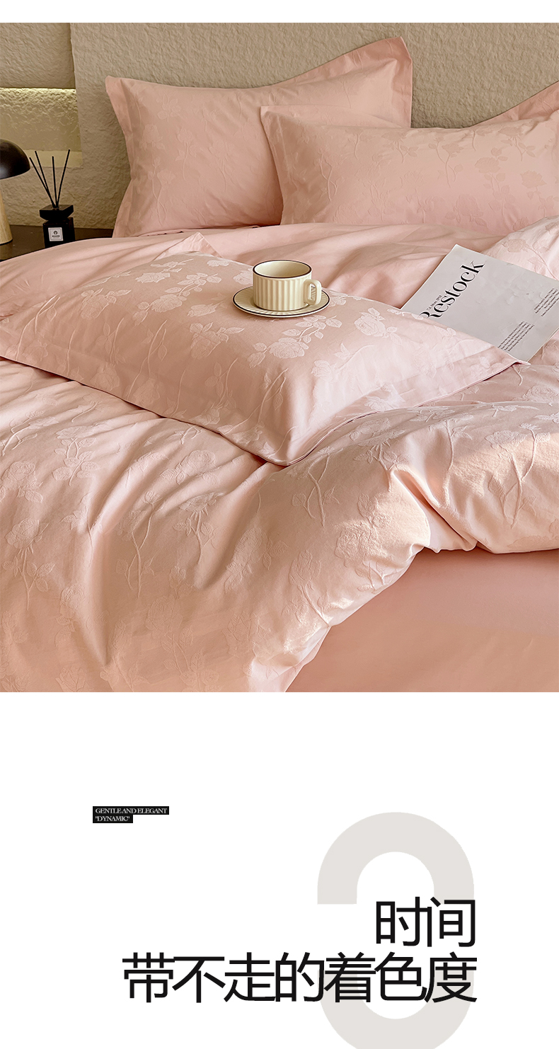 商品名称:麦田家纺 2026新款A类全棉亮面浮雕提花四件套 岁月留声-唯美粉