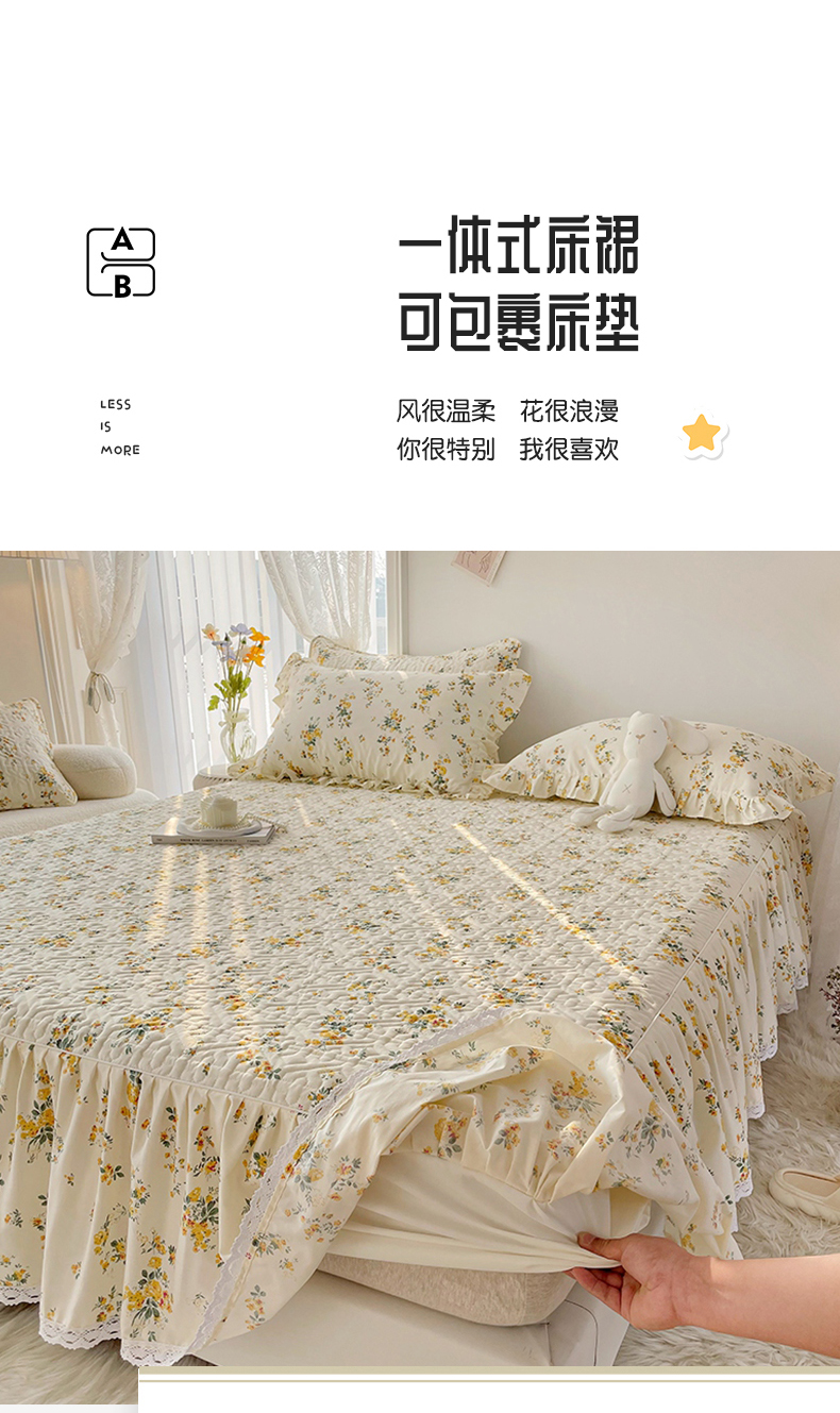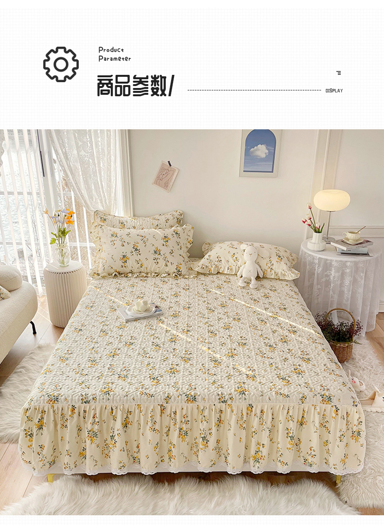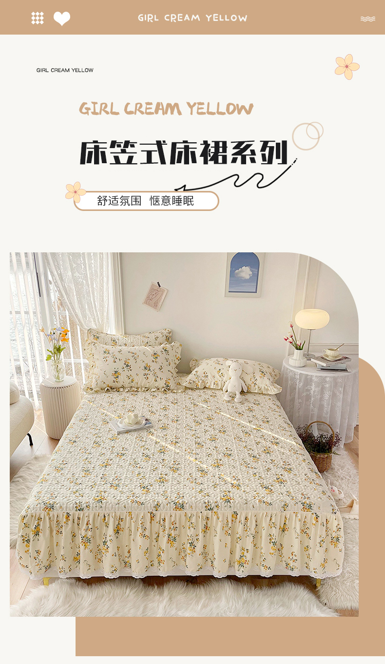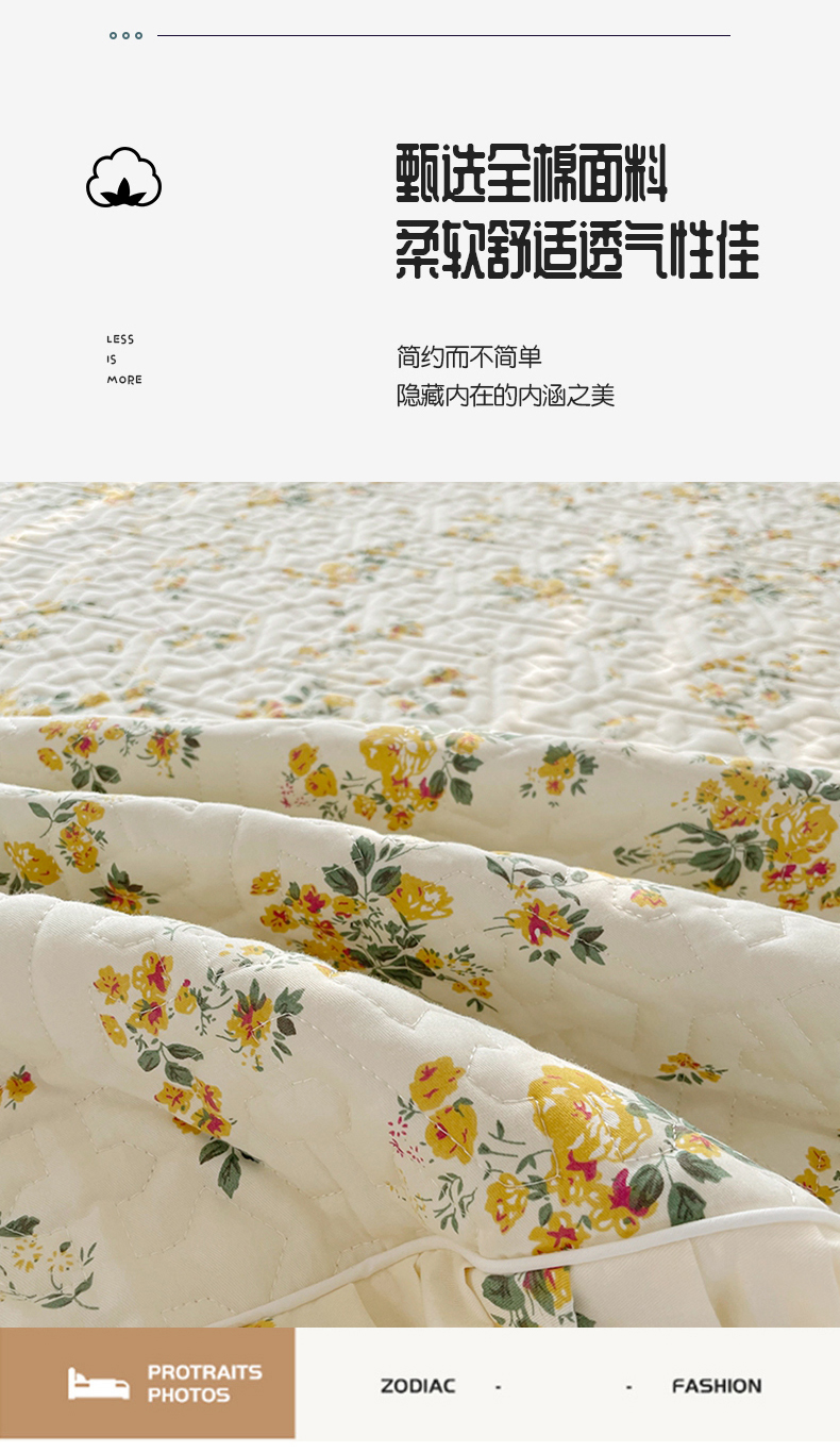 • 91家纺网 家纺一手货源 找家纺 忘忧草 2026新款13372全棉夹棉款床笠式床裙 10温迪