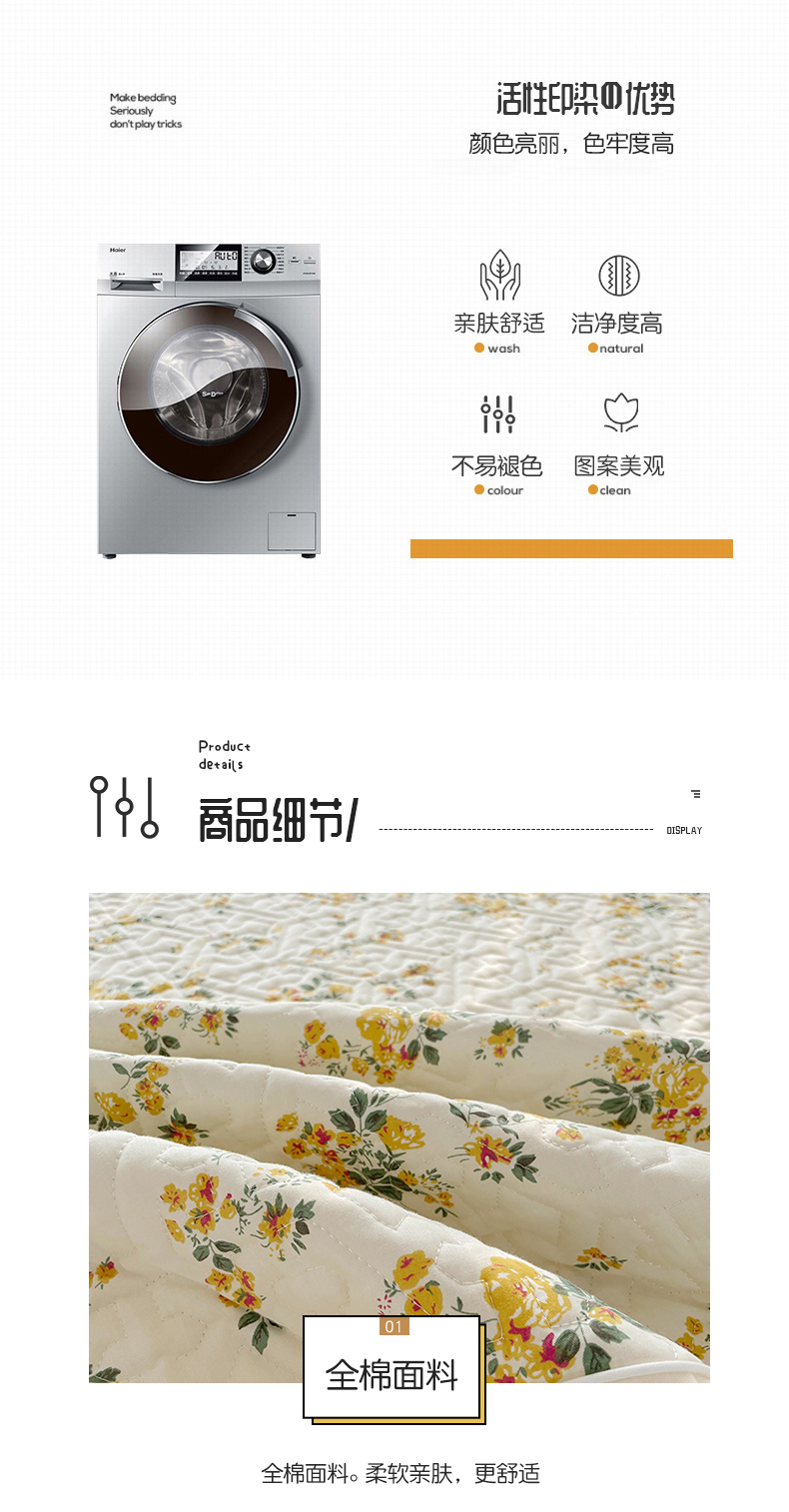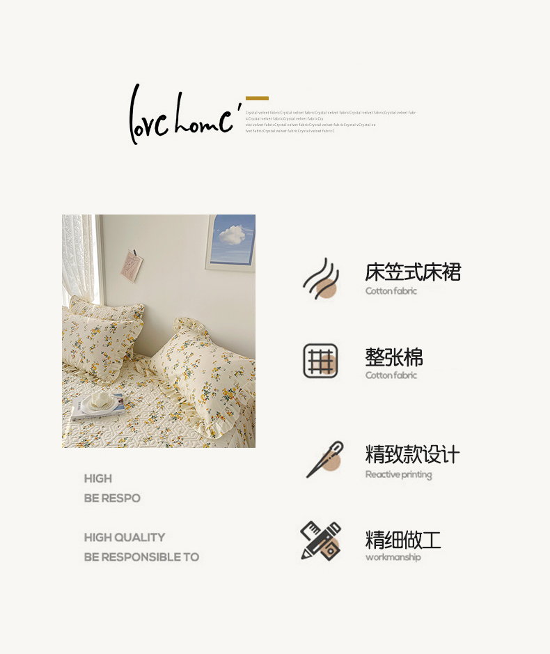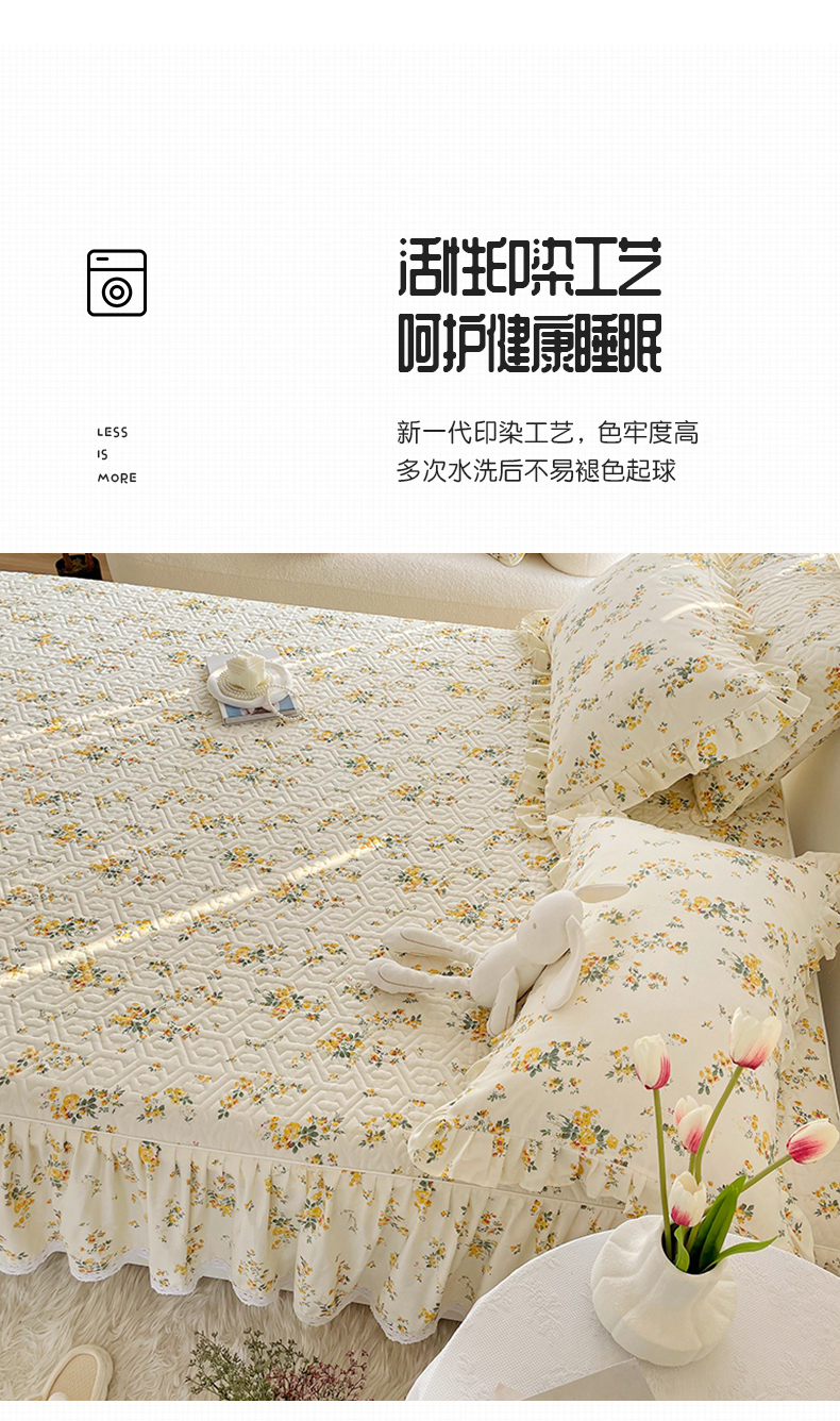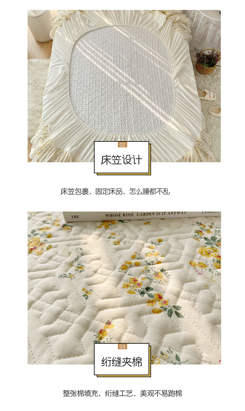• 91家纺网 家纺一手货源 找家纺 忘忧草 2026新款13372全棉夹棉款床笠式床裙 10温迪