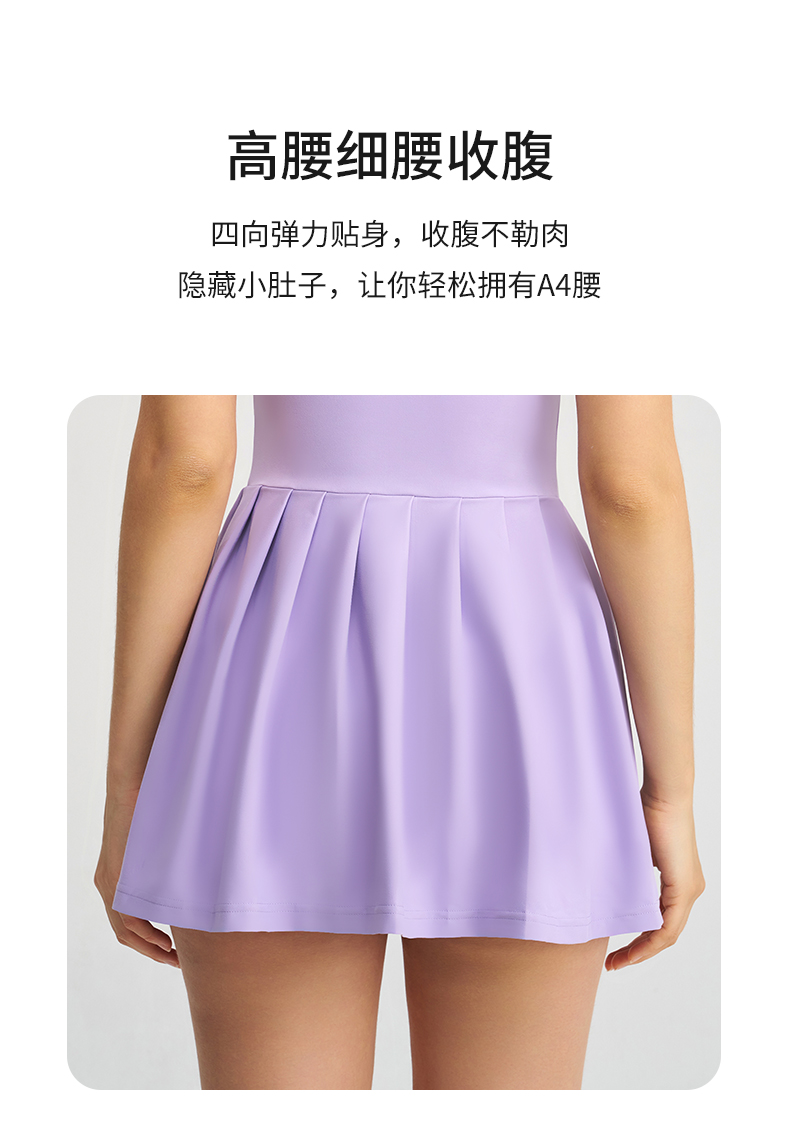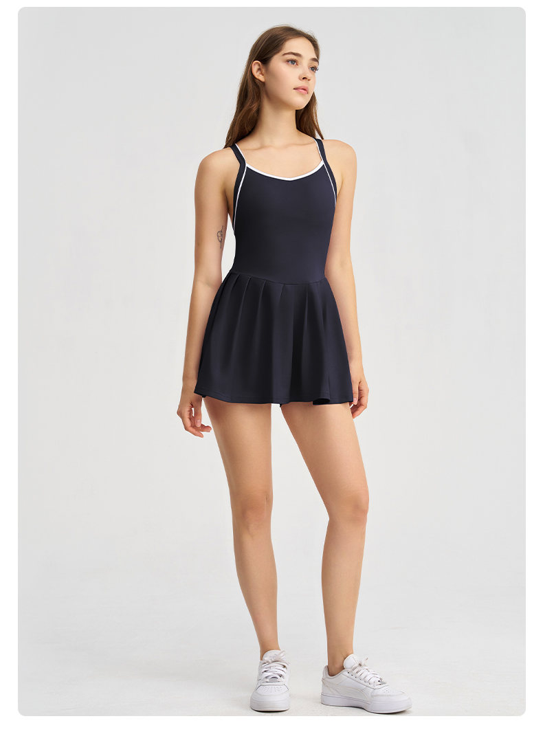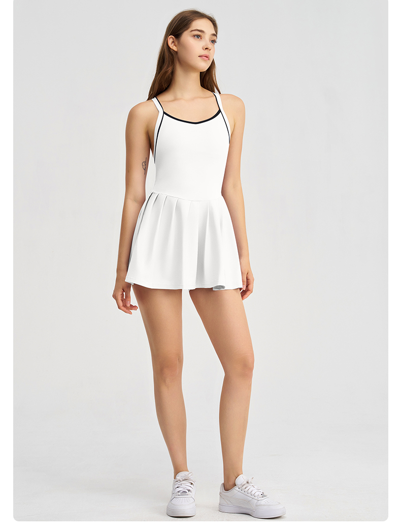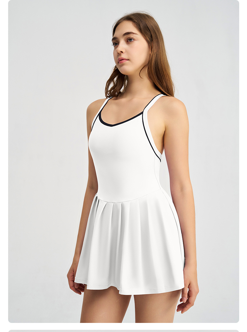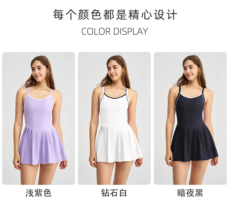 商品名称:(总)沐珩家纺 2026新款跨境短裙带胸垫连衣裙百褶裙打底裤透气速干运动跑步防走光网球裙