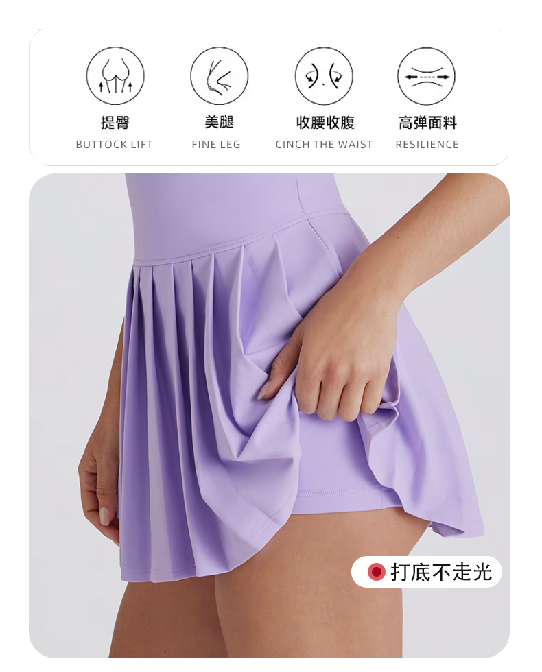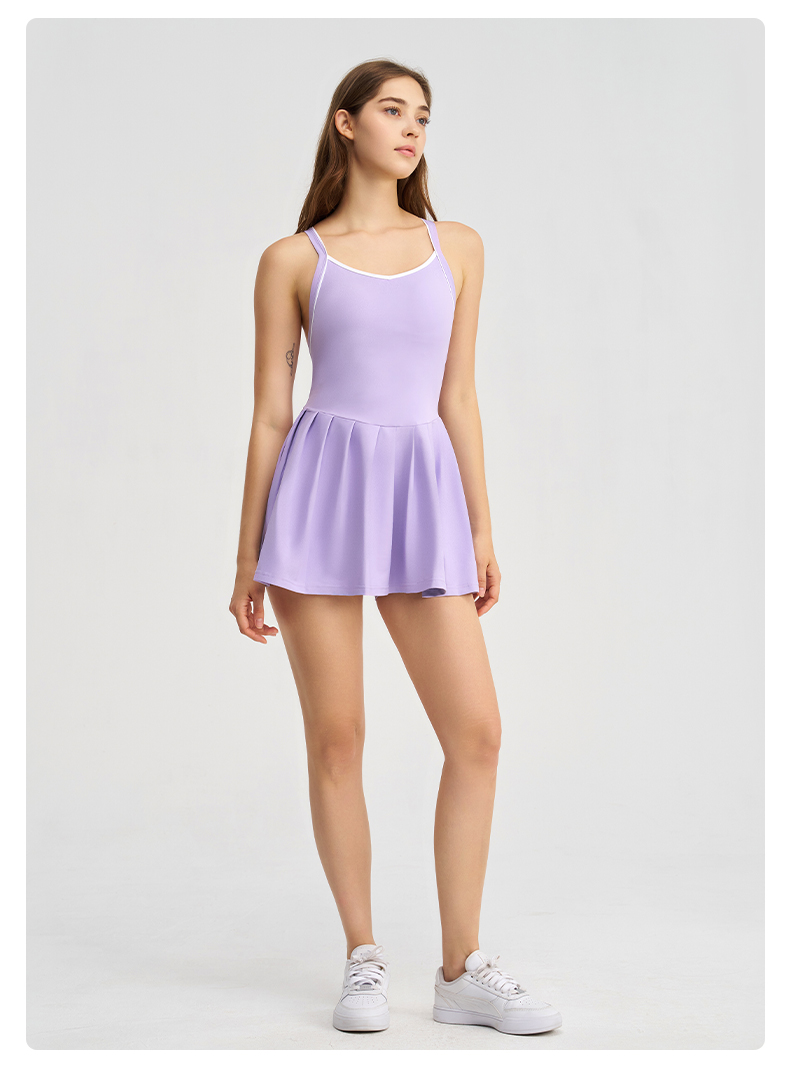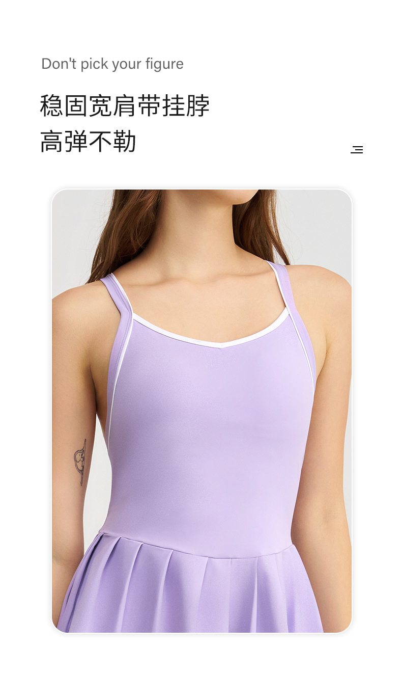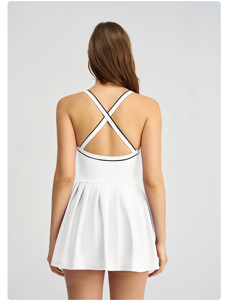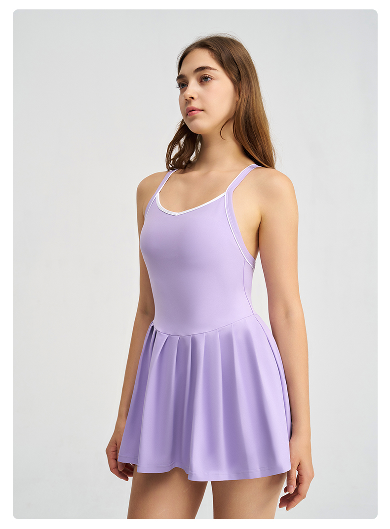 商品名称:(总)沐珩家纺 2026新款跨境短裙带胸垫连衣裙百褶裙打底裤透气速干运动跑步防走光网球裙