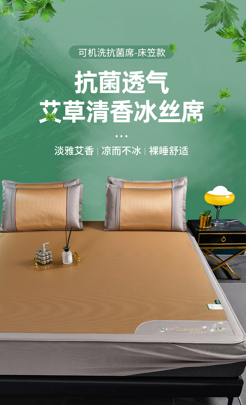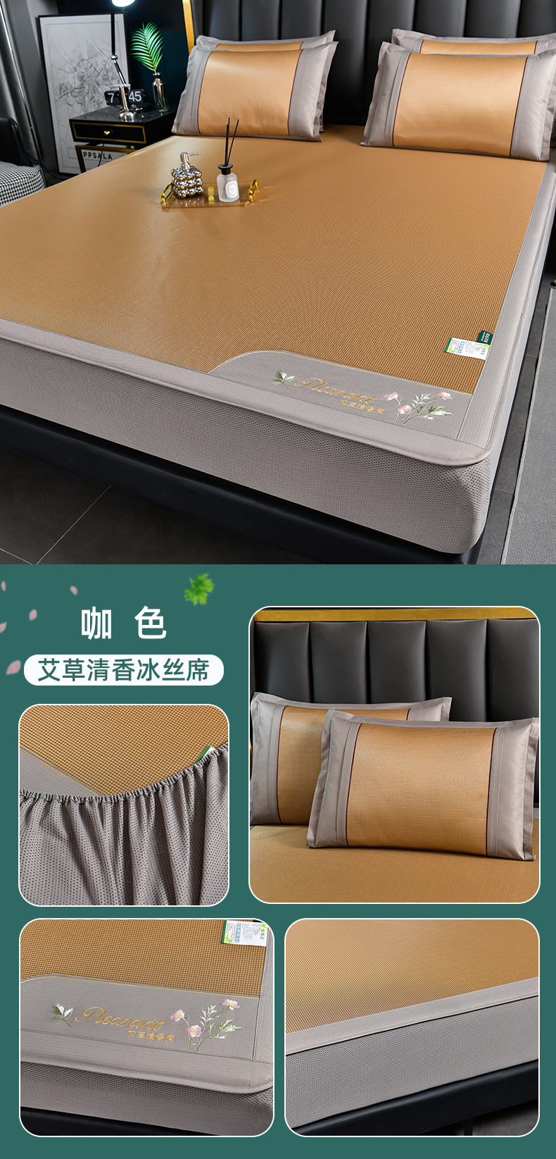 • 91家纺网 家纺一手货源 找家纺 小牛席业 2026新款艾草清香冰丝席(床笠款)凉席藤席冰藤席冰丝席竹席草席空调席乳胶席豆豆席 艾草清香冰丝席(床笠款)-咖色