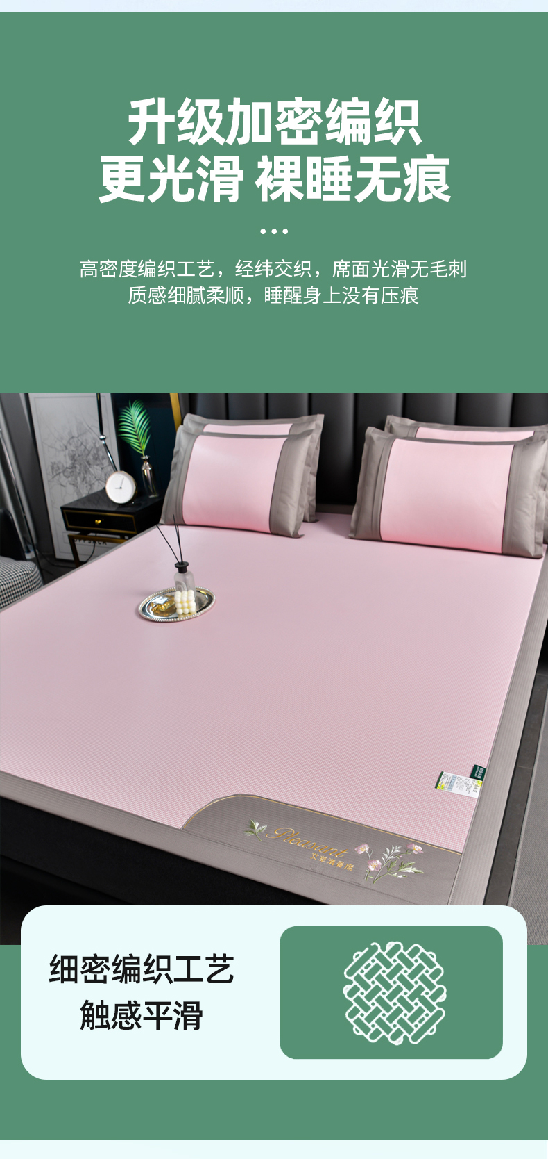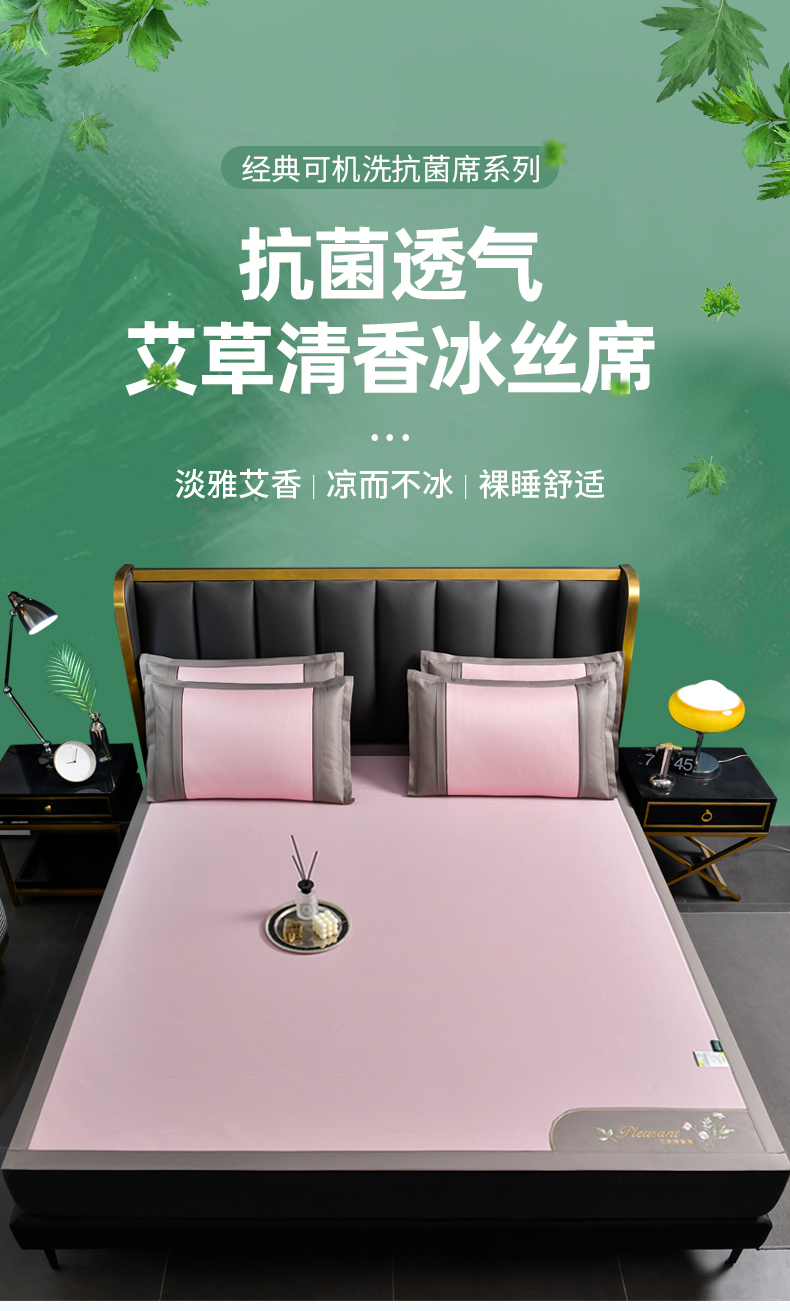 当前位置: 91家纺网 > 商品网购 > 床上用品 > 凉席 > 凉席套件 > 小牛席业 2026新款艾草清香冰丝席系列凉席藤席冰藤席冰丝席竹席草席空调席乳胶席豆豆席 艾草清香冰丝席-粉色