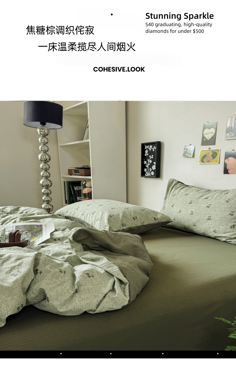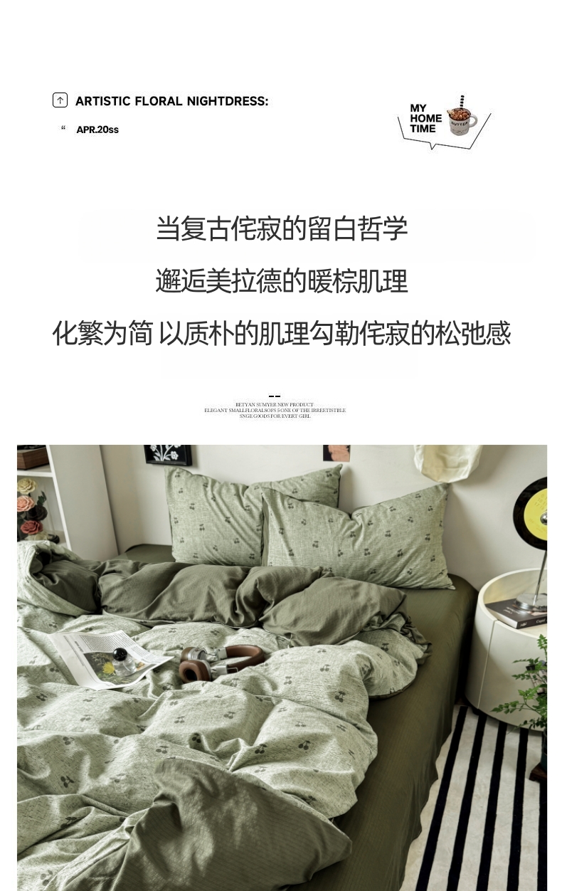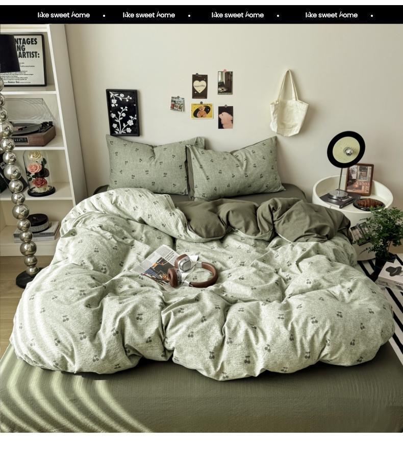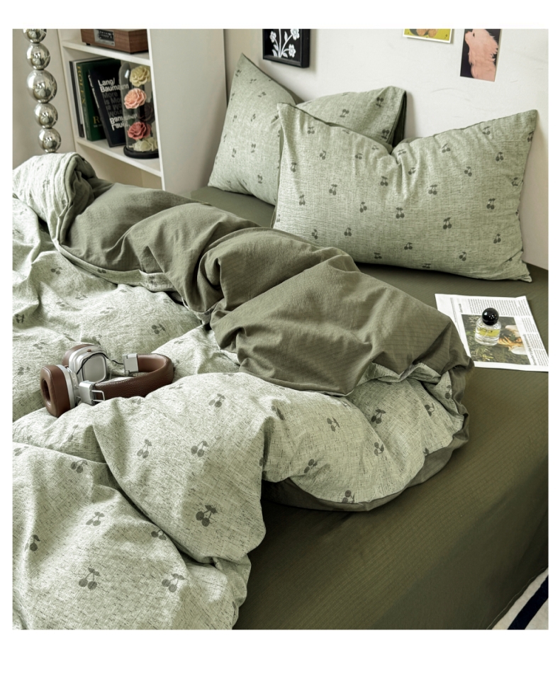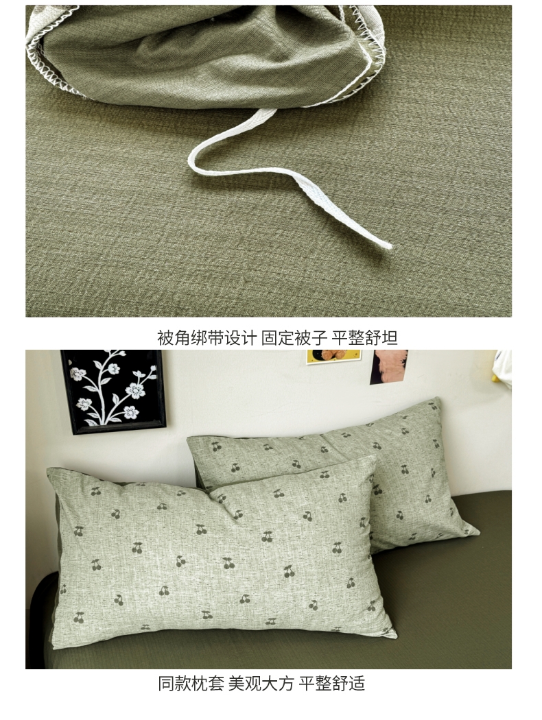 当前位置: 91家纺网 > 商品网购 > 床品套件 > 四件套 > 化纤活性四件套 > 雅阁尔家纺 2026新款轻奢复古美拉德风泡芙棉四件套水洗棉双层纱床单被套学生宿舍三件套床笠款 绿樱