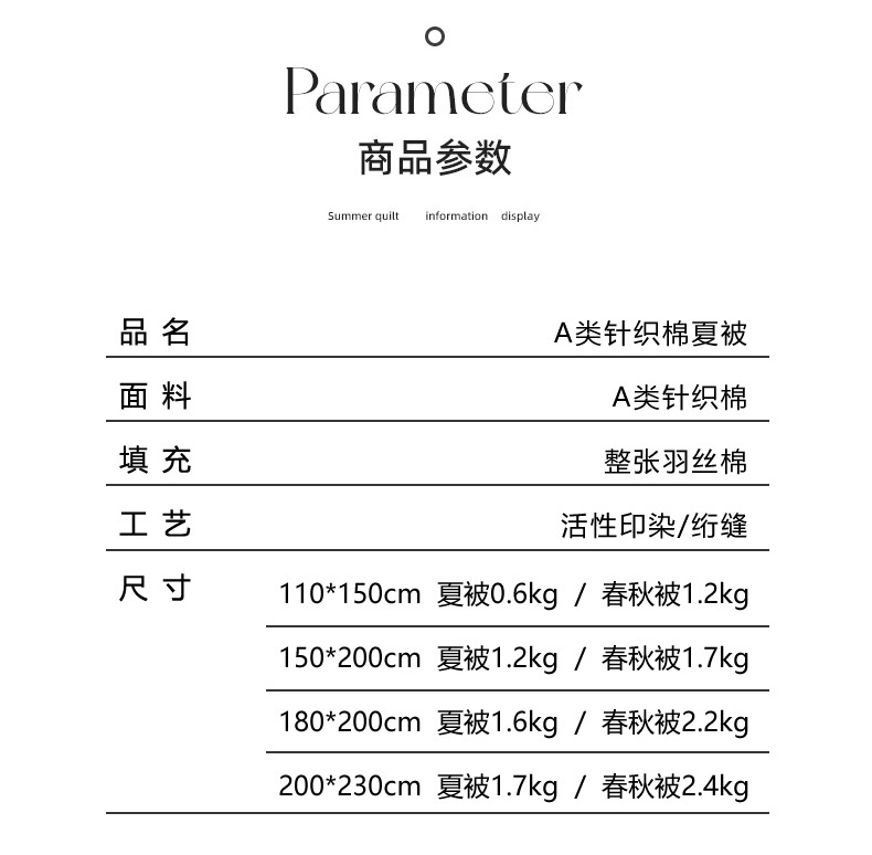 • 适用季节: 空调被/夏凉被