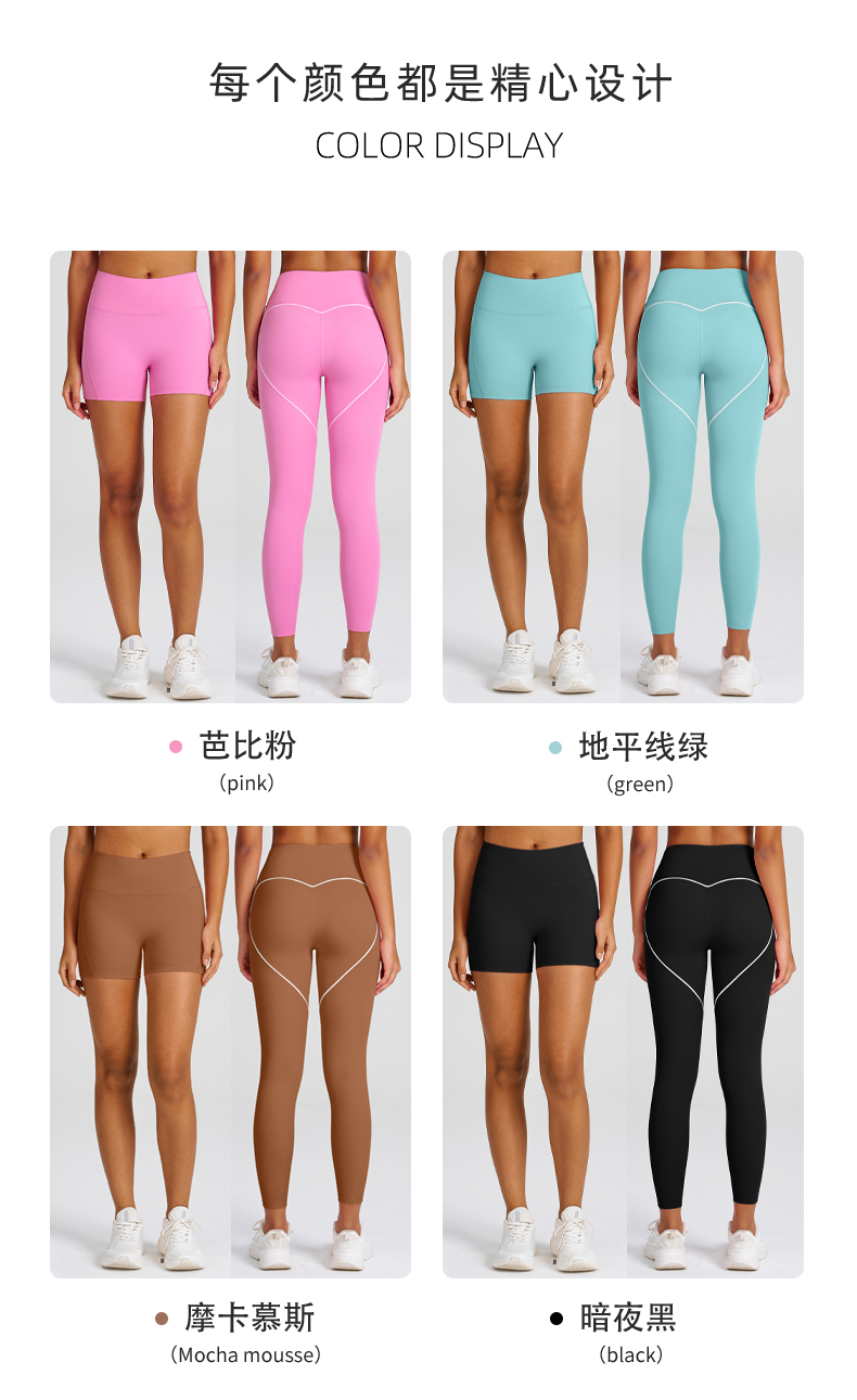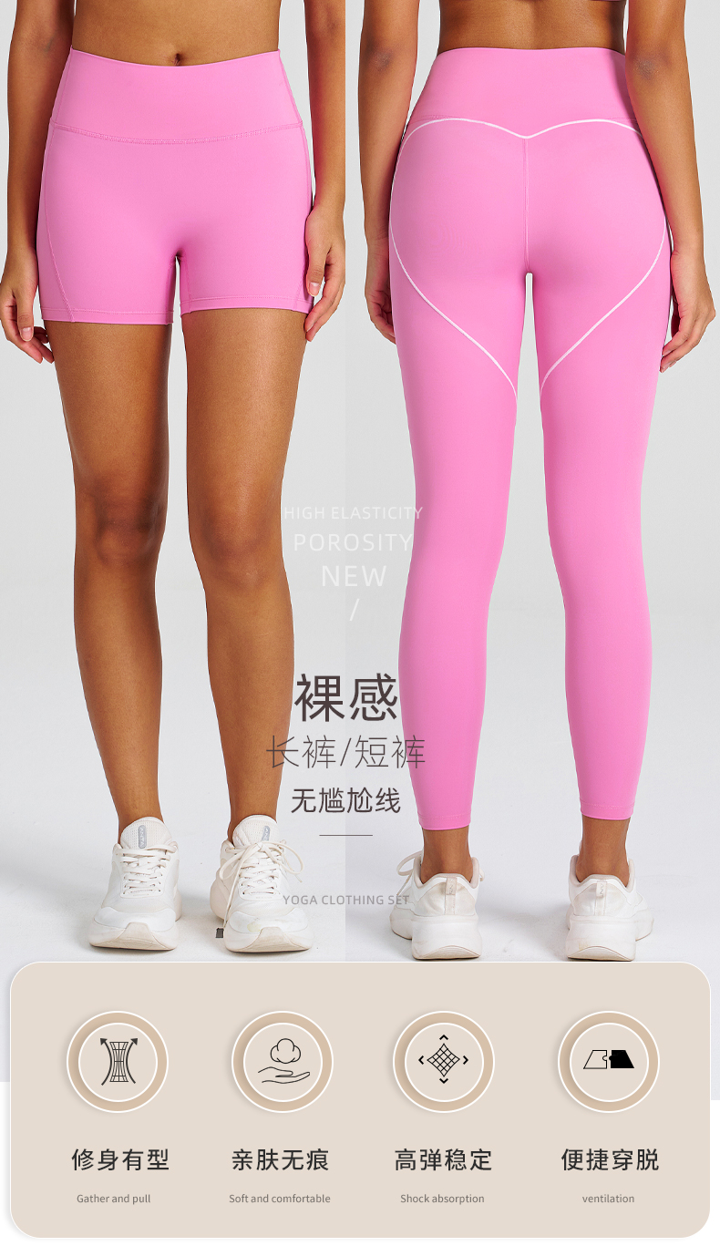 商品名称:(总)沐珩家纺 2026新款跨境蜜桃臀无缝收腹紧身瑜伽裤女外穿跑步运动速干健身裤三分短裤