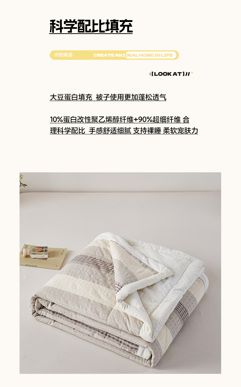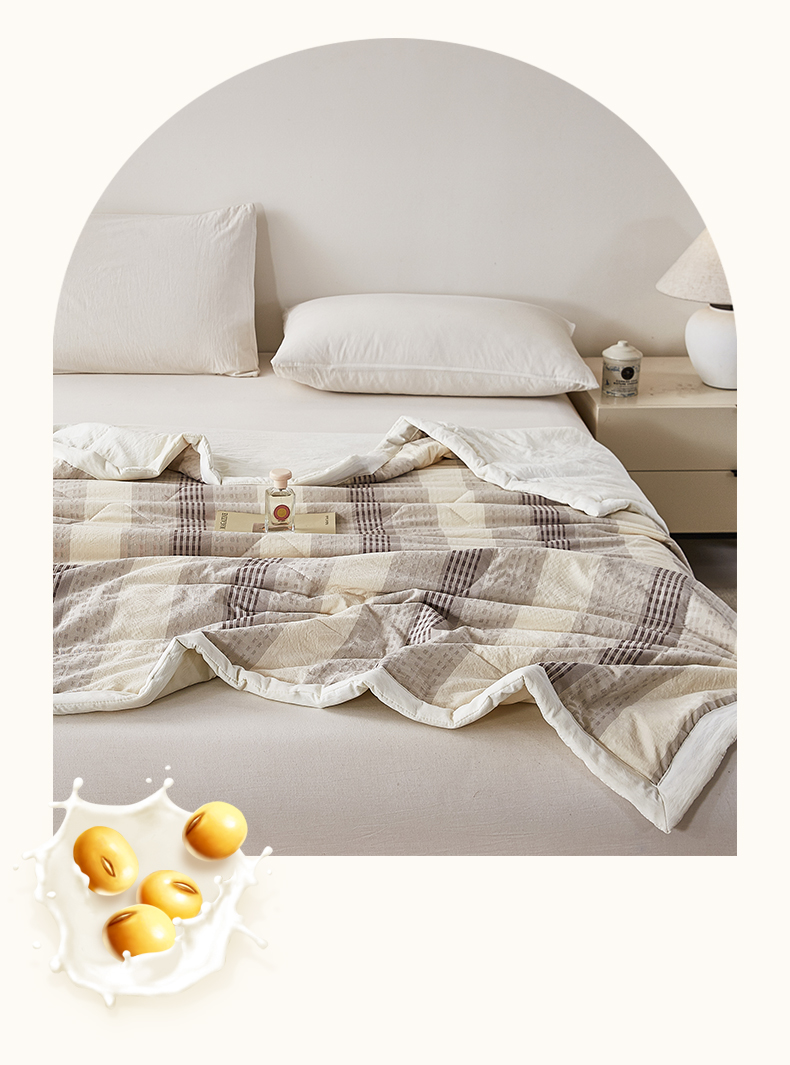 (总)心悦家纺 2025新款99A类全棉原棉大豆蛋白被,豆沙,灰色,原棉白
