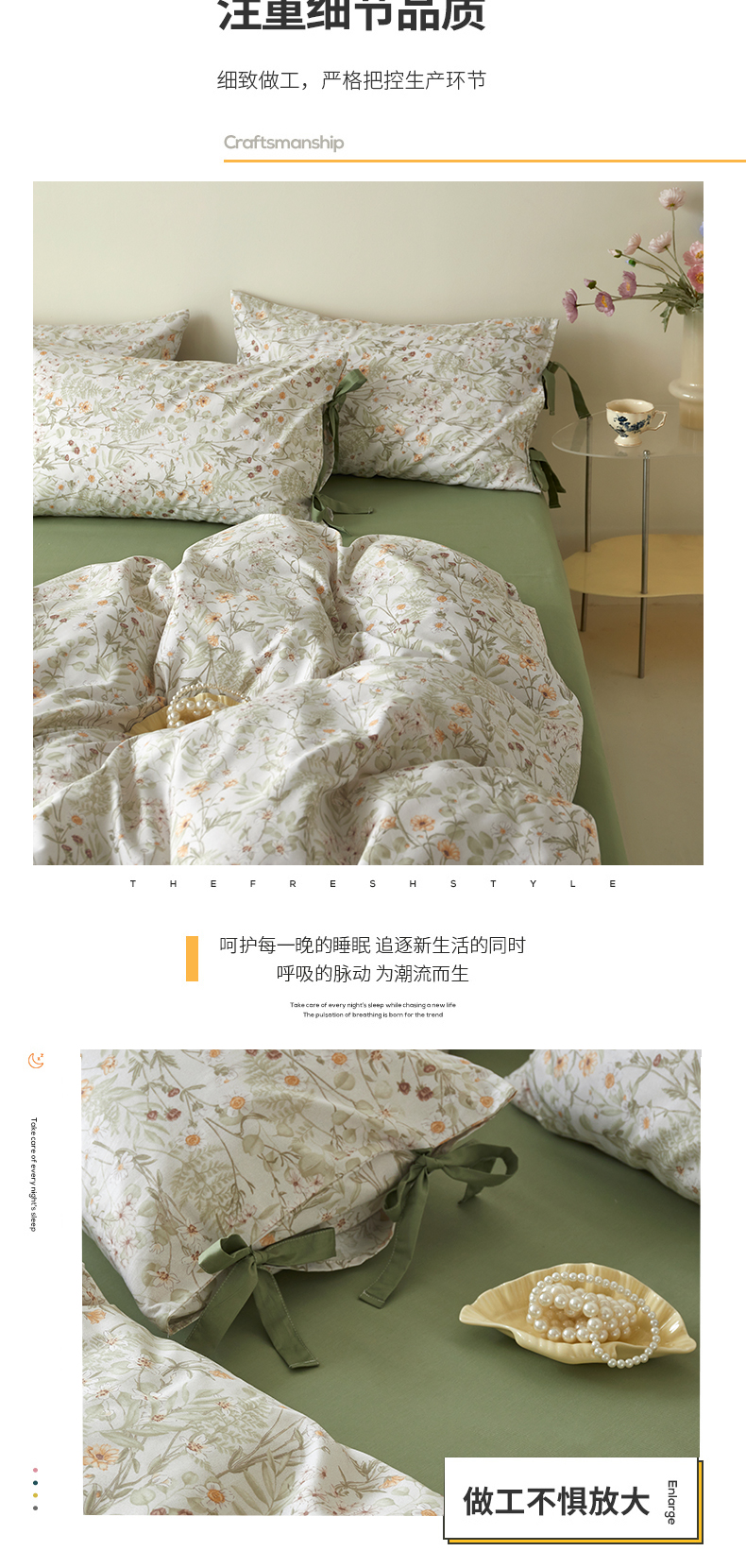 当前位置: 91家纺网 > 商品网购 > 床品套件 > 四件套 > 全棉普通四件套 > (总)绫韵家纺 2026春夏新款13372全棉ins小碎花纯棉田园风床单床笠四件套系绳蝴蝶结系列