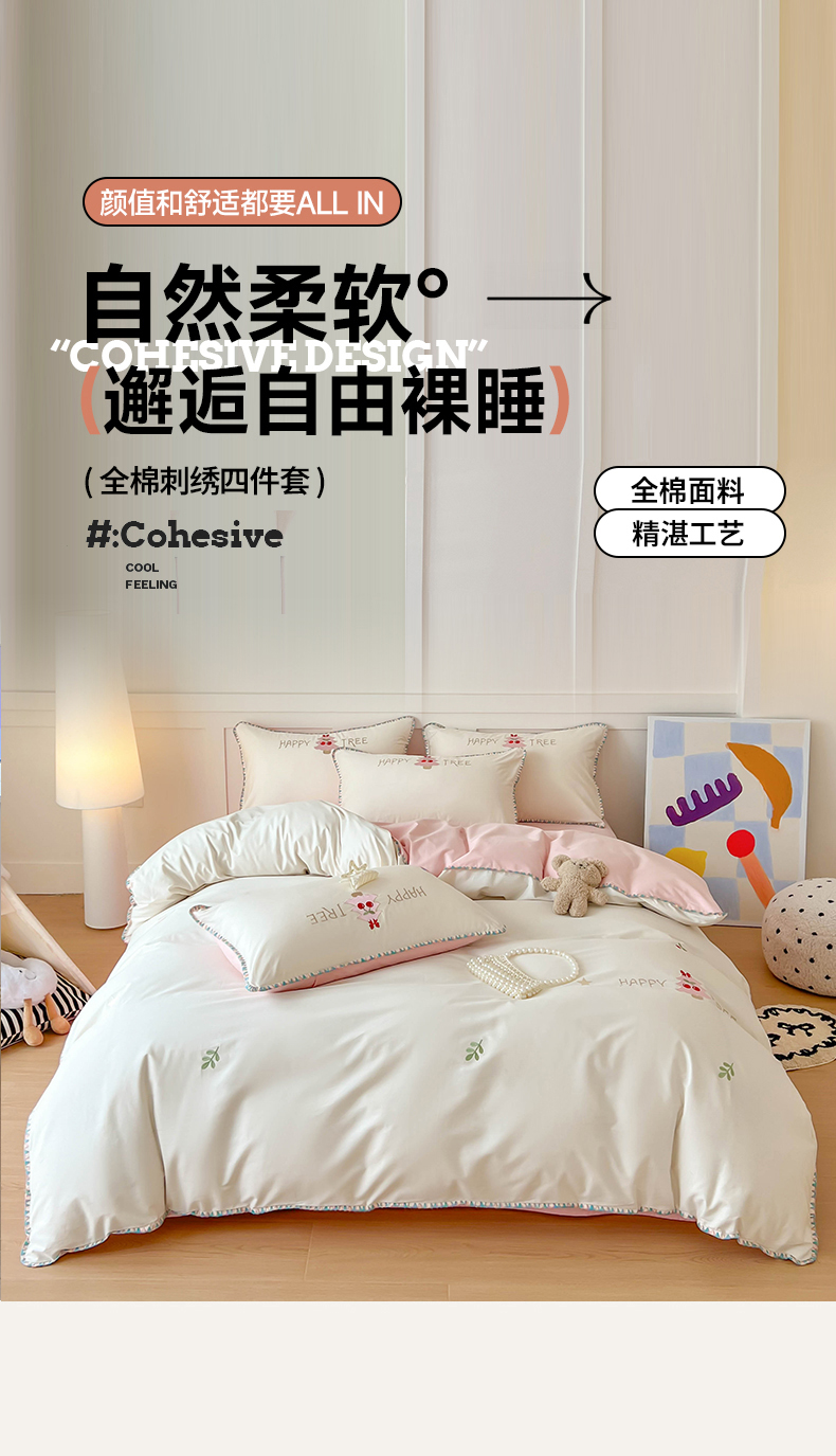 当前位置: 91家纺网 > 商品网购 > 床品套件 > 四件套 > 全棉普通四件套 > 蜜柚 2026新款全棉贝壳边小清新刺绣花四件套 爱心mini-白