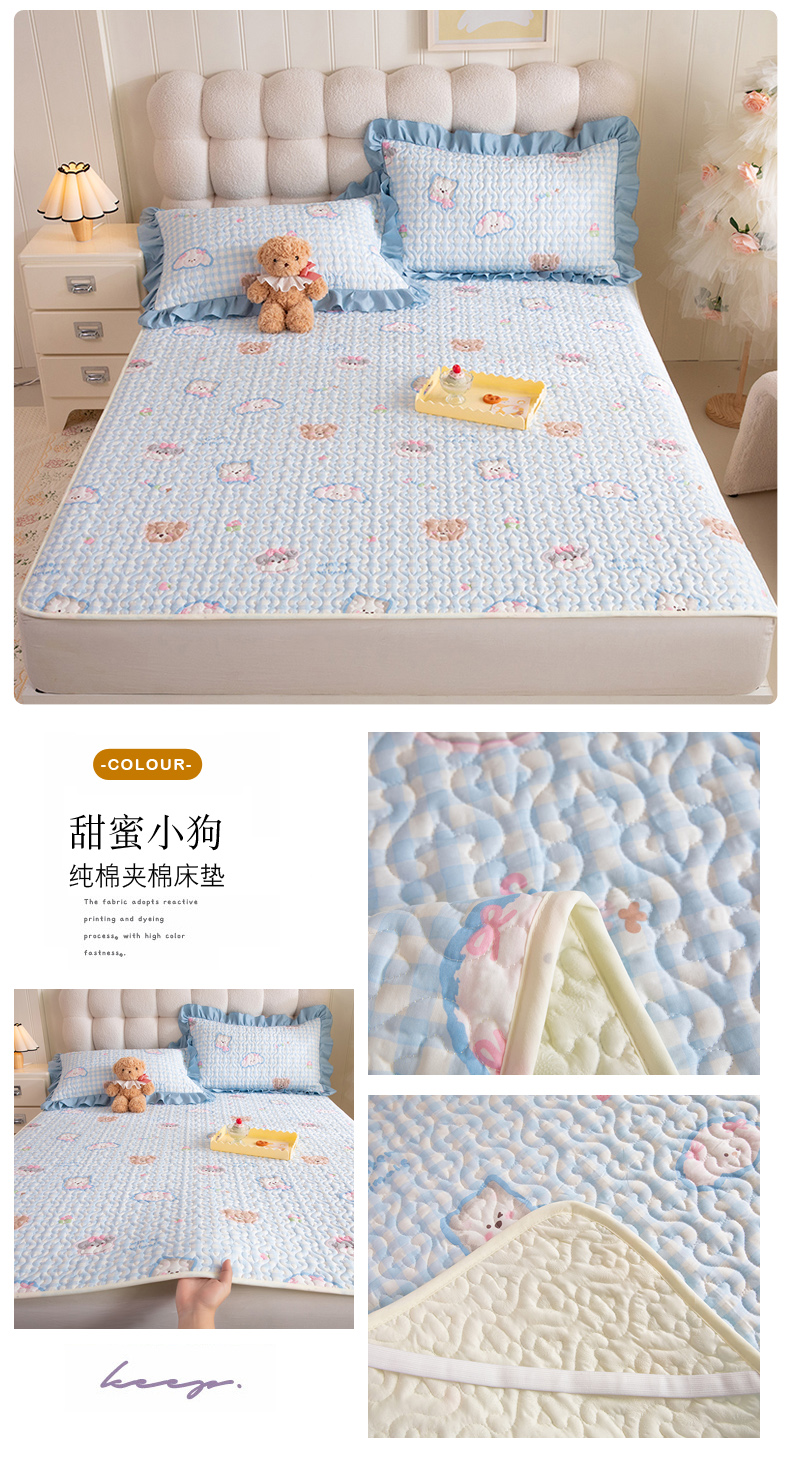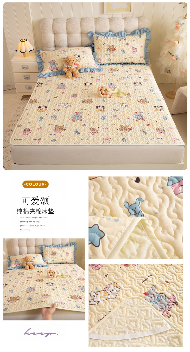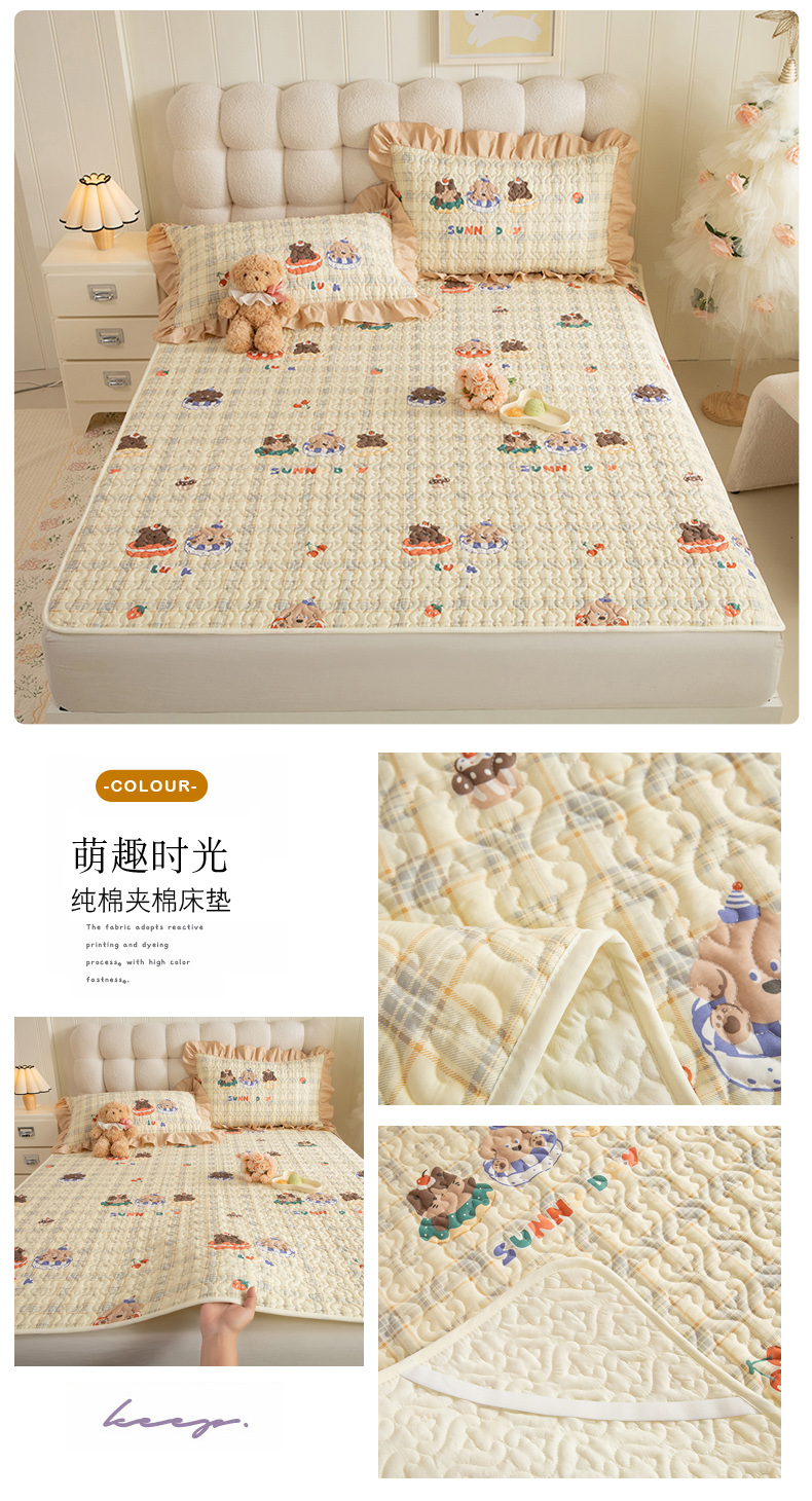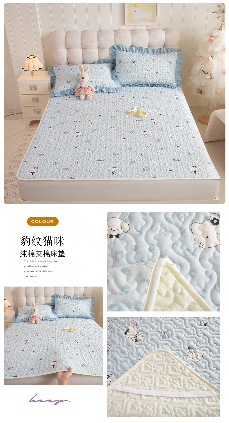 (总)美达家纺 2026新款A类全棉夹棉蕾丝花边榻榻米床垫大炕盖,豹纹猫咪,黄油小熊,太空卫士,熊猫戏水,樱桃乐园,草莓优格-紫,可爱颂,萌趣时光,栖川-紫,甜蜜小狗,甜心猫咪