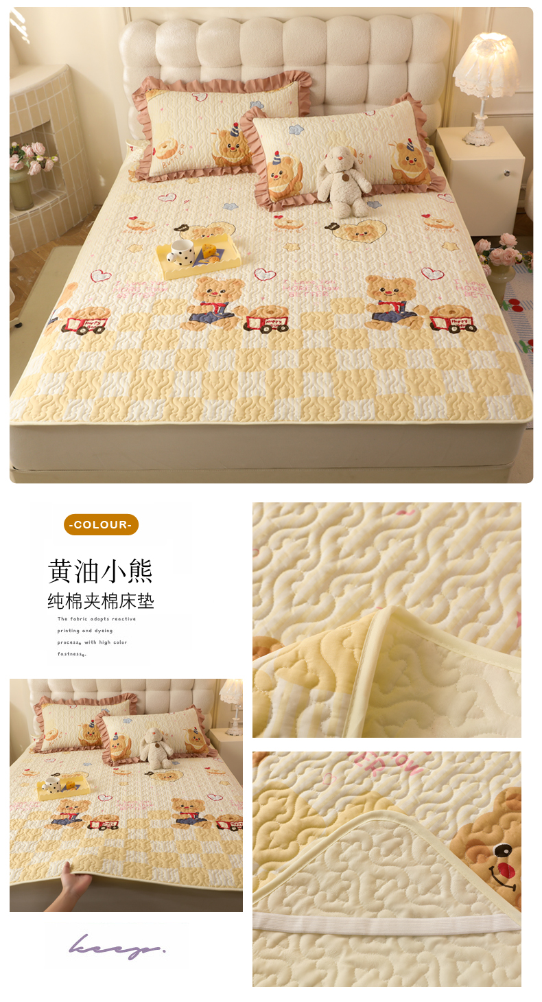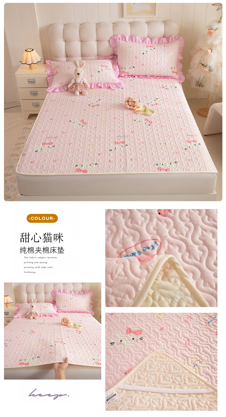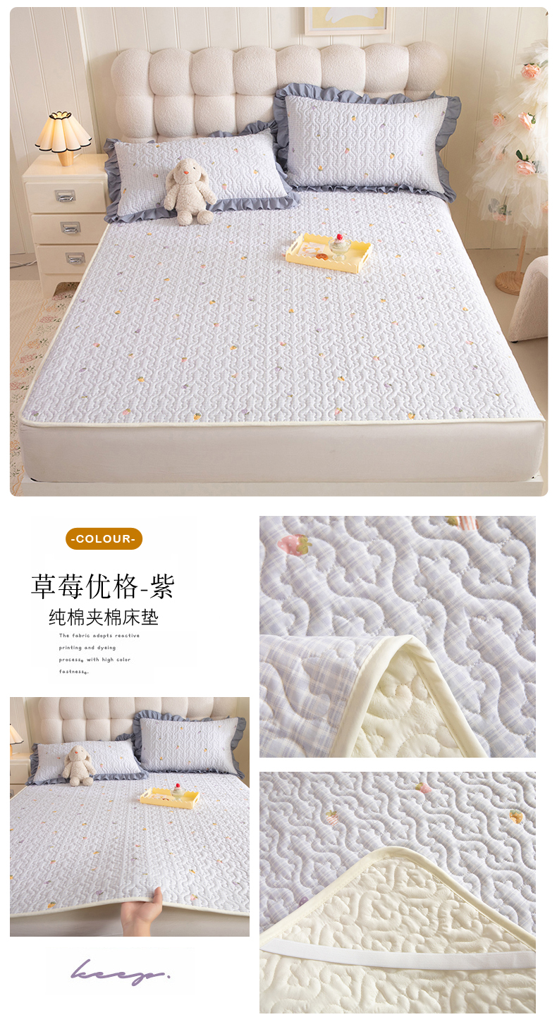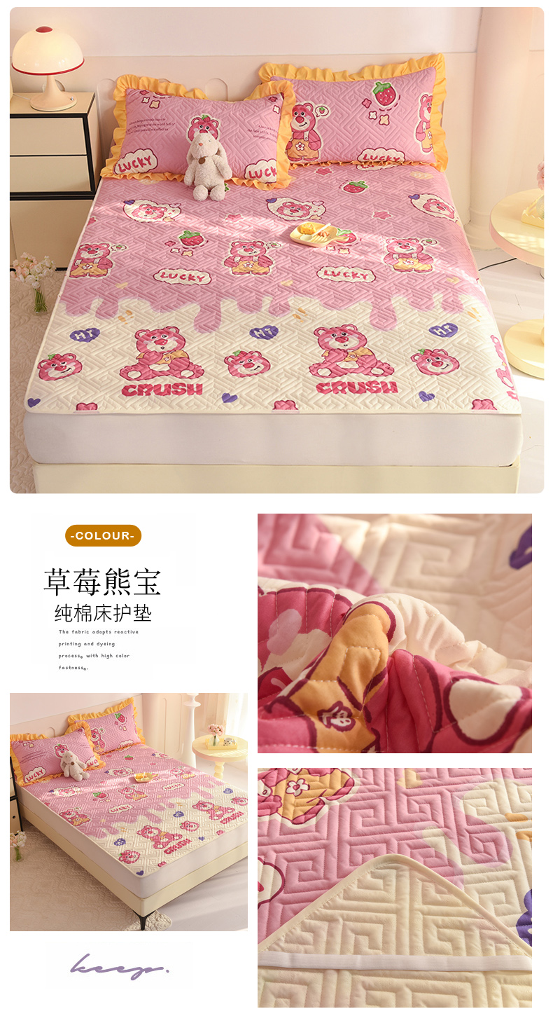 (总)美达家纺 2026新款A类全棉夹棉蕾丝花边榻榻米床垫大炕盖,豹纹猫咪,黄油小熊,太空卫士,熊猫戏水,樱桃乐园,草莓优格-紫,可爱颂,萌趣时光,栖川-紫,甜蜜小狗,甜心猫咪