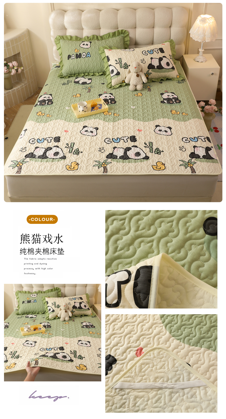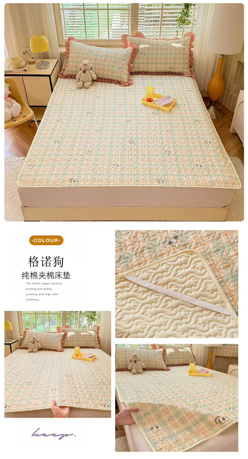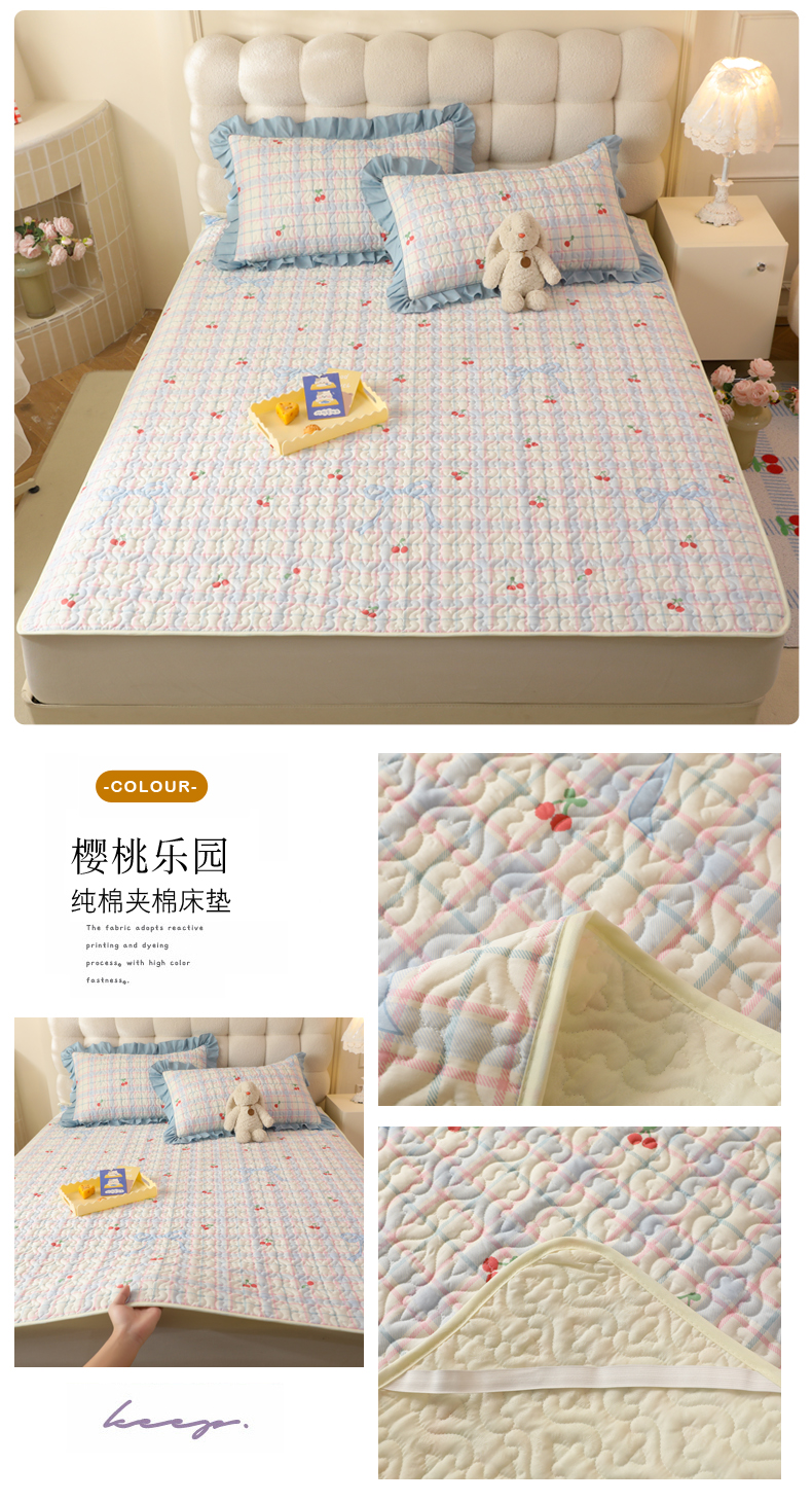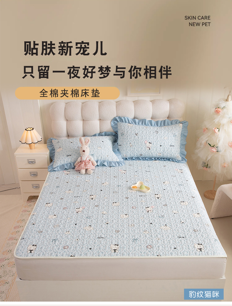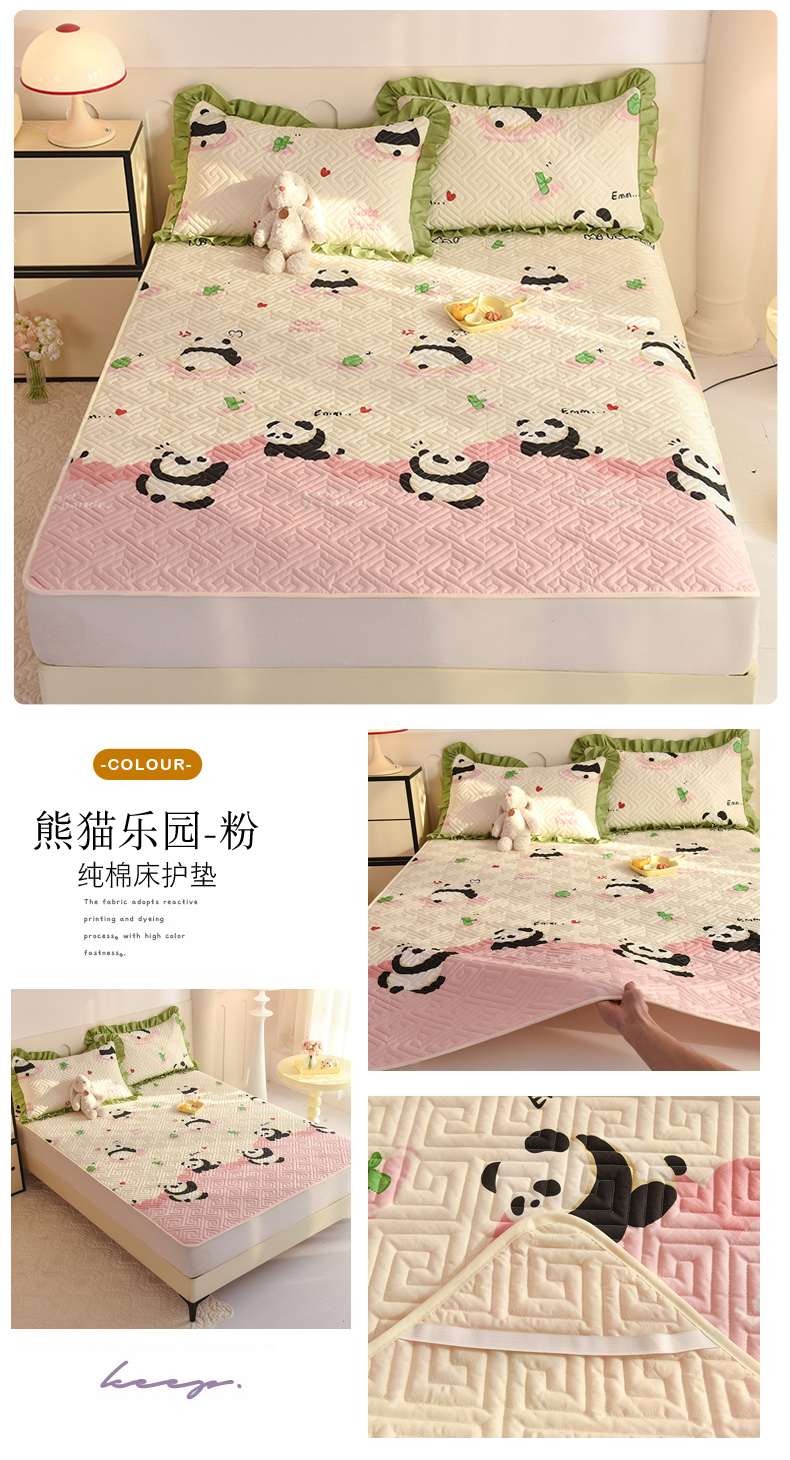 (总)美达家纺 2026新款A类全棉夹棉蕾丝花边榻榻米床垫大炕盖,豹纹猫咪,黄油小熊,太空卫士,熊猫戏水,樱桃乐园,草莓优格-紫,可爱颂,萌趣时光,栖川-紫,甜蜜小狗,甜心猫咪