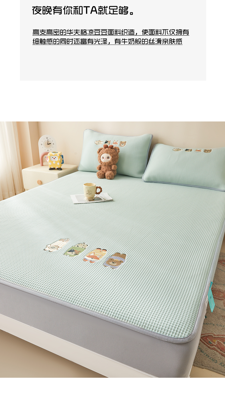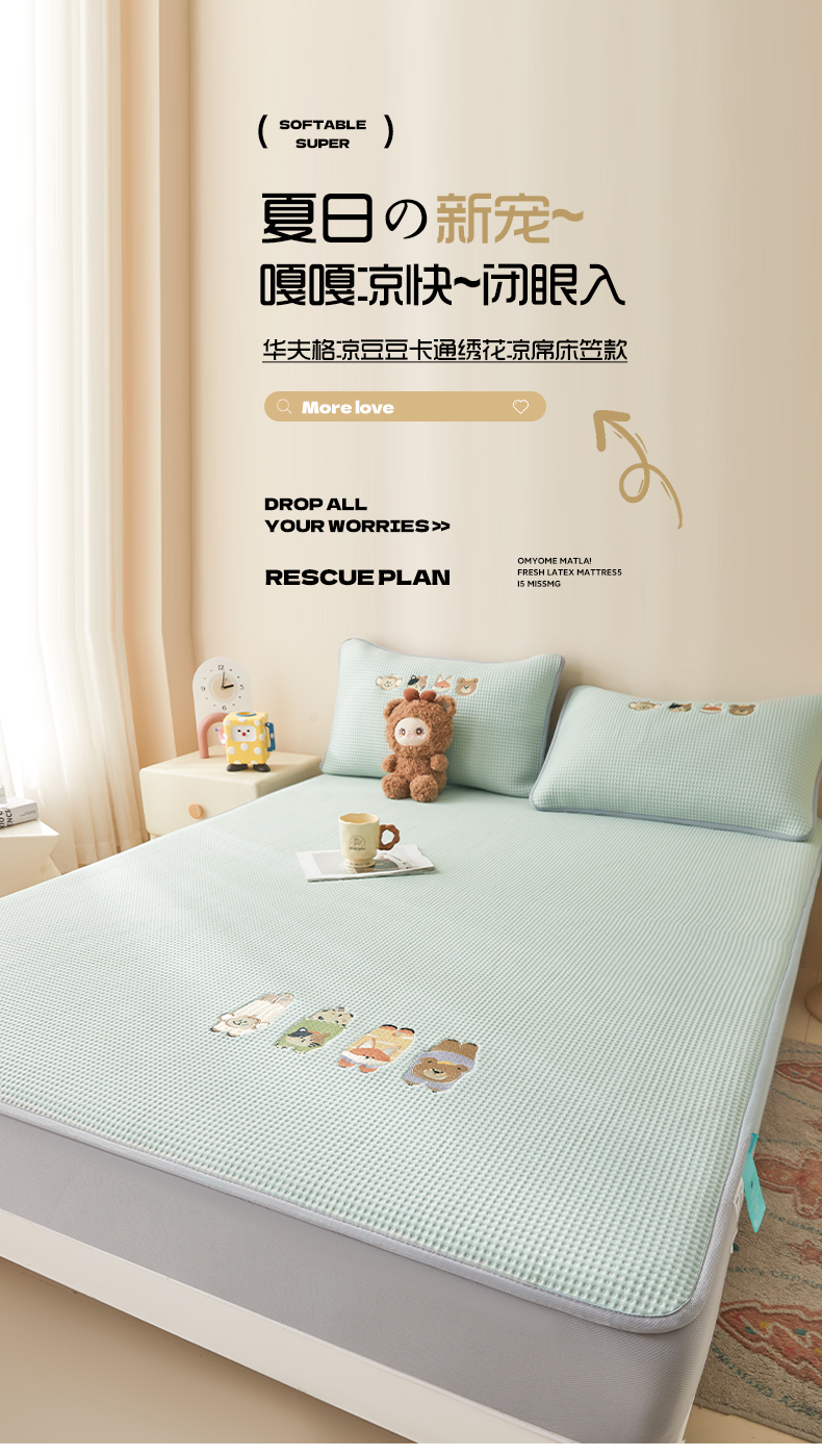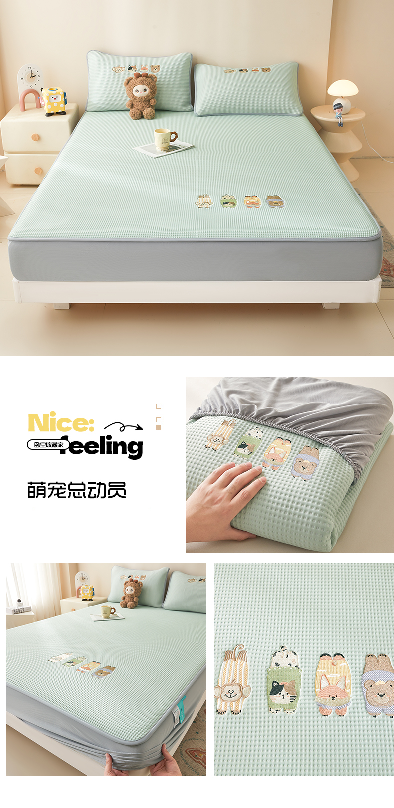 商品名称:凯罗 2026新款卡通绣花小红书爆款凉豆豆绣花床笠可水洗床笠凉席席子 萌宠总动员 床笠款
