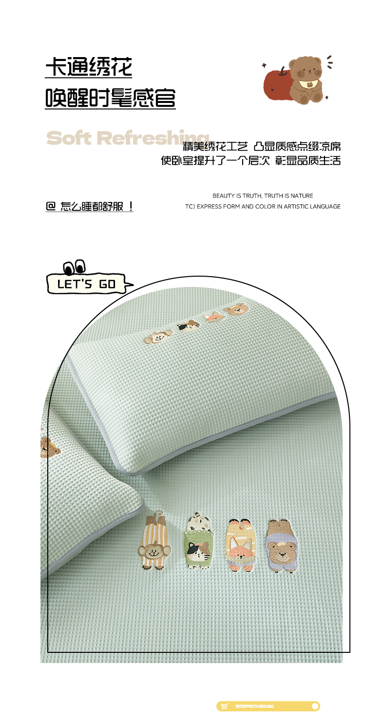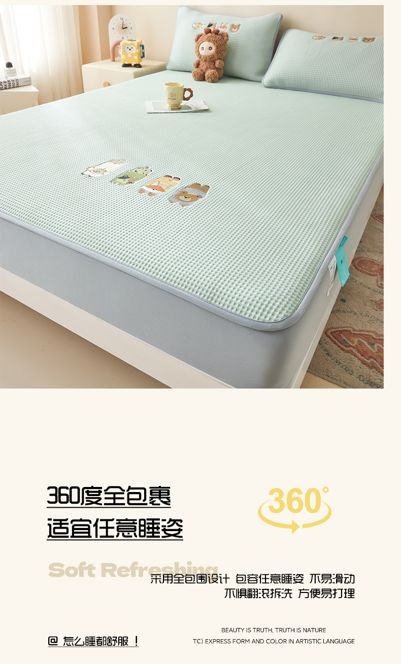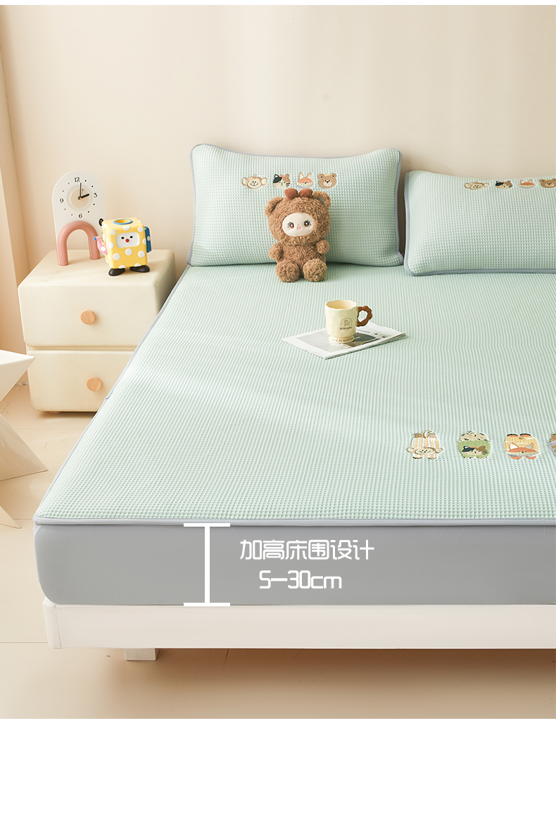 商品名称:凯罗 2026新款卡通绣花小红书爆款凉豆豆绣花床笠可水洗床笠凉席席子 萌宠总动员 床笠款
