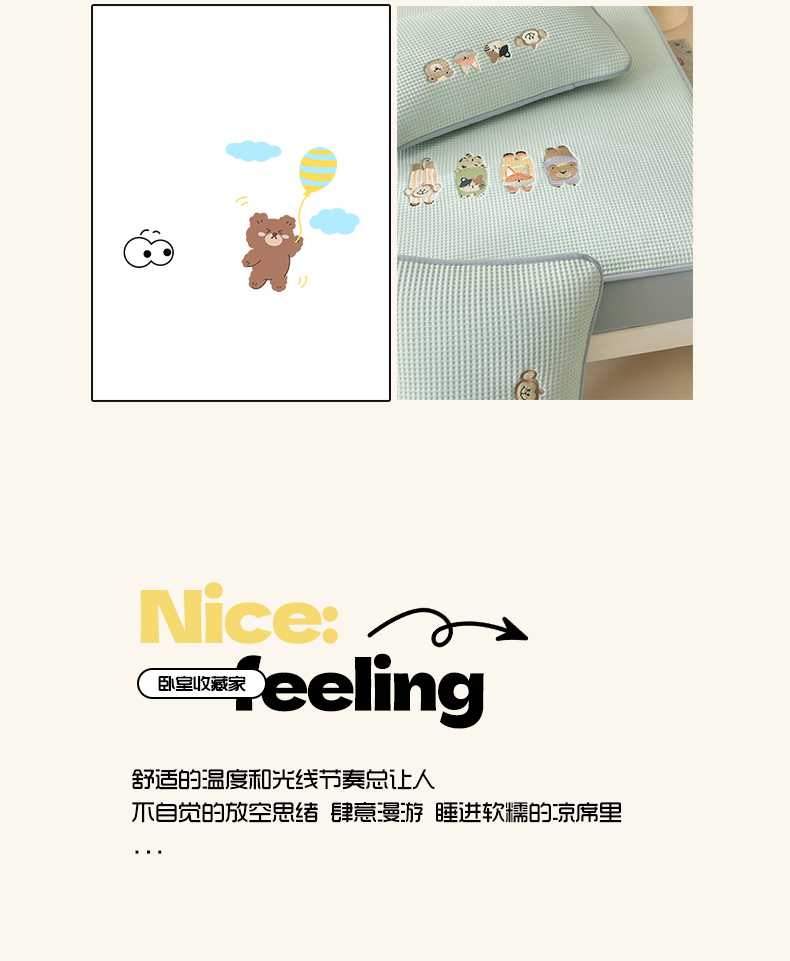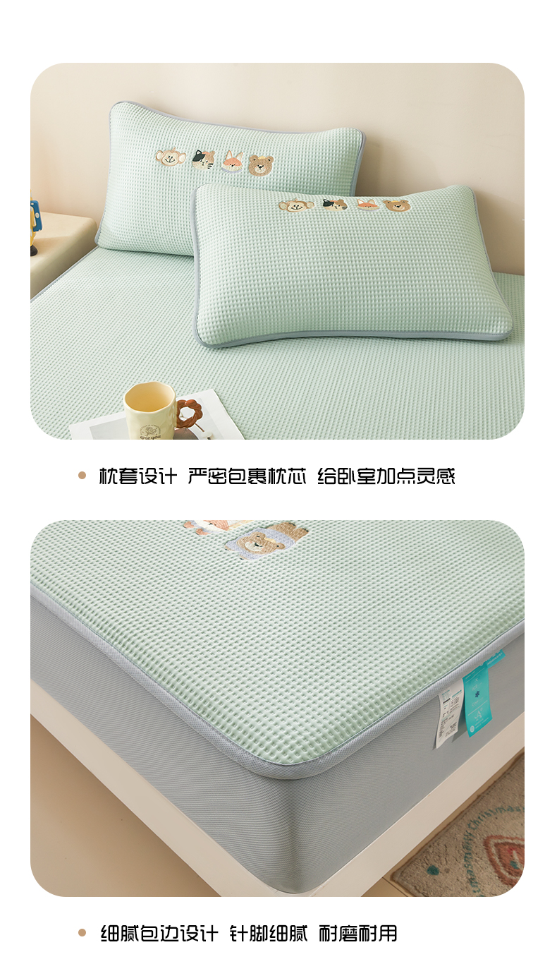 (总)凯罗 2026新款可水洗凉豆豆夏季席子凉席三件套,Hello--熊,爱心小熊--浅粉,敦敦熊--浅粉,敦敦熊--蓝灰,爱心小熊-咖,花儿朵朵--浅粉