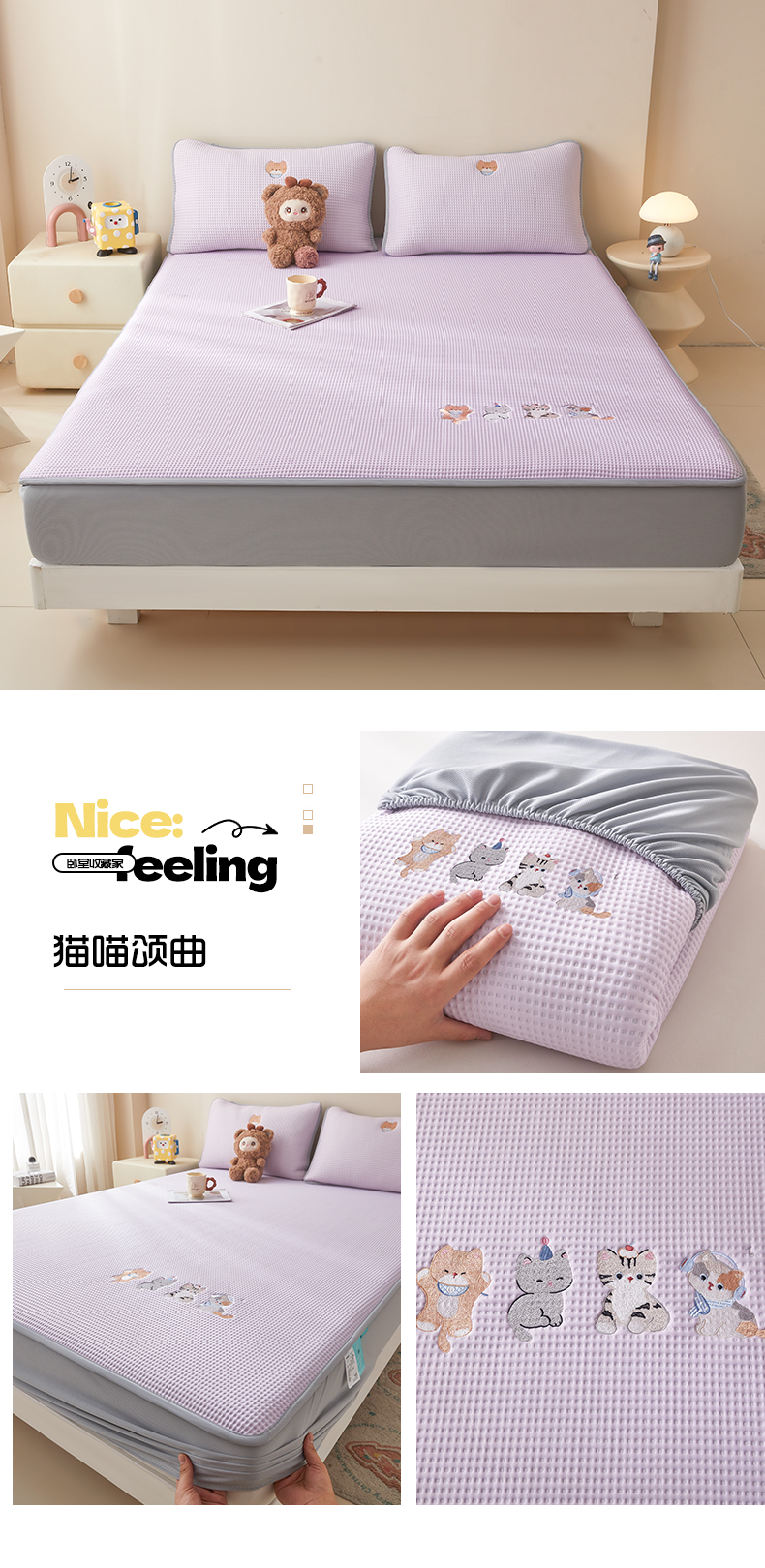 凯罗 2026新款卡通绣花小红书爆款凉豆豆绣花床笠可水洗床笠凉席席子 萌宠总动员 床笠款