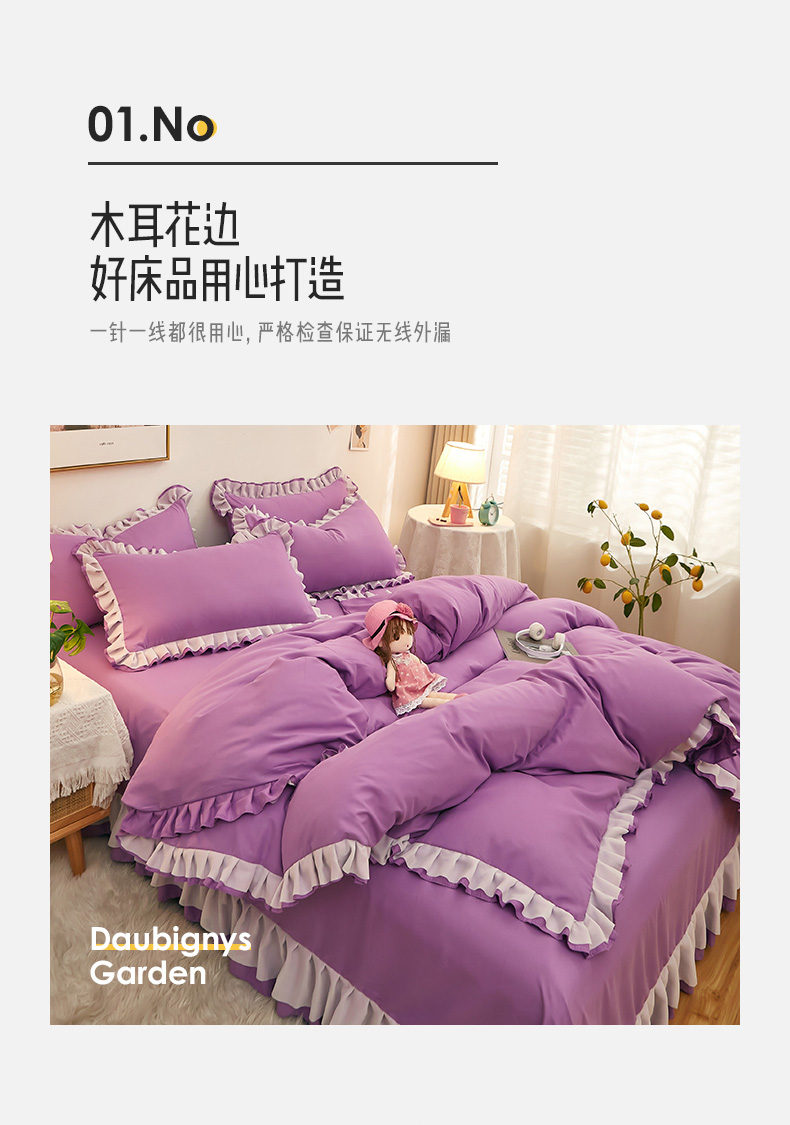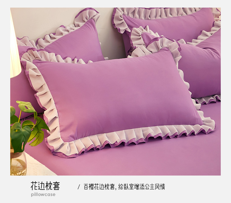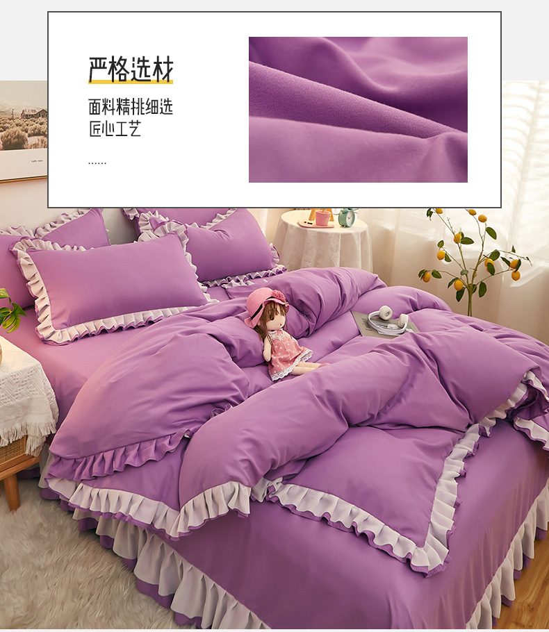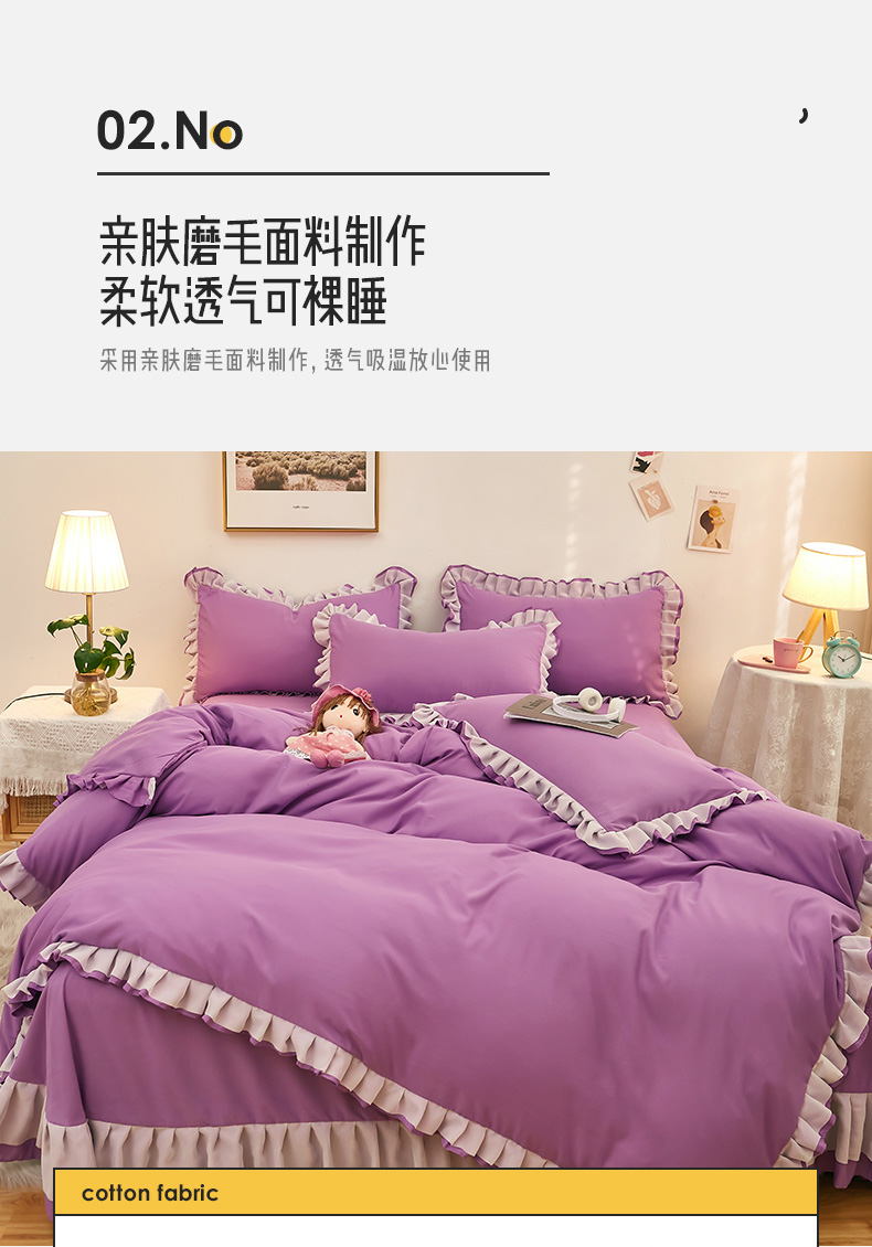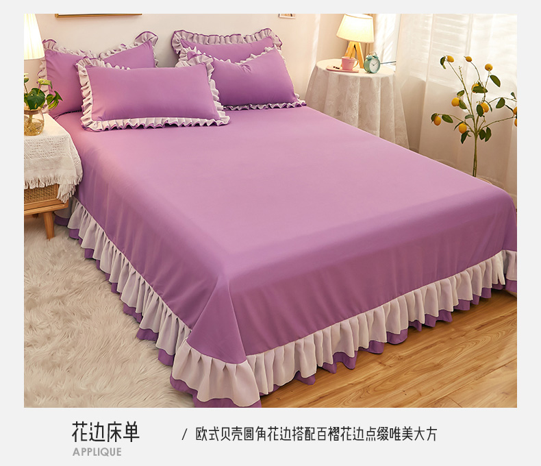 商品名称:沐珩家纺 2026新款韩版公主风亲肤磨毛床单四件套-爱恋系列 爱恋-香芋紫