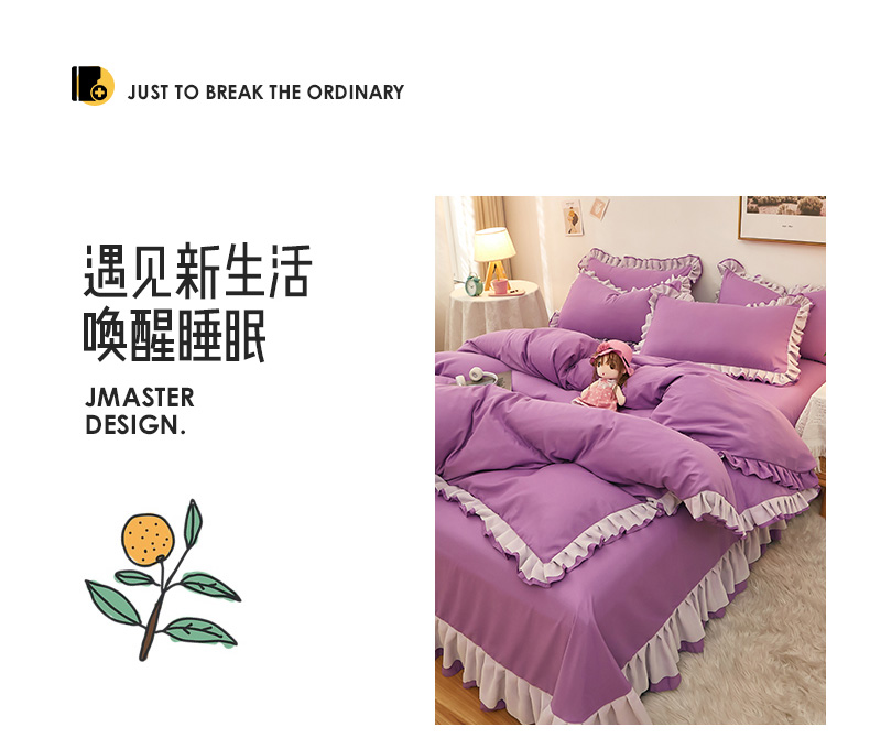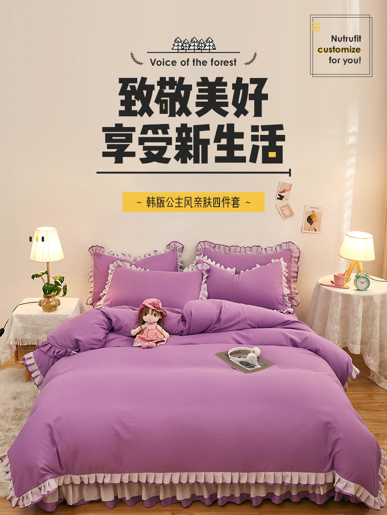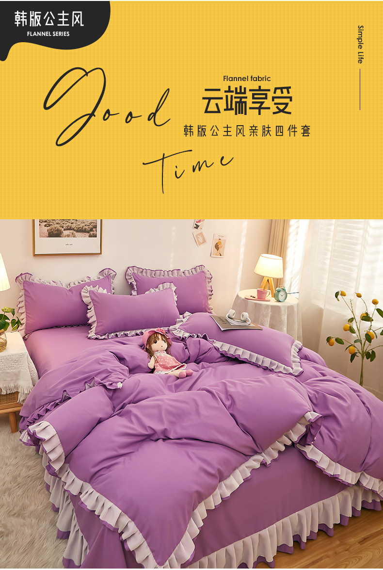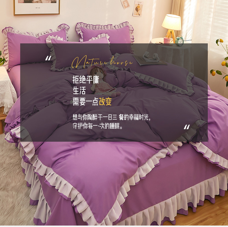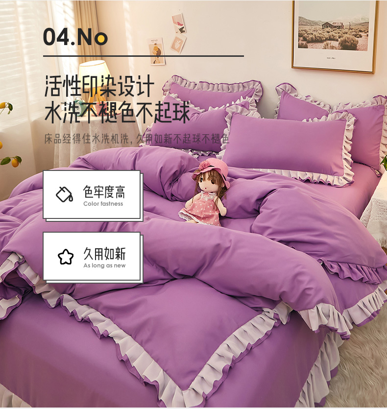 商品名称:沐珩家纺 2026新款韩版公主风亲肤磨毛床单四件套-爱恋系列 爱恋-香芋紫