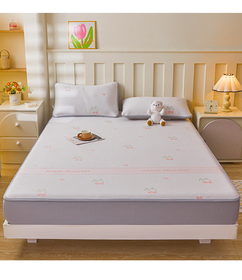 (总)凯罗 2026新款凉感提花冰丝床笠床席三件套冰感抗菌床席床笠三件套--床席款,简约生活--粉