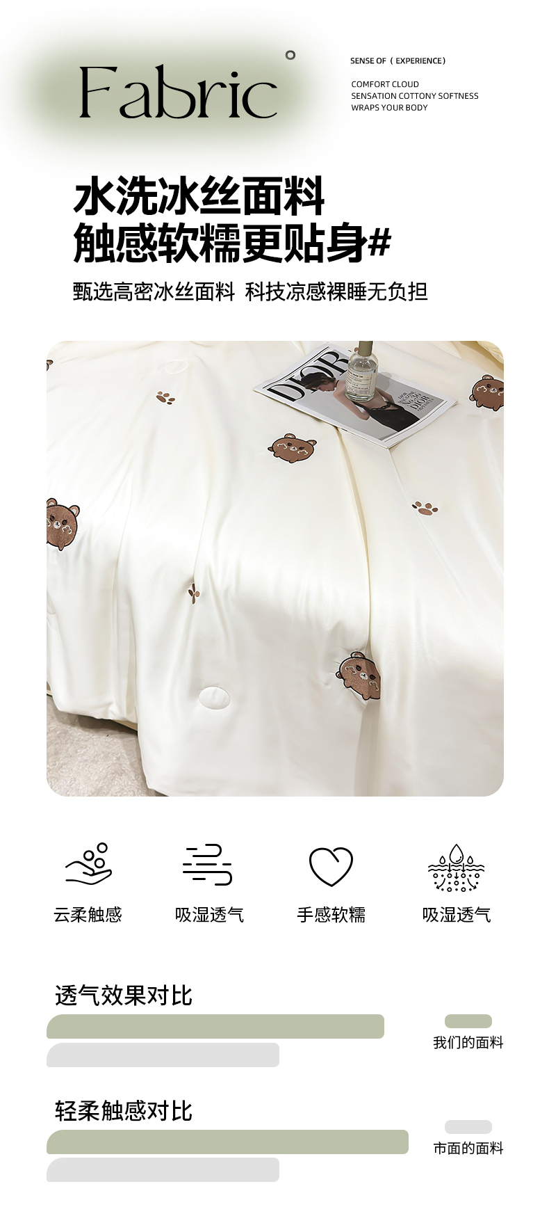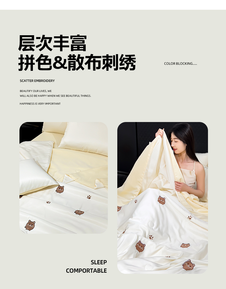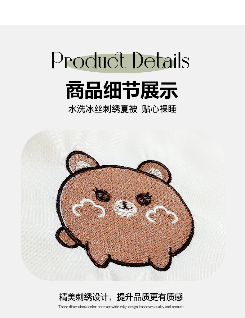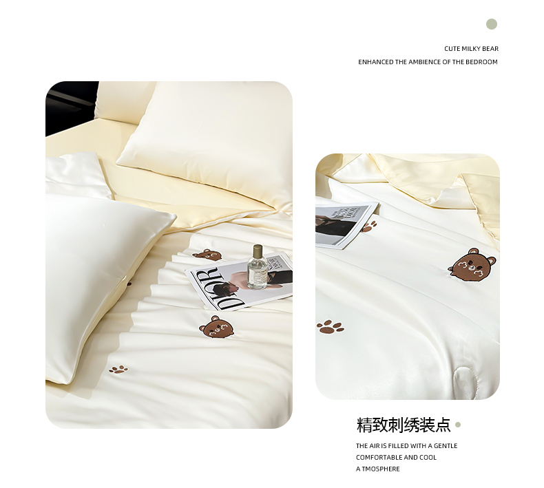 • 91家纺网 家纺一手货源 找家纺 憨豆家纺 2026新款水洗冰丝夏被四件套(升级抗菌棉)水洗真丝绣花系列夏凉被跨境外贸空调被 小熊-奶白黄