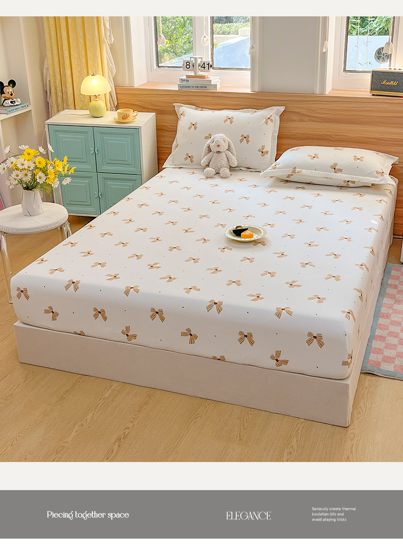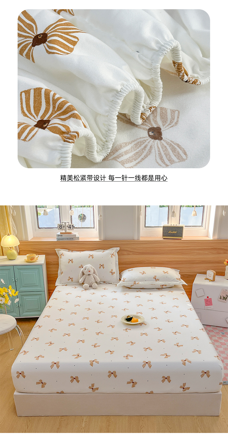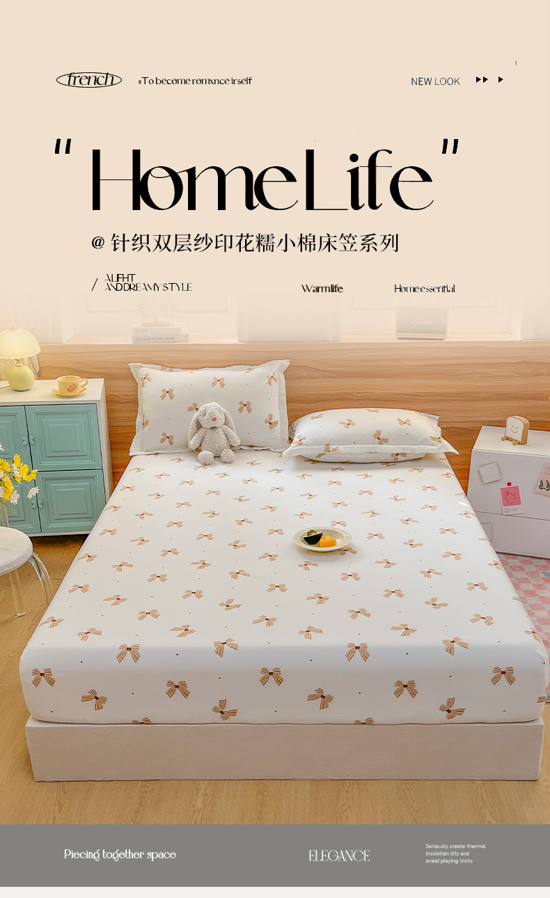 • 91家纺网 家纺一手货源 找家纺 默忆 2026新款针织双层纱印花糯小棉床笠 蝴蝶结