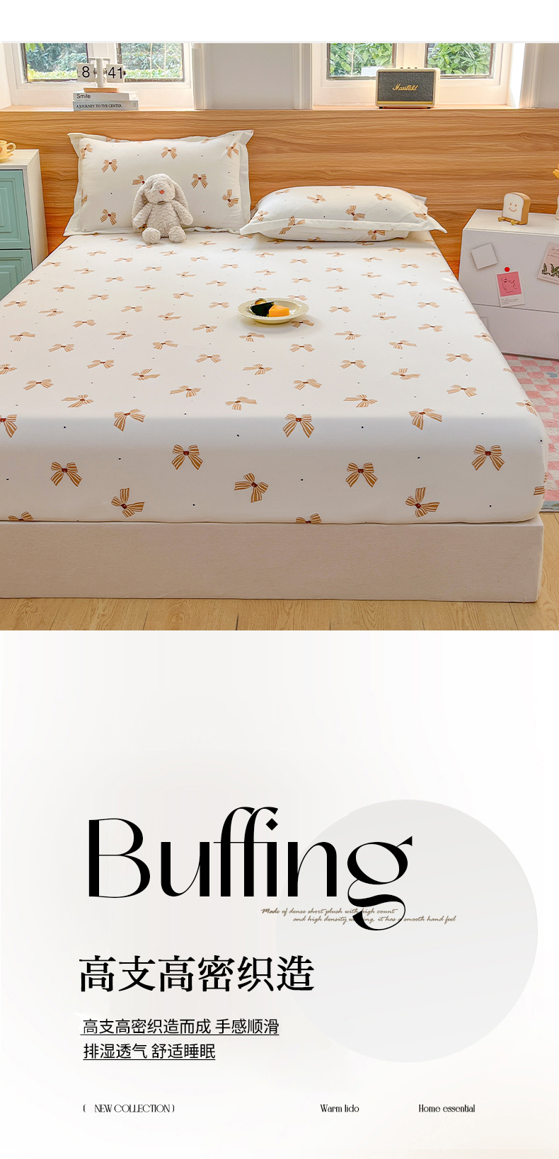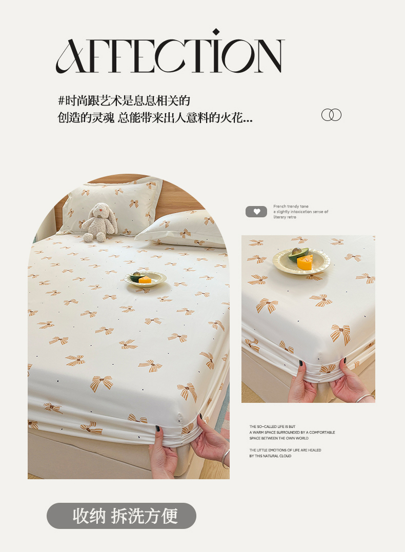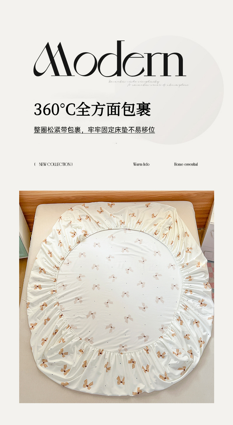 • 91家纺网 家纺一手货源 找家纺 默忆 2026新款针织双层纱印花糯小棉床笠 蝴蝶结