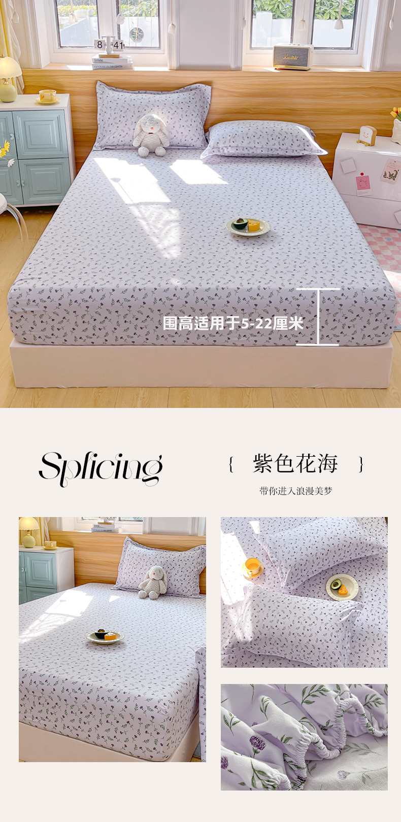 • 91家纺网 家纺一手货源 找家纺 (总)默忆 2026春夏新款a类泡芙双层纱床笠印花卡通全包围床垫保护套单床笠 床笠单件,富贵花,心律,星星人,小木马,汪星人,三生花,莫奈紫,樱桃