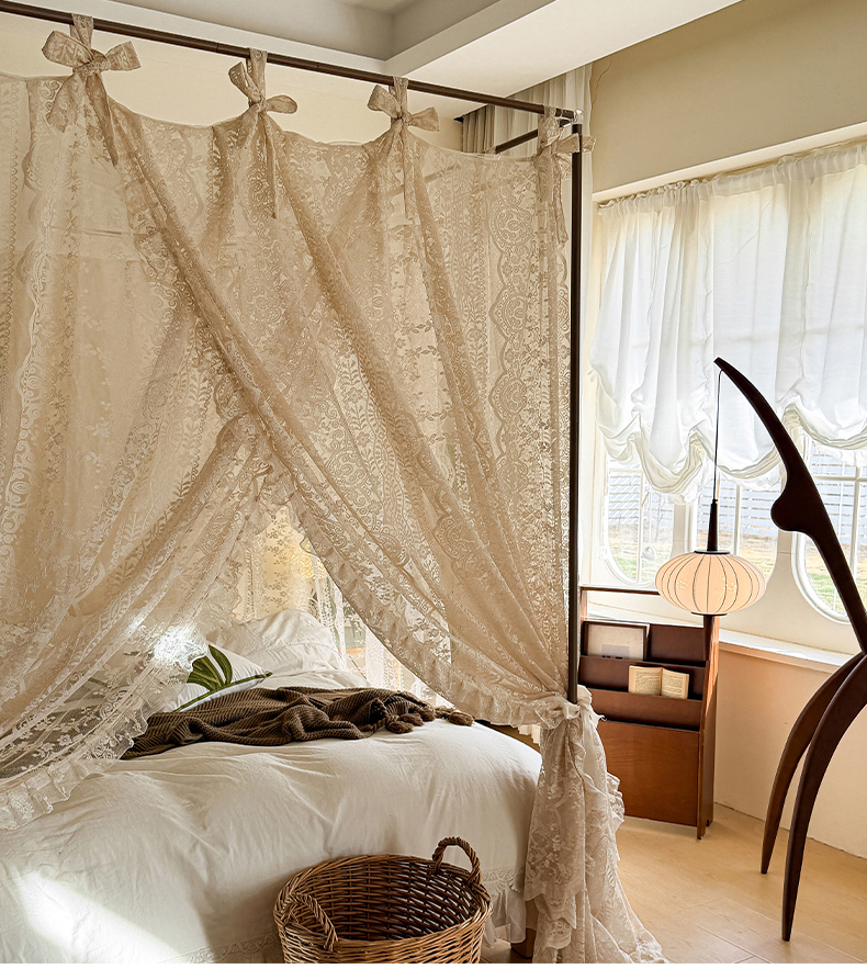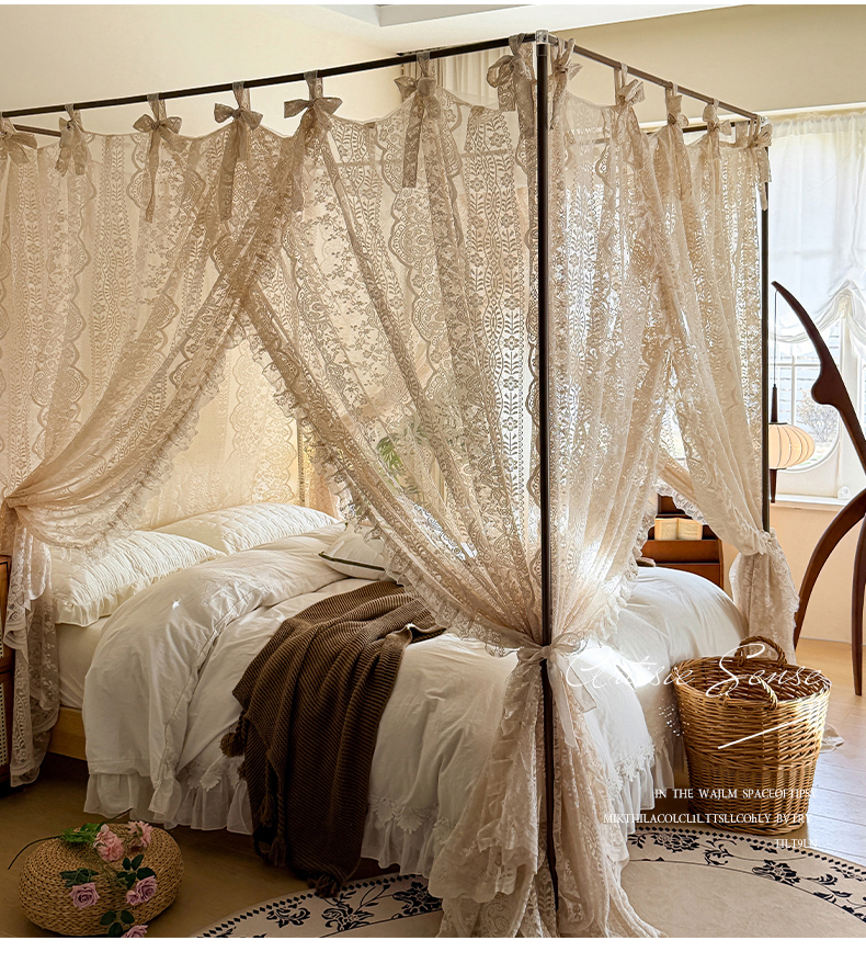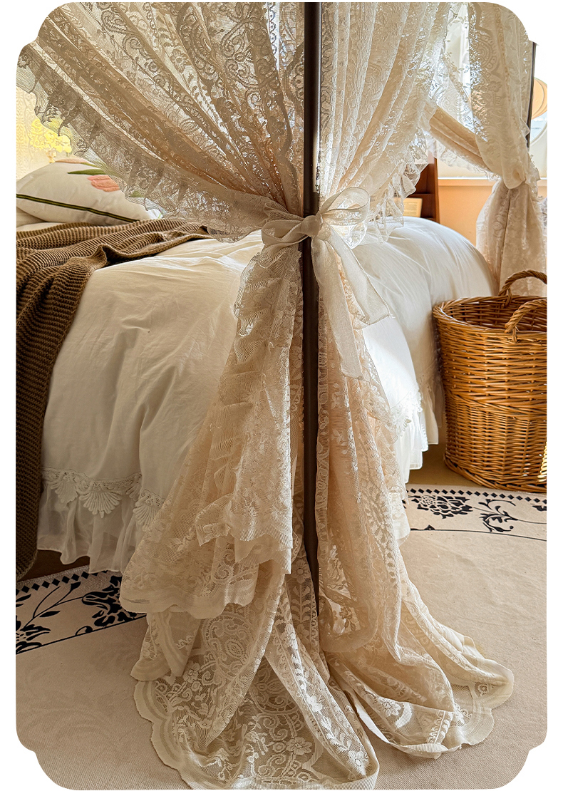 都市缘蚊帐 2026新款浪漫落地蕾丝花边蚊帐905提花系带系列 苏格兰-奶油杏