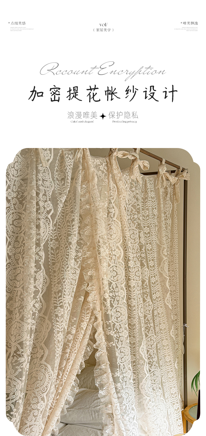 • 91家纺网 家纺一手货源 找家纺 都市缘蚊帐 2026新款浪漫落地蕾丝花边蚊帐905提花系带系列 苏格兰-奶油杏